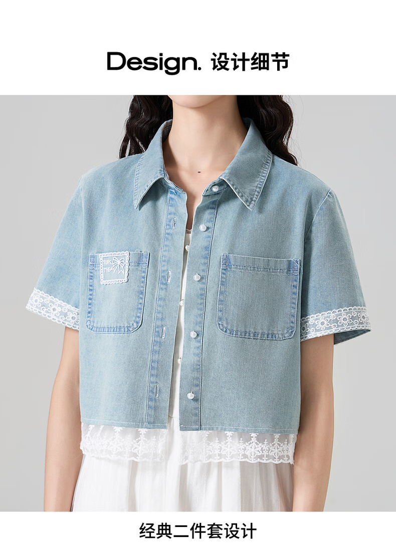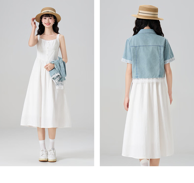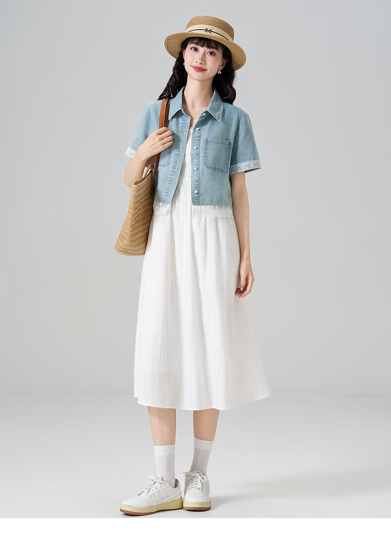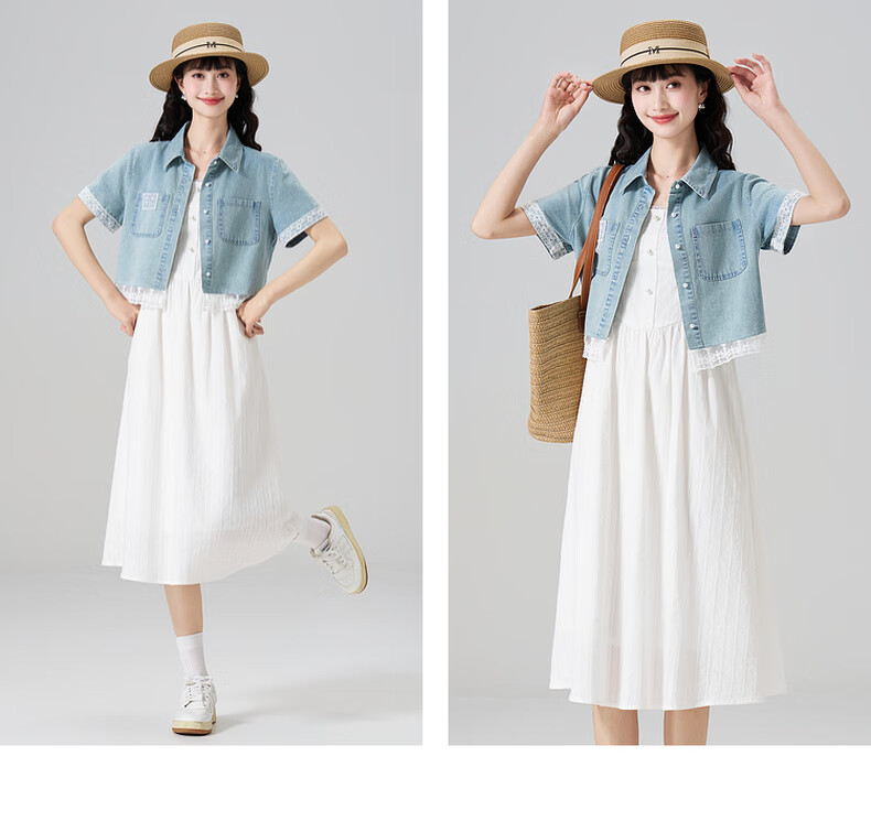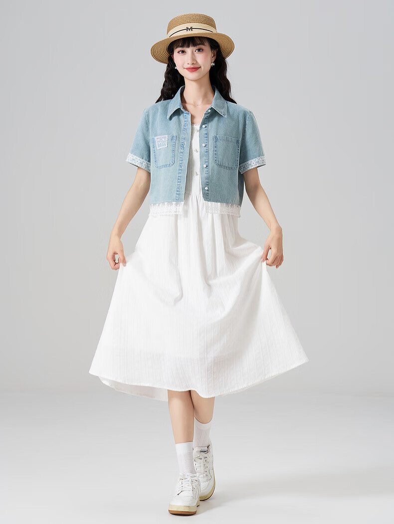 Kuaiyu women's suit 2025 new summer short denim shirt with white dress casual and sweet white L