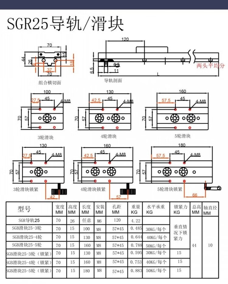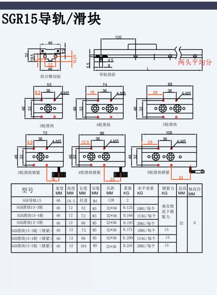 Built-in dual-axis linear guide SGR1015N202535 roller locking slider smooth axis slide rail slider SGB15-5 wheel with lock