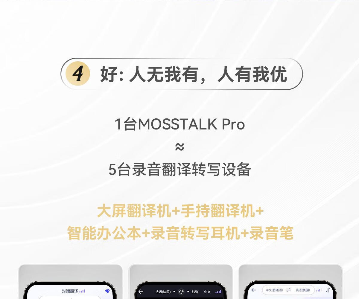 MOSSTALK2025 New Translator AI Large Model Permanently Free Voice Video Call Translator Simultaneous Interpretation Abroad Black 2025 Version Permanently Free + Gifts
