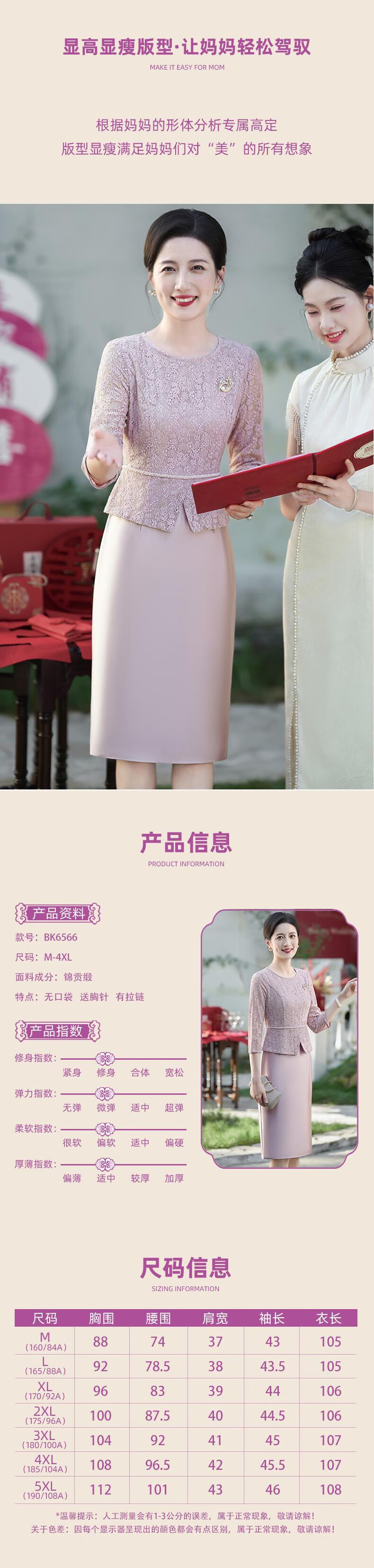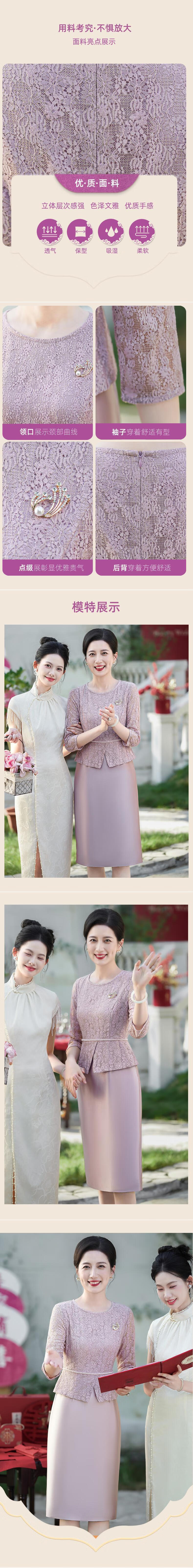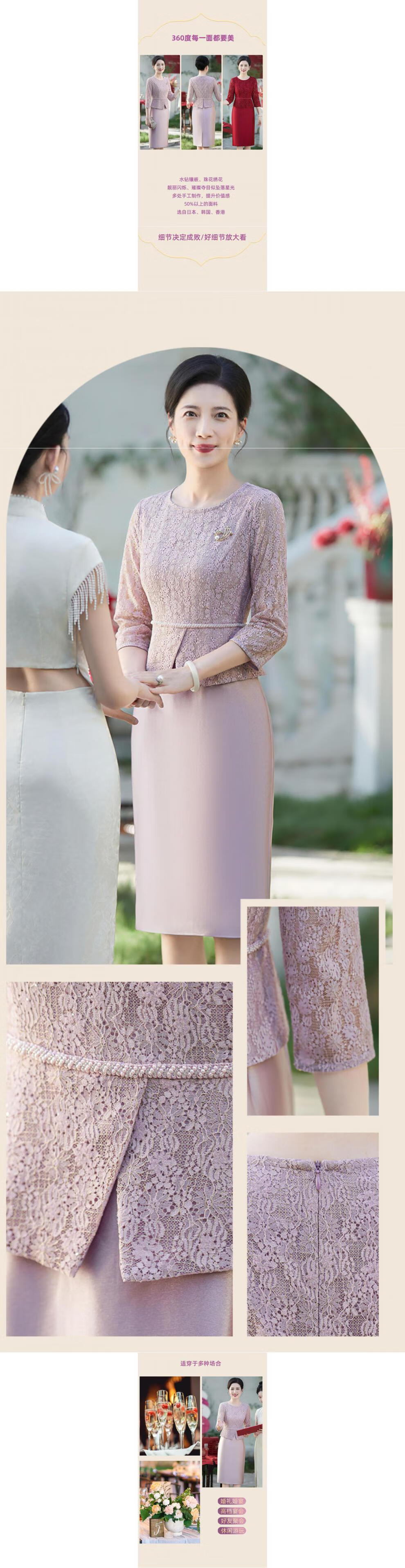 Saimandie's daughter's engaged mother's wedding dress, high-end light luxury young style cheongsam, wedding wedding dress, mother-in-law dress, purple pink, three-quarter sleeves, L recommended 100-110 Jin Jin equals 0.5 kg