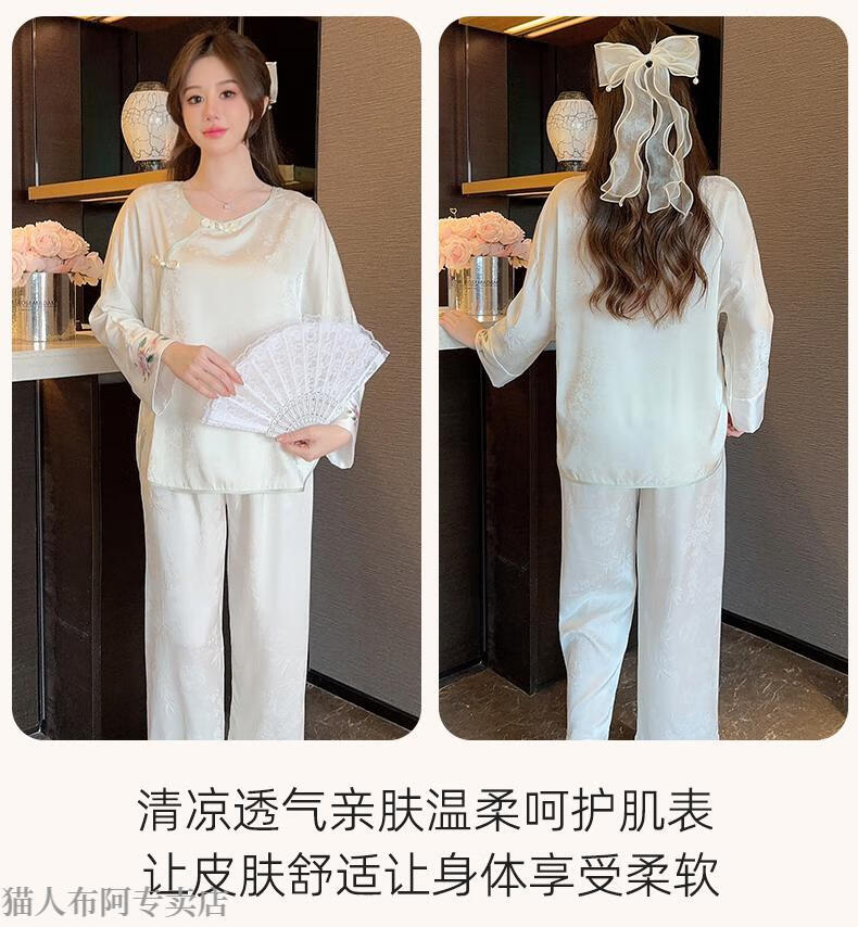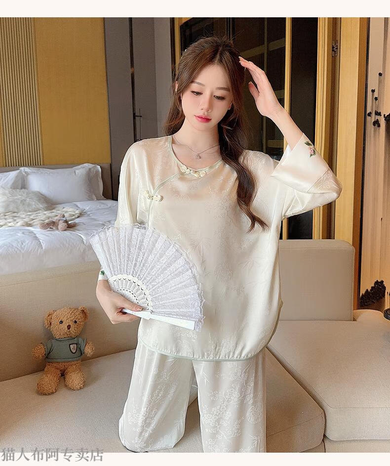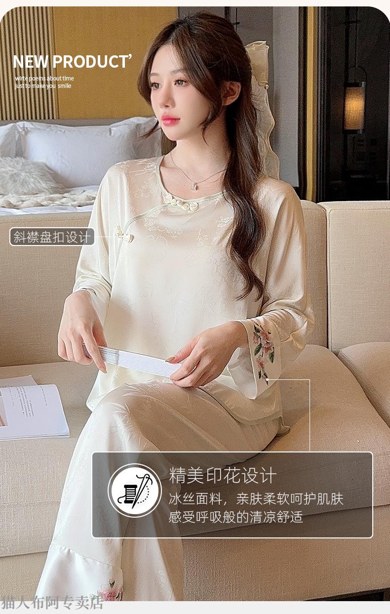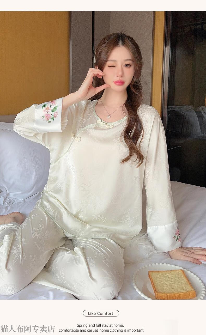 MiiOW Spring and Autumn Pajamas Women's Long Sleeve Thin Silk New Chinese Style Retro Suit Women's Cool Feeling Ice Feeling Home Clothing YL-728 Purple Butterfly M