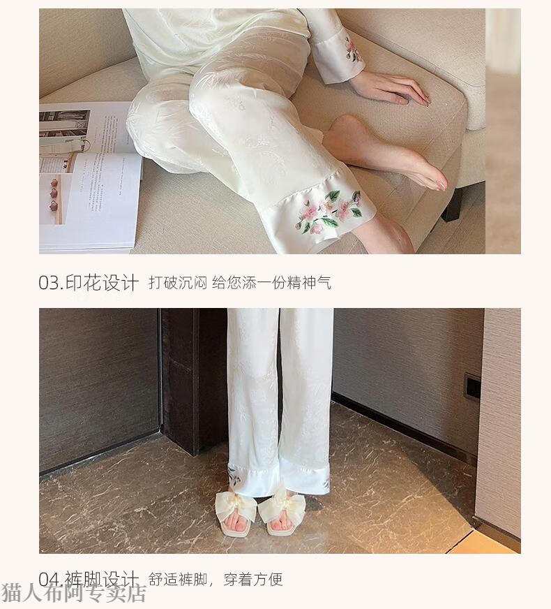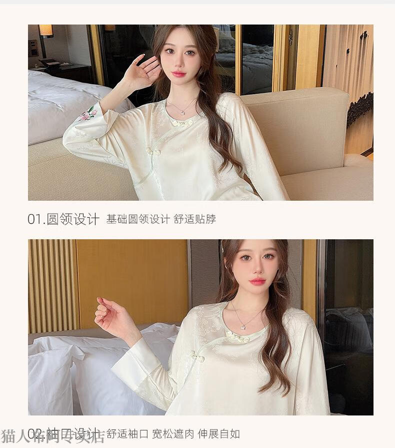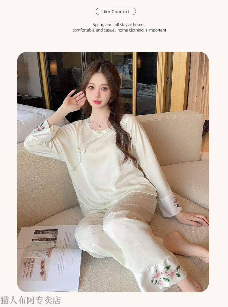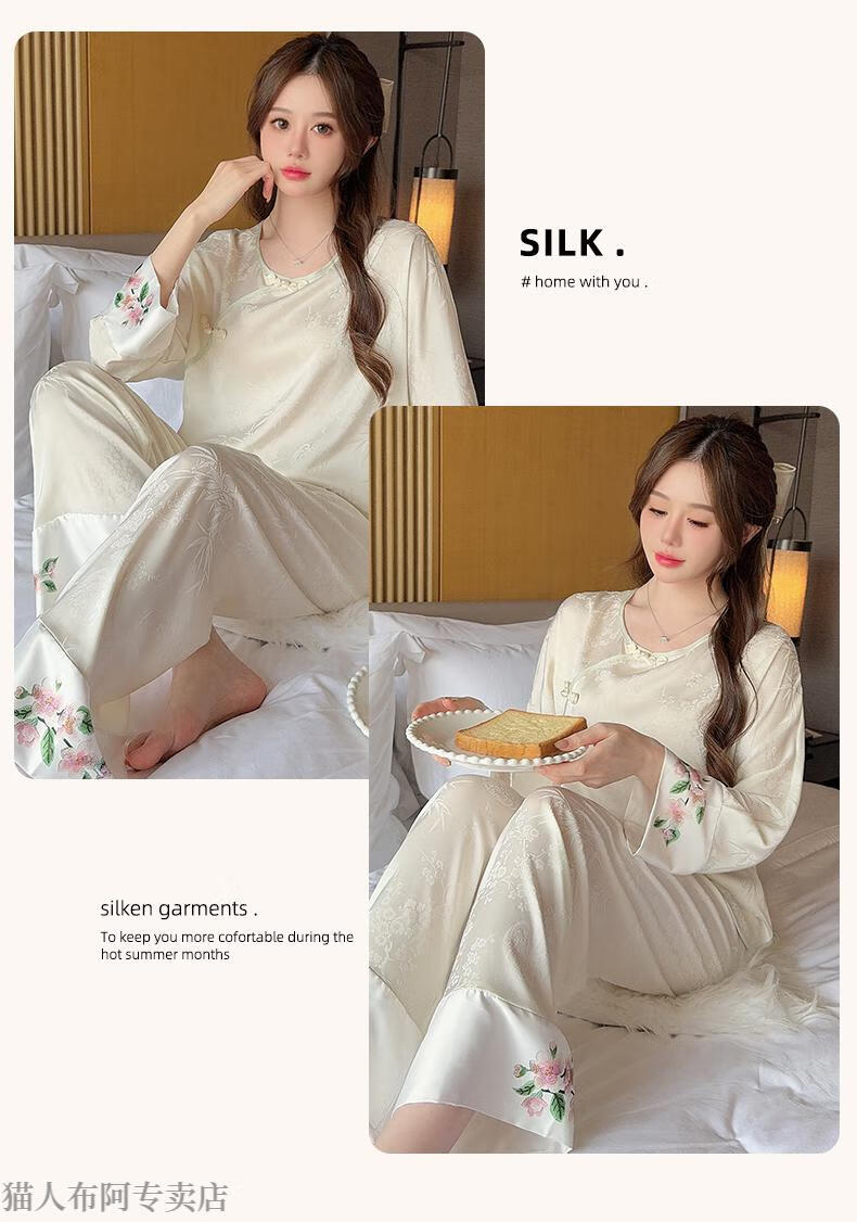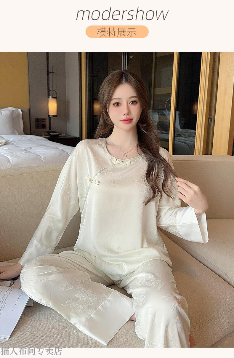 MiiOW Spring and Autumn Pajamas Women's Long Sleeve Thin Silk New Chinese Style Retro Suit Women's Cool Feeling Ice Feeling Home Clothing YL-728 Purple Butterfly M