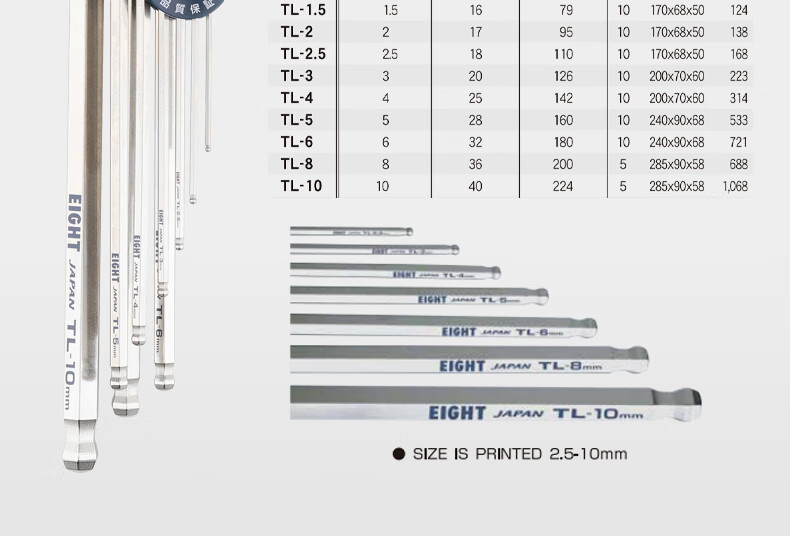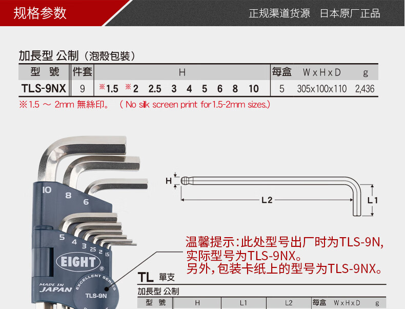 EIGHT Japan Bailey hexagonal wrench set extended 6-corner hexagonal hexagonal screwdriver tool original imported TLS-9NX metric diamond head special 9-piece set