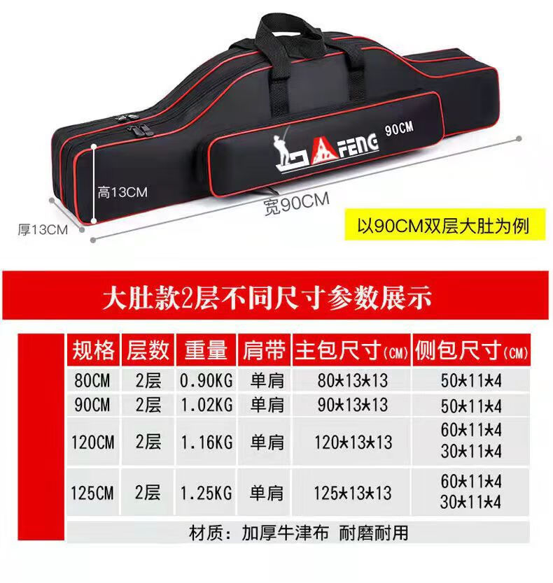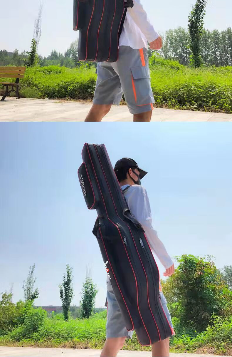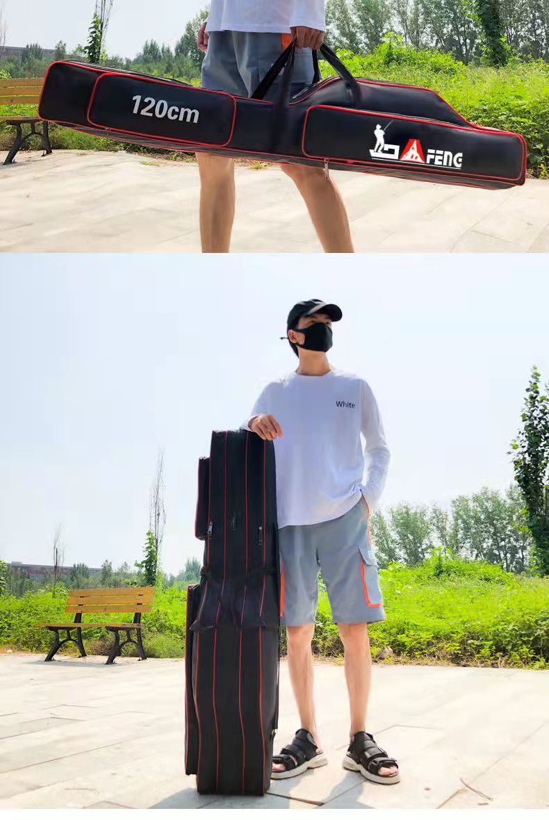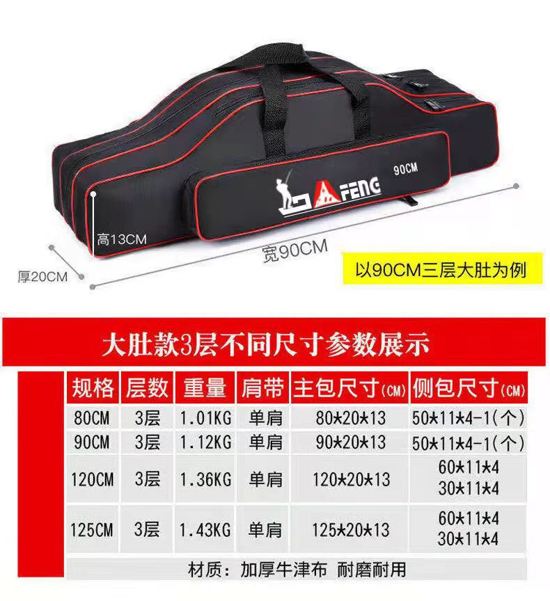Chengyang Fishing Tackle Bag Large Capacity Fishing Rod Bag Fishing Bag Multifunctional Thickened Fishing Rod Bag Sea Rod Big Belly Fishing Tackle Bag Lightweight Three-Layer 80cm Straight Pack