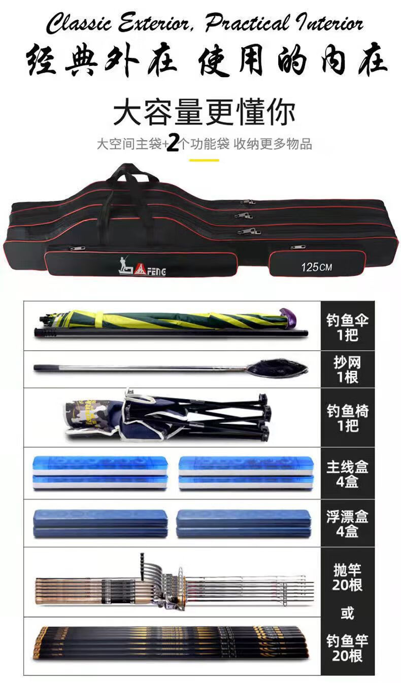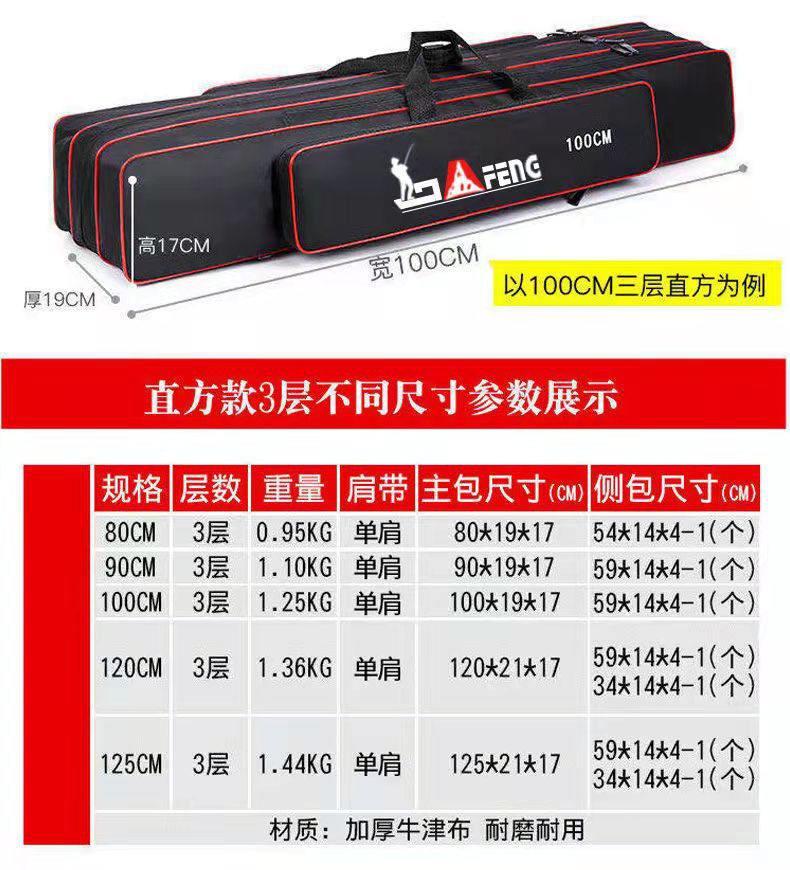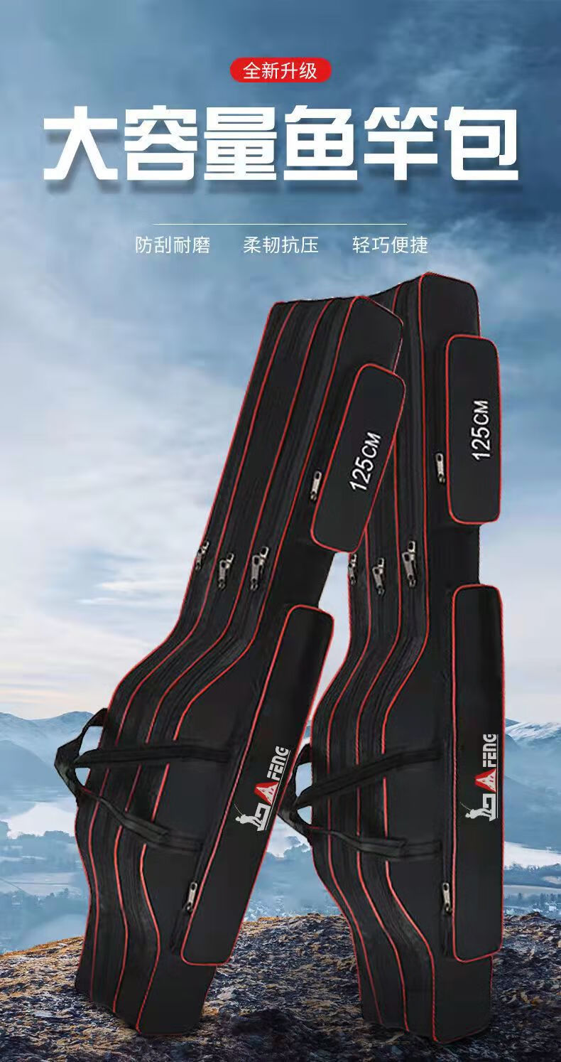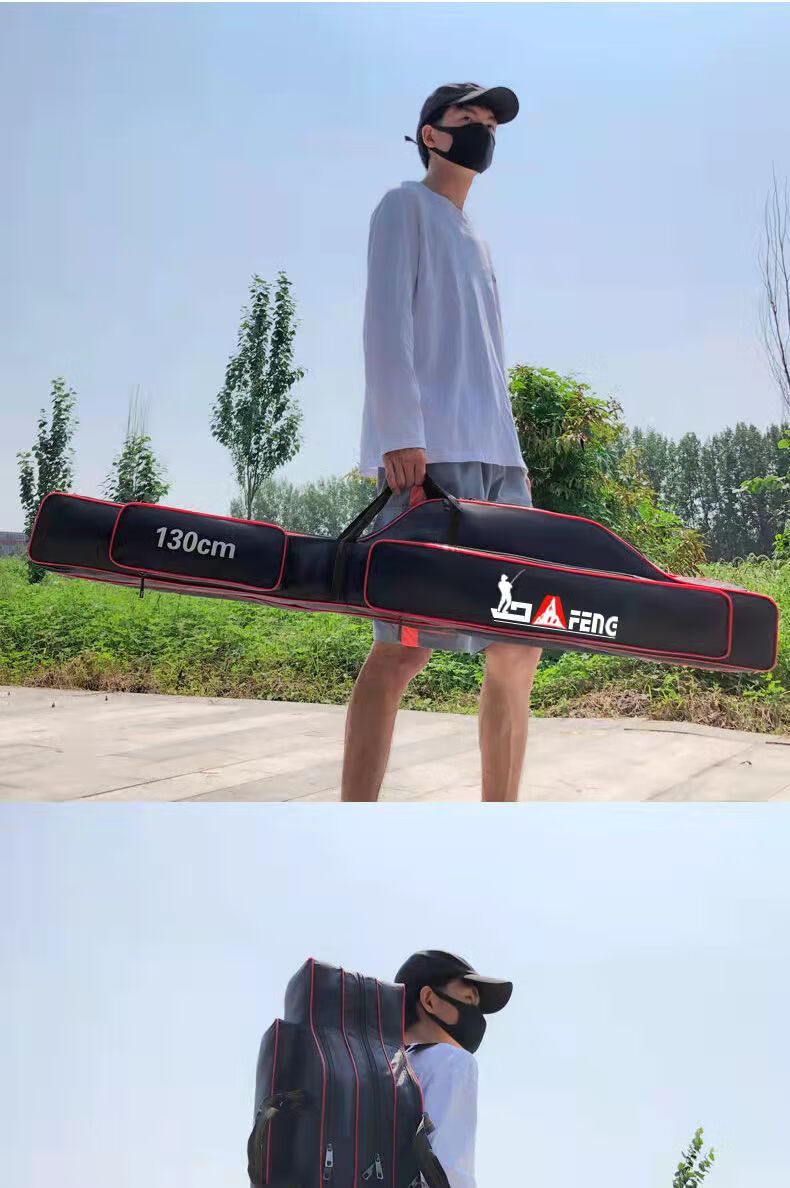 Chengyang Fishing Tackle Bag Large Capacity Fishing Rod Bag Fishing Bag Multifunctional Thickened Fishing Rod Bag Sea Rod Big Belly Fishing Tackle Bag Lightweight Three-Layer 80cm Straight Pack