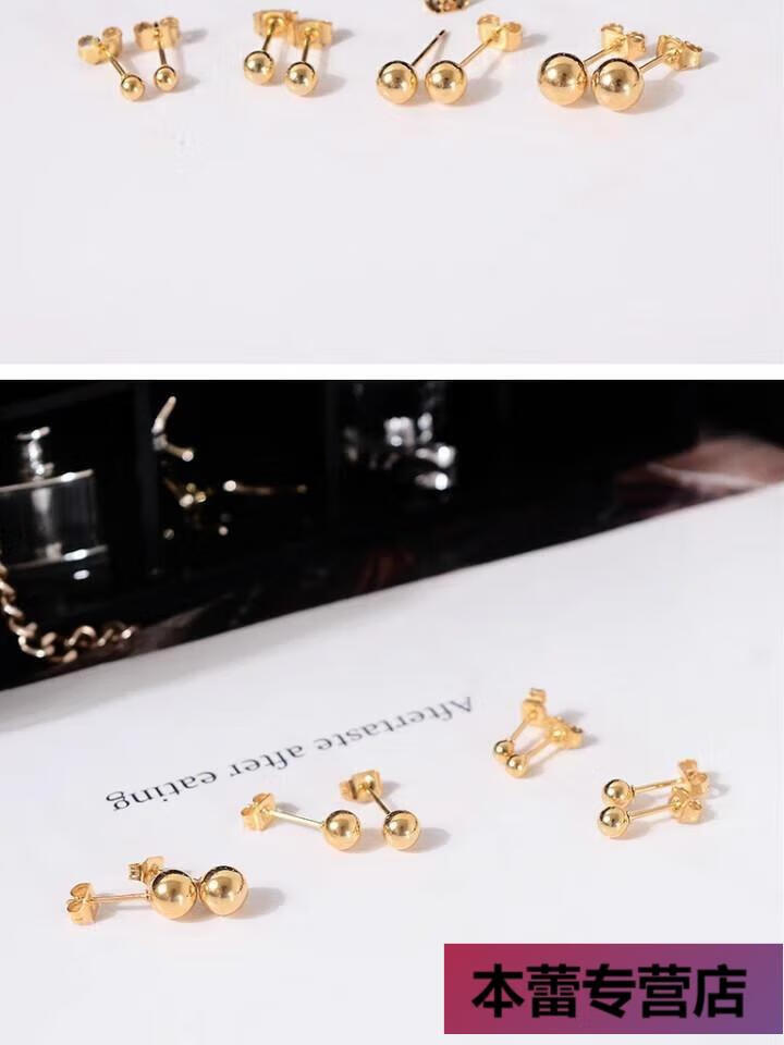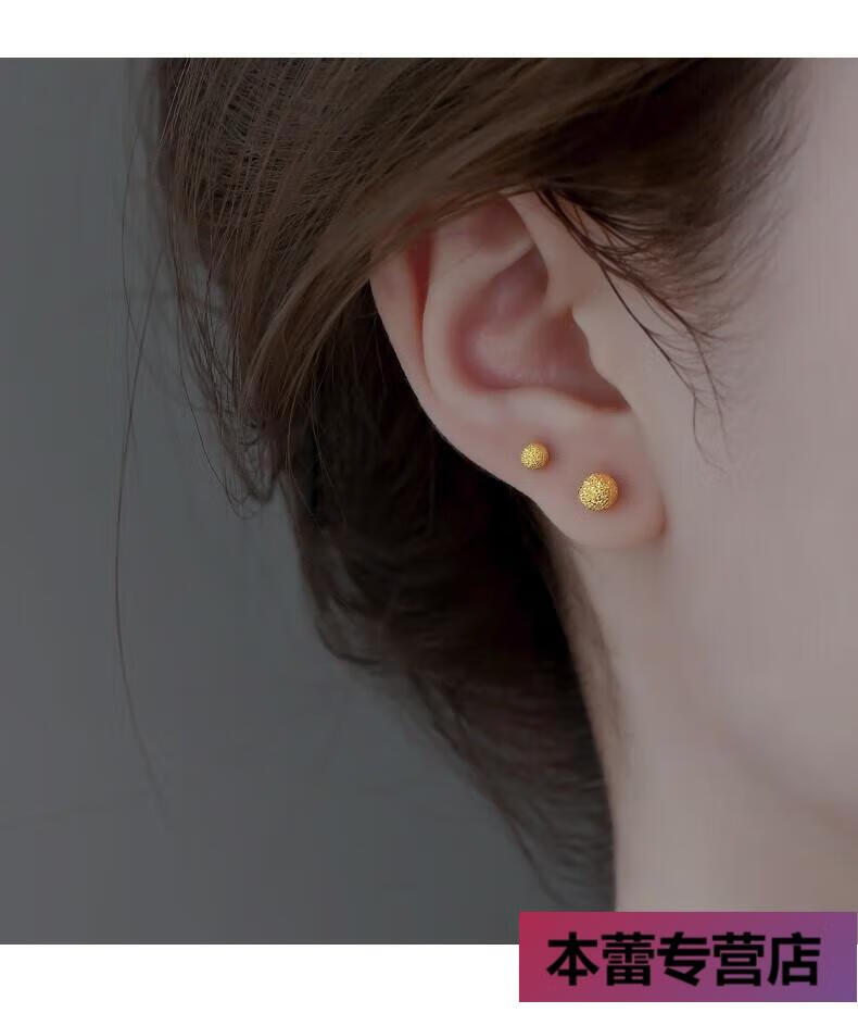 OFK Old Phoenix 999 Gold Ear Hole Hypoallergenic Earrings Small Gold Peas Mini Gold Beads Small Ears Shining Gold Glossy Old Phoenix Gold Store Style 5mm