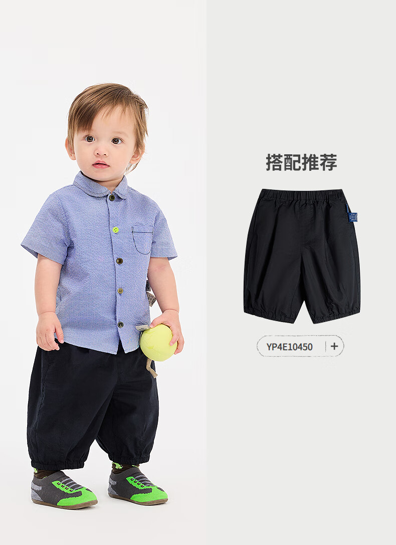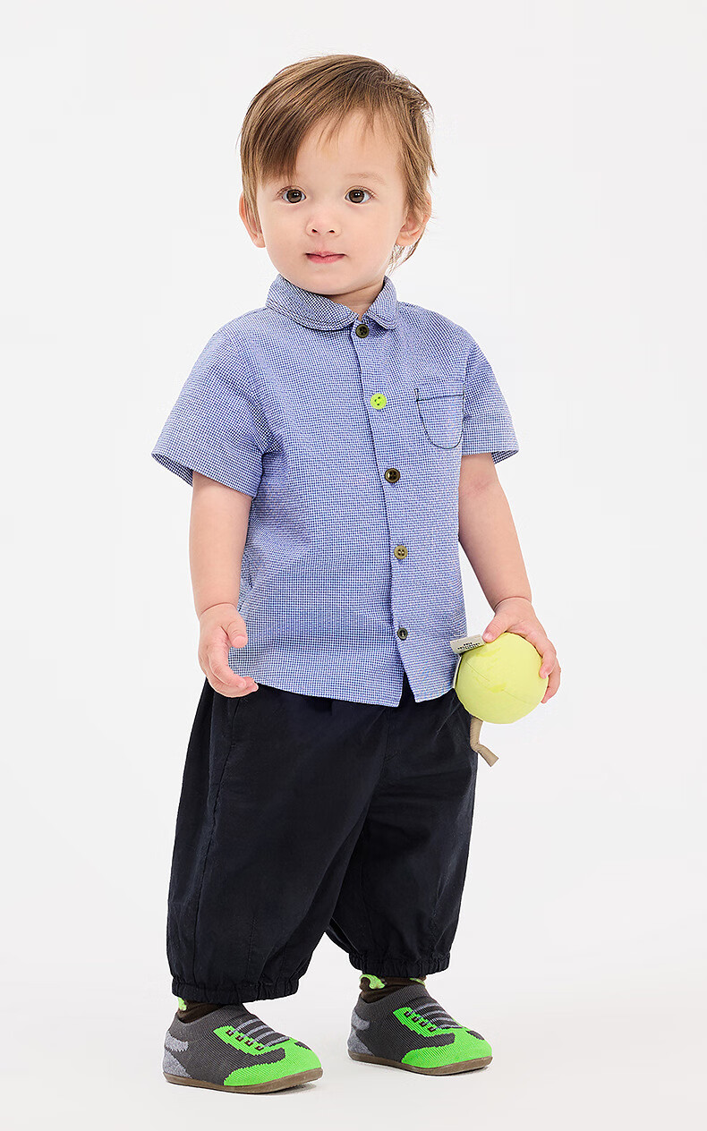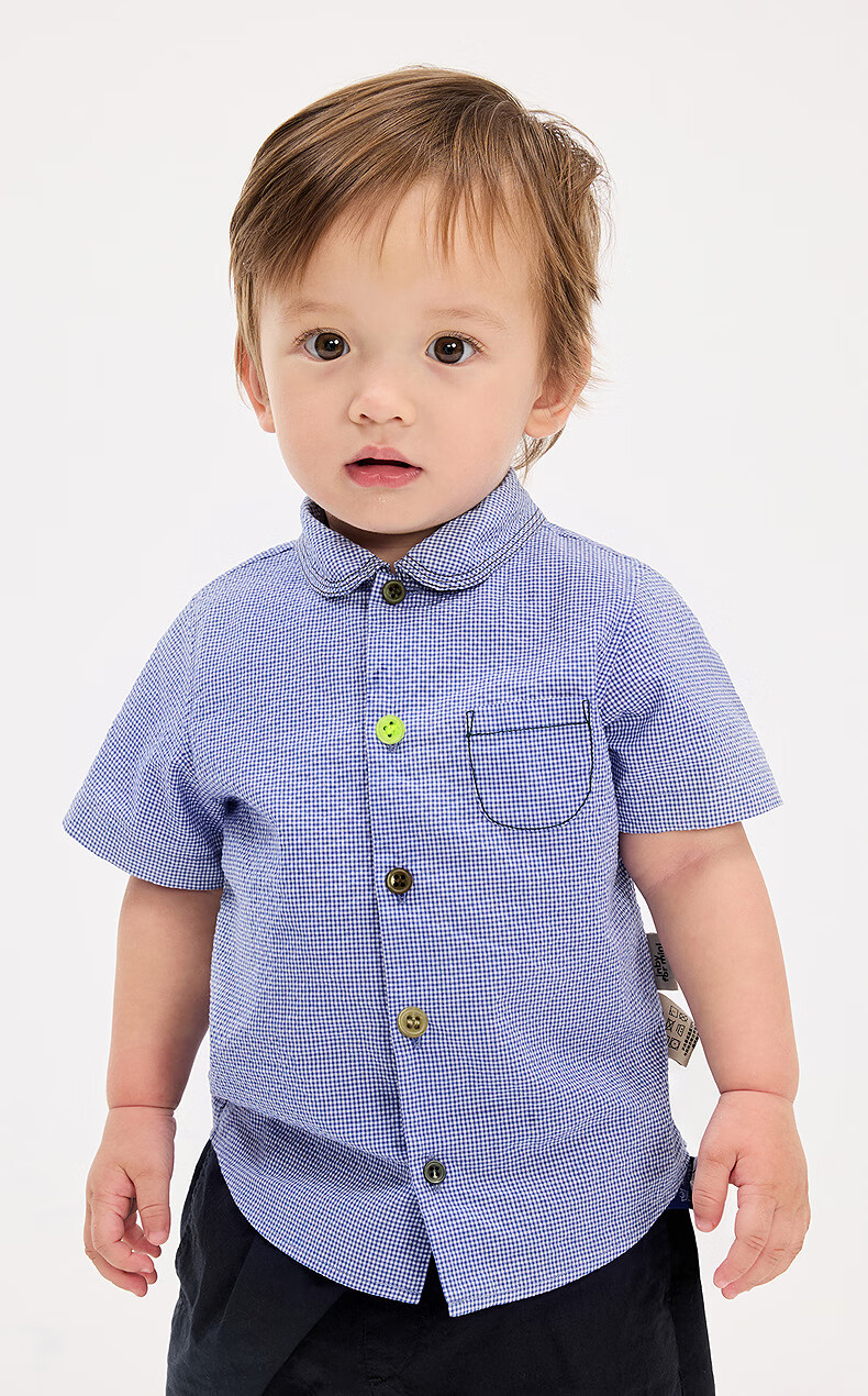 Jnby by JNBY Jiangnan Buyi baby short-sleeved shirt summer boys and girls baby YP5210300 977/blue and white check 80 cm
