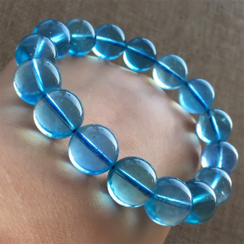 Rushuang natural ice species aquamarine single bead blue gemstone bracelet loose bead blue bracelet for women multi-treasure round bead accessories pendant for men 7A collection grade 6MM with holes