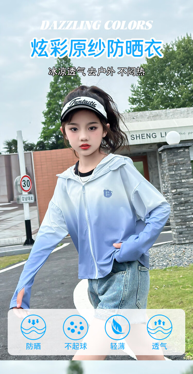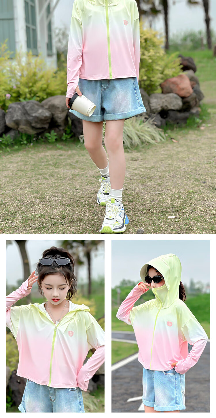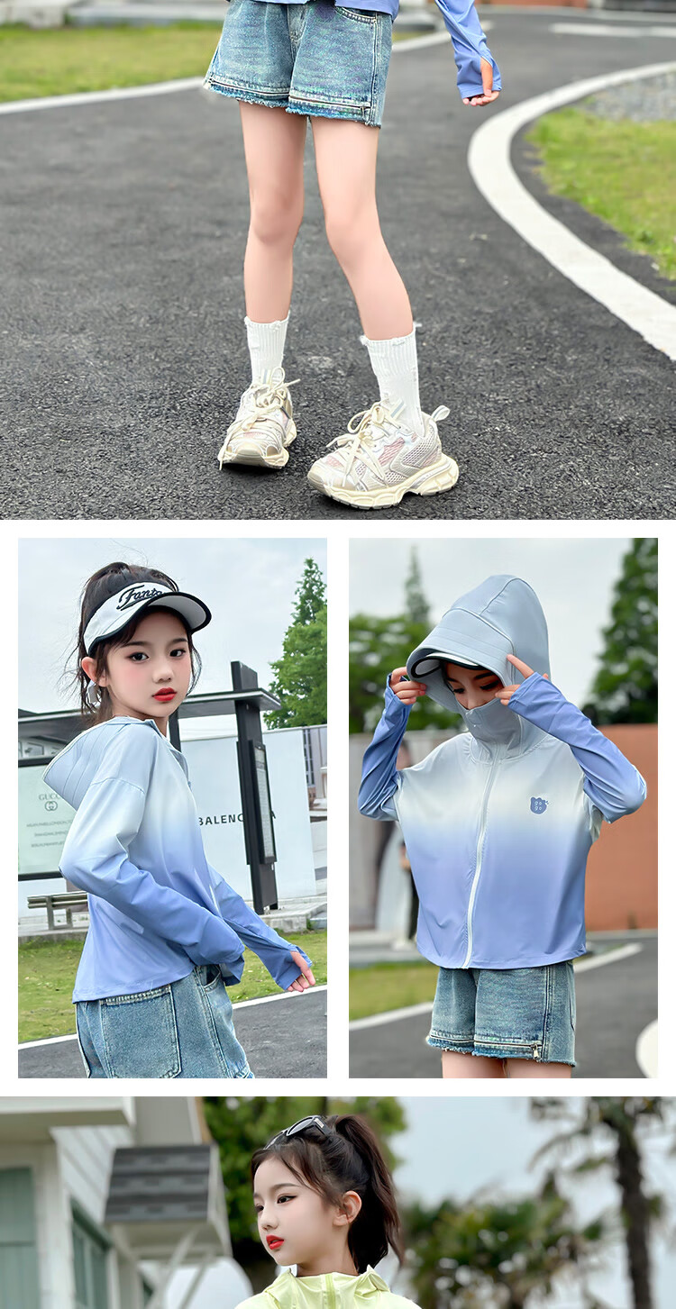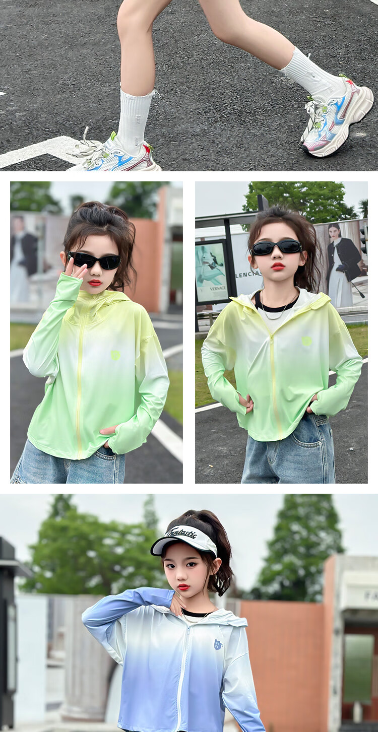 Children's sun protection clothing new summer boys and girls large brim ice silk breathable sun protection clothing cool jacket purple gradient 140