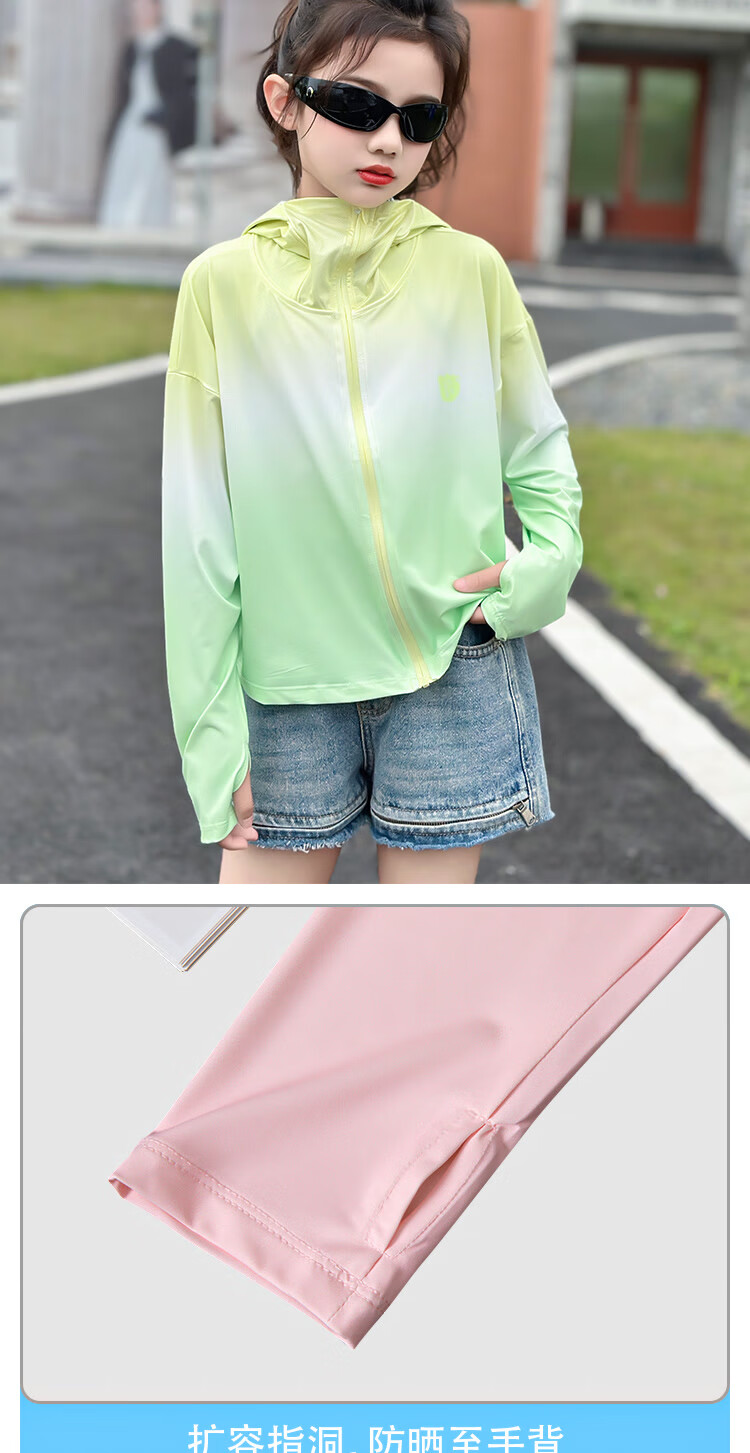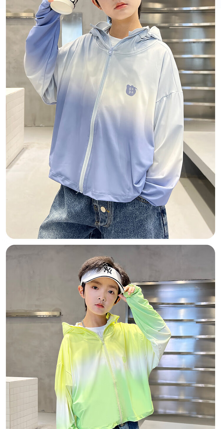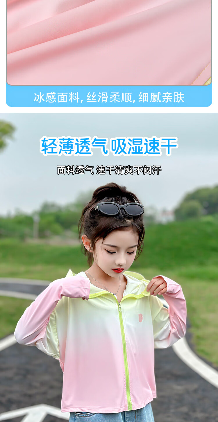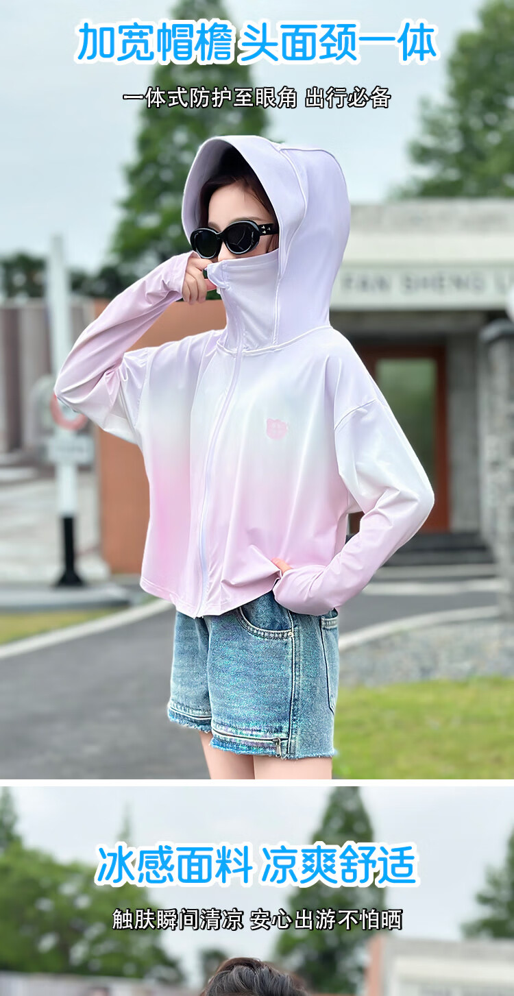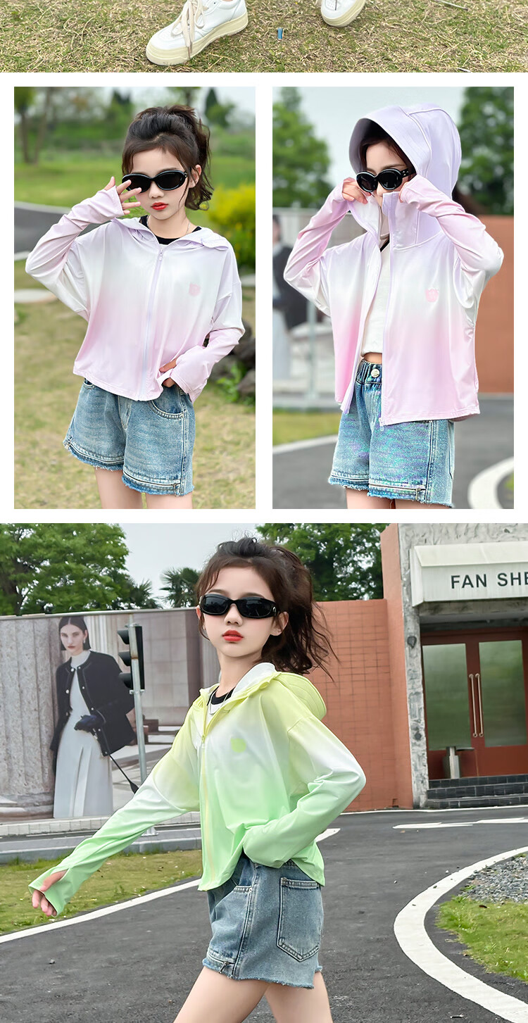 Children's sun protection clothing new summer boys and girls large brim ice silk breathable sun protection clothing cool jacket purple gradient 140