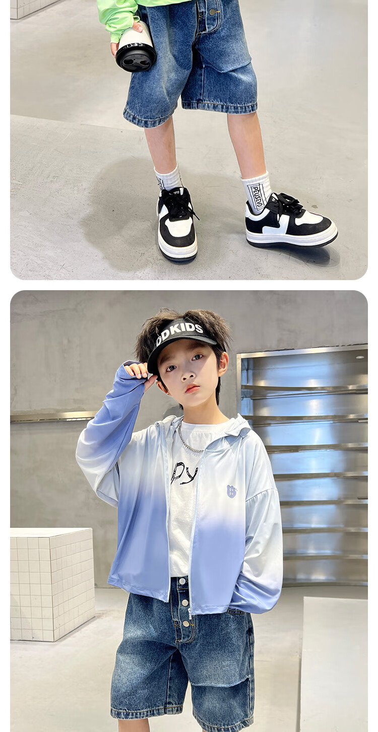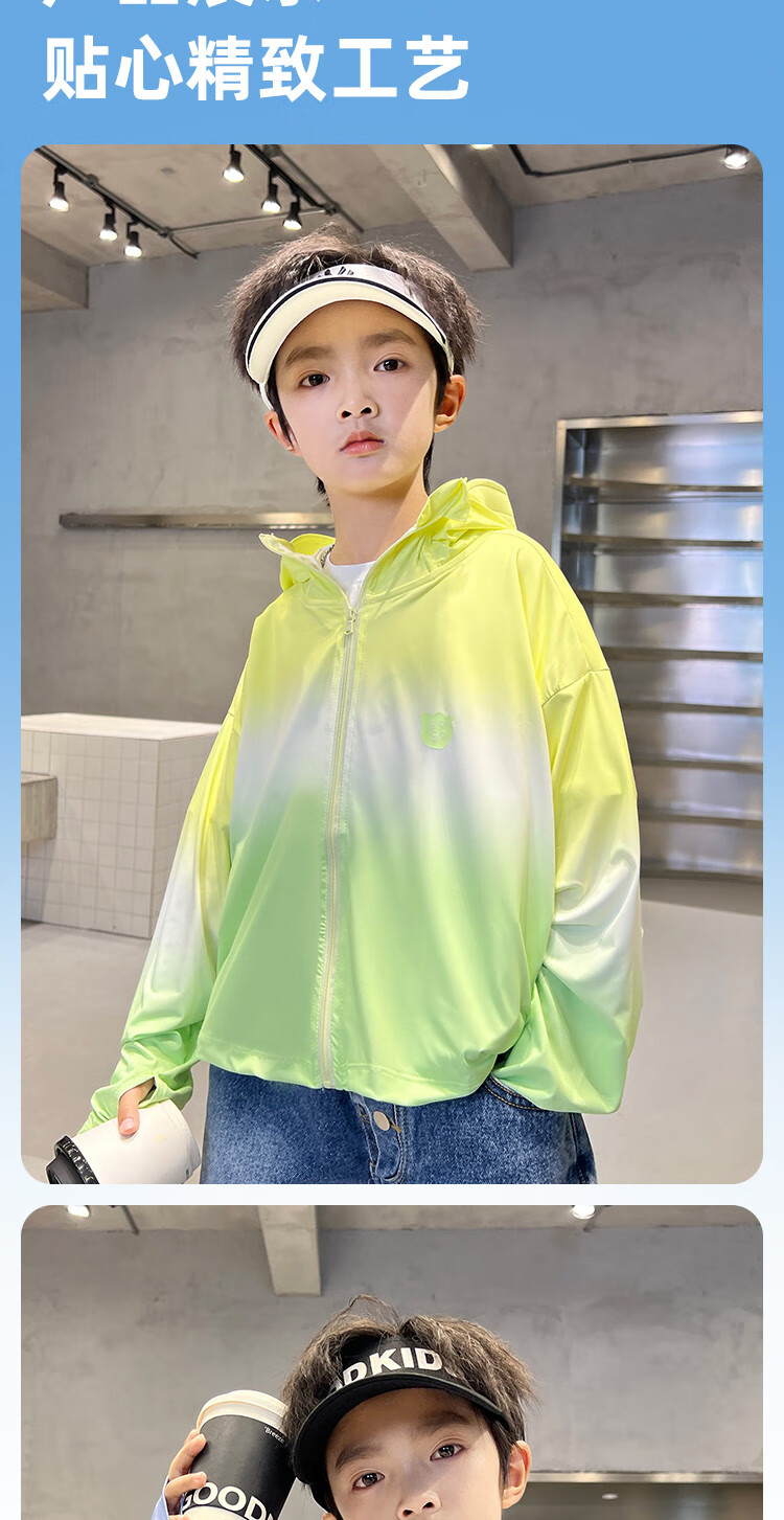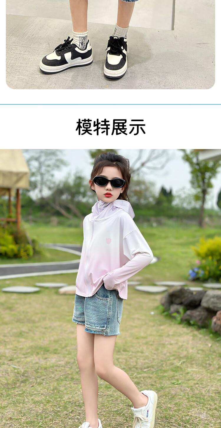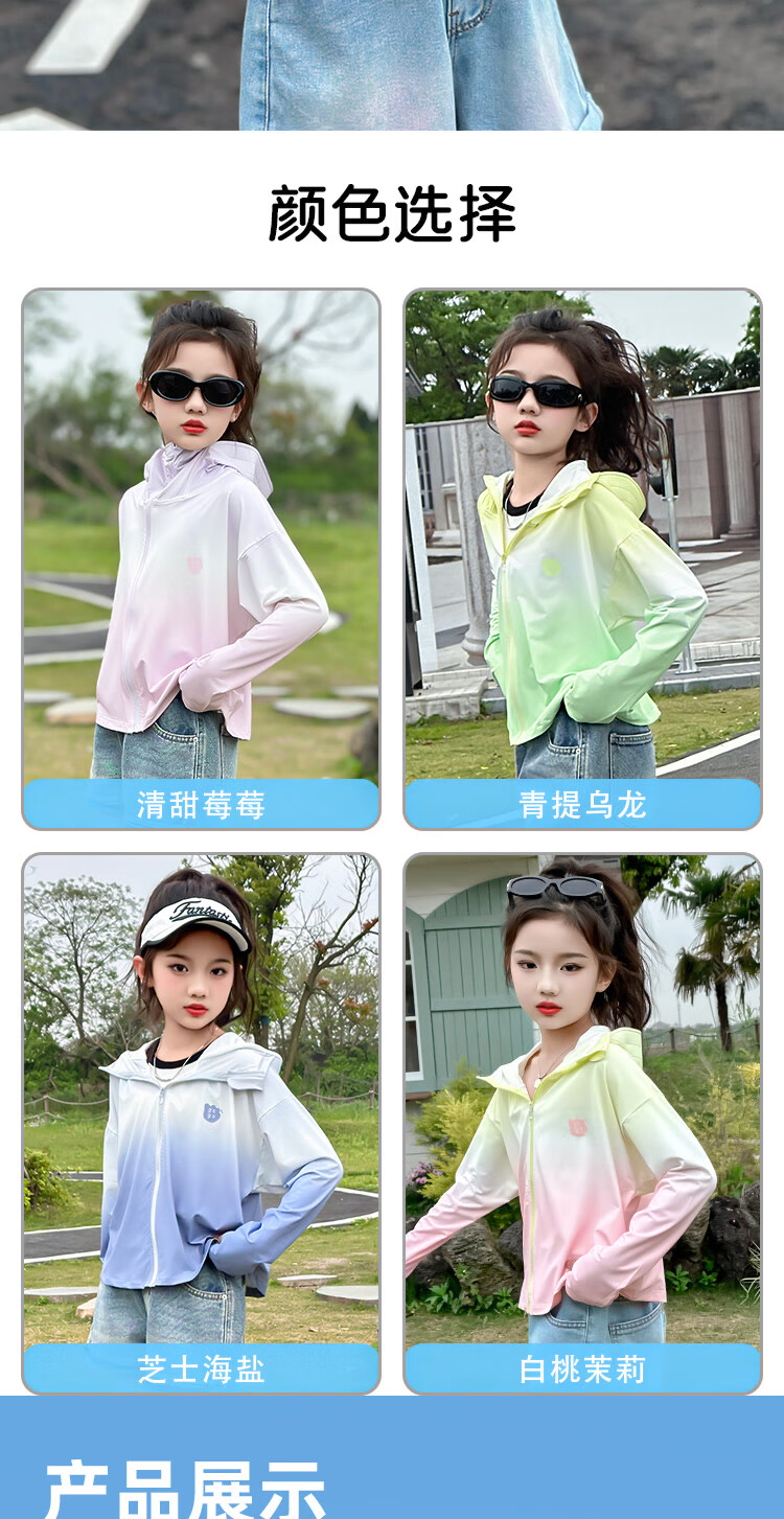 Children's sun protection clothing new summer boys and girls large brim ice silk breathable sun protection clothing cool jacket purple gradient 140
