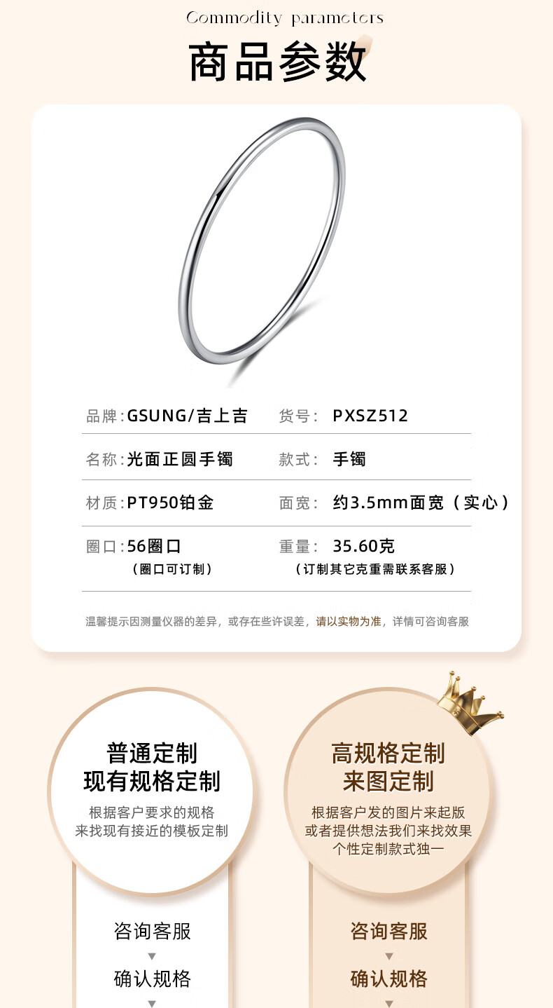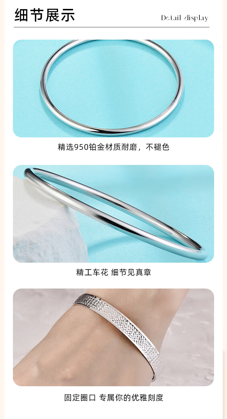 GsunG platinum glossy bracelet pt950 for women, pure platinum round bracelet, simple plain ring jewelry, solid concubine bracelet, PT950 bracelet, about 25 grams, pre-order