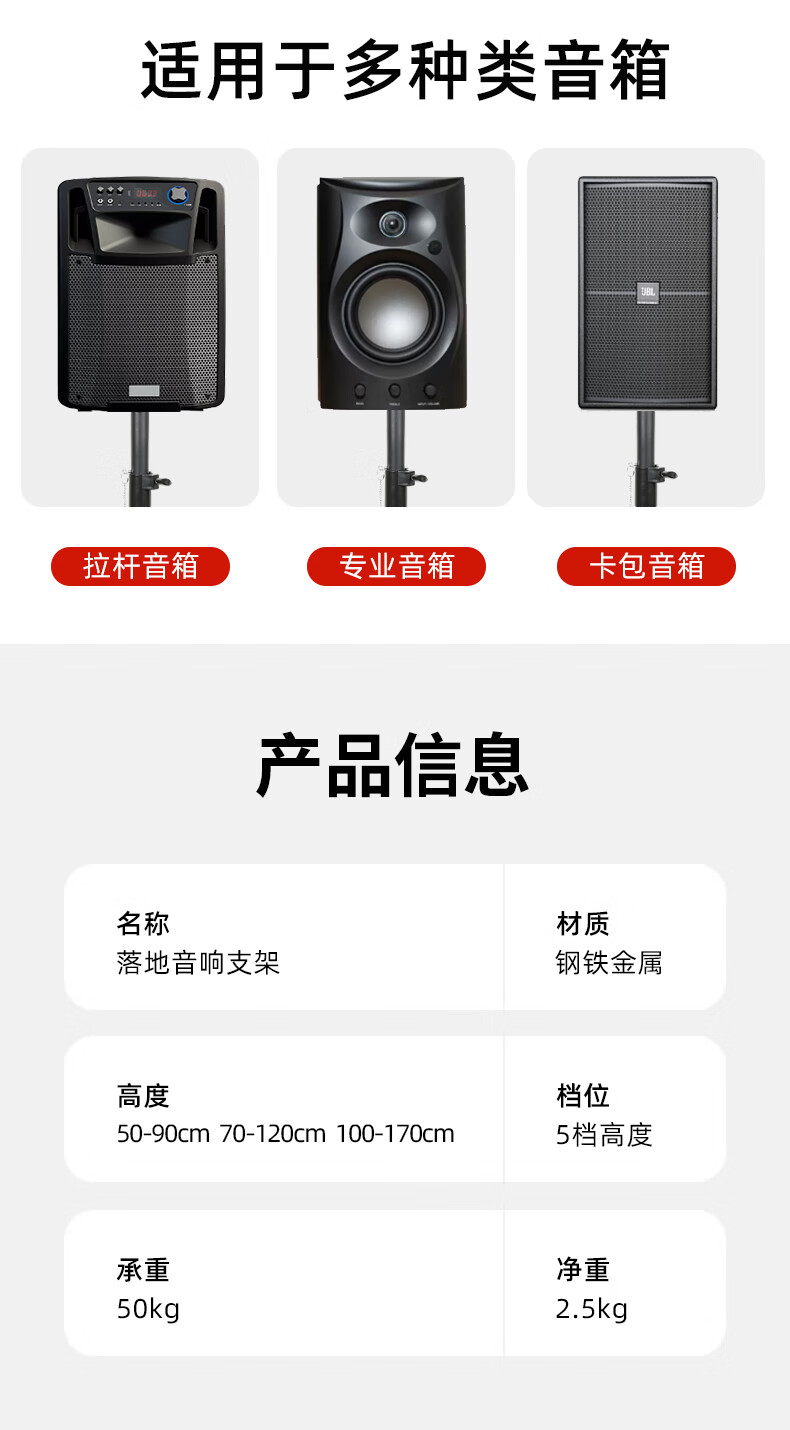 Aiyuan speaker bracket floor-standing tripod, professional stage performance surround sound bracket, lifting tray metal tripod, KTV card package floor-standing target box bracket 90-180cm retractable