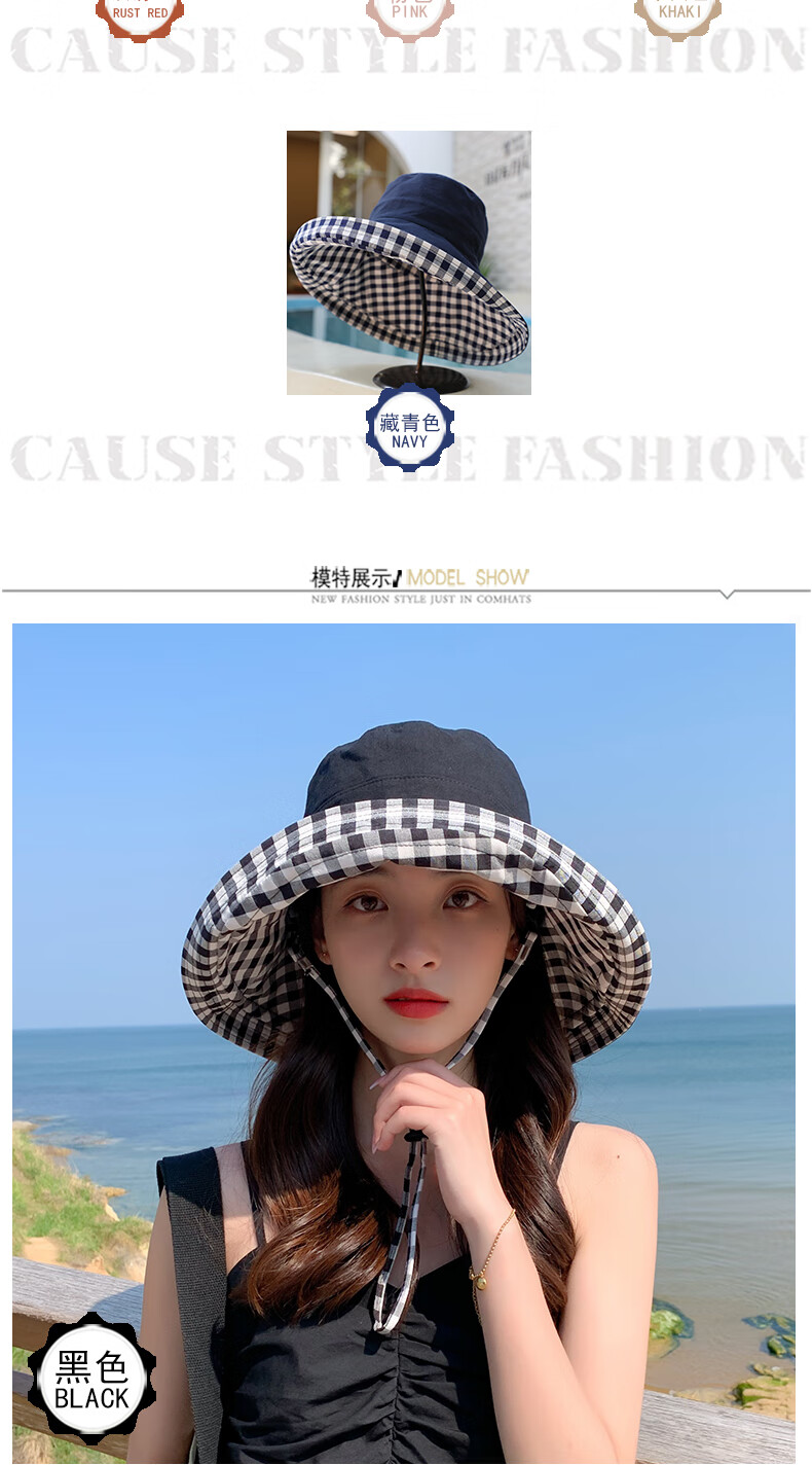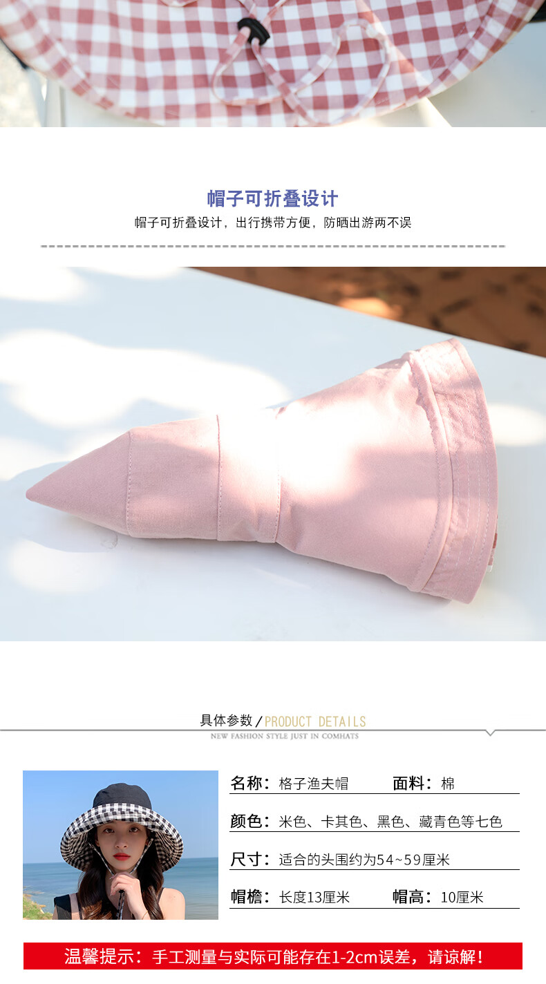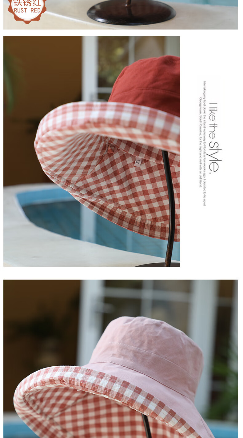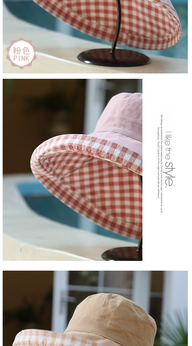 Woodpecker (TUCANO) double-sided plaid fisherman hat for women, spring and summer foldable sun visor, large brim sun hat to cover face, Korean version, trendy, khaki, double-sided (55-60cm)