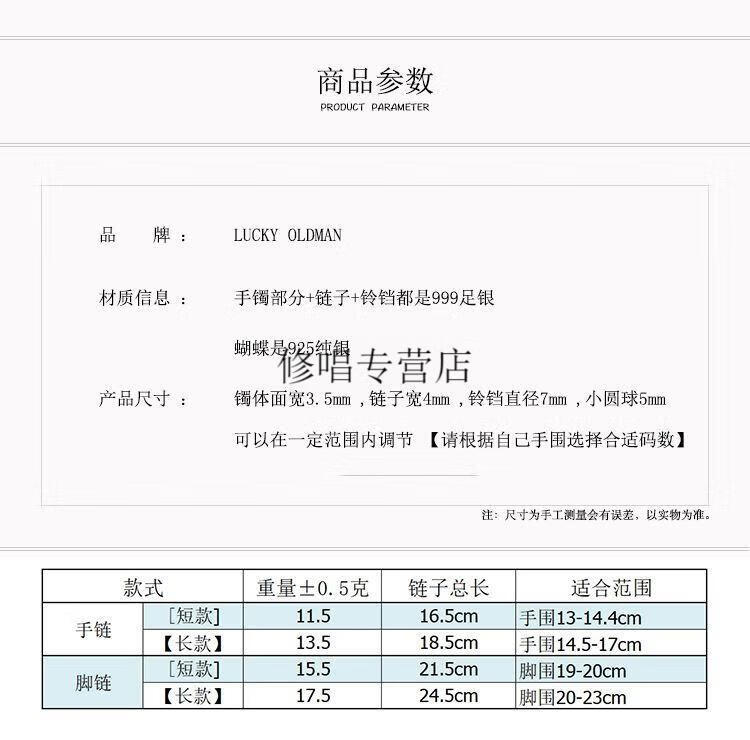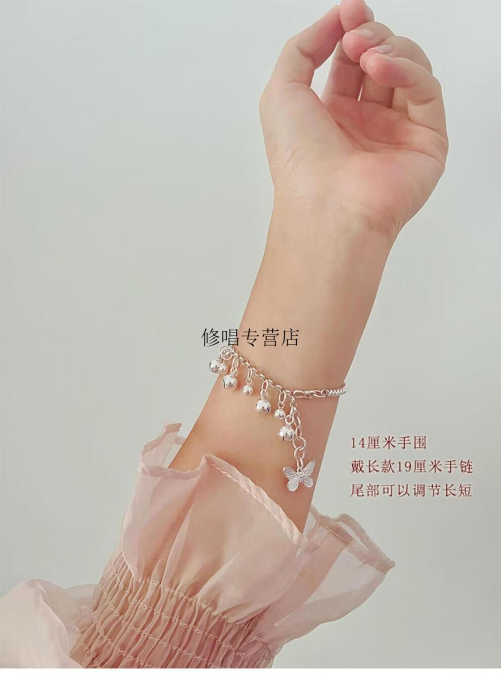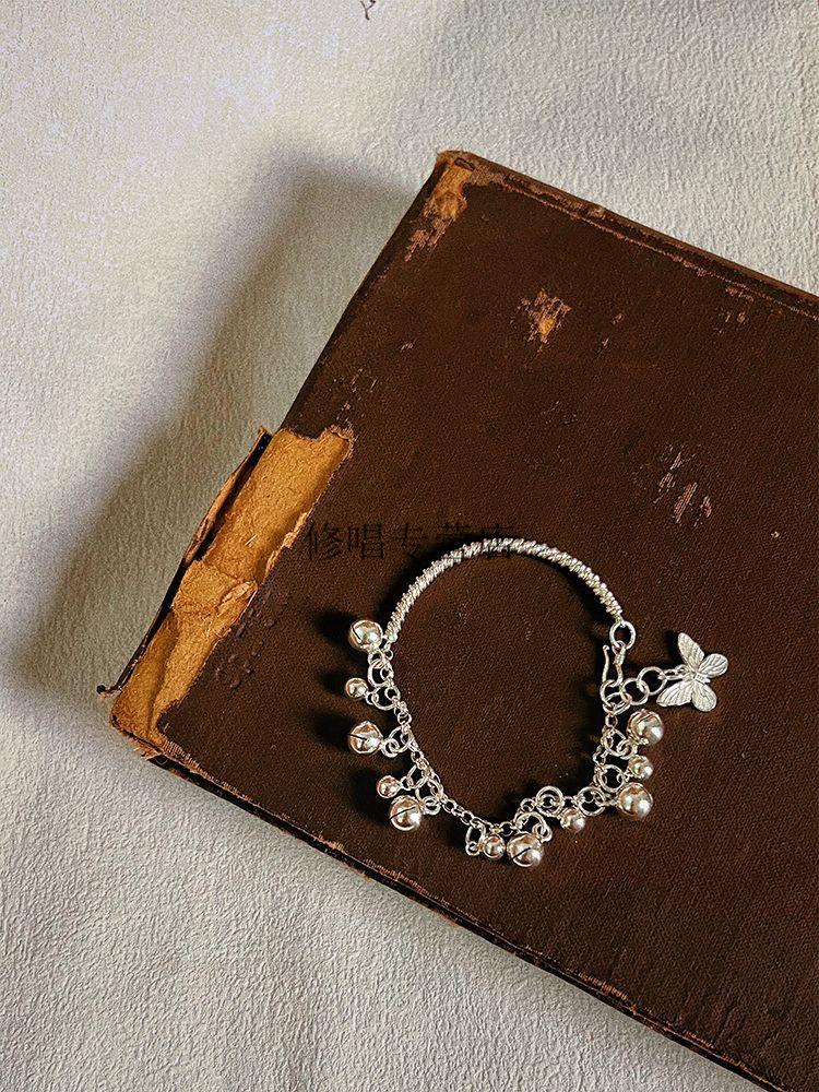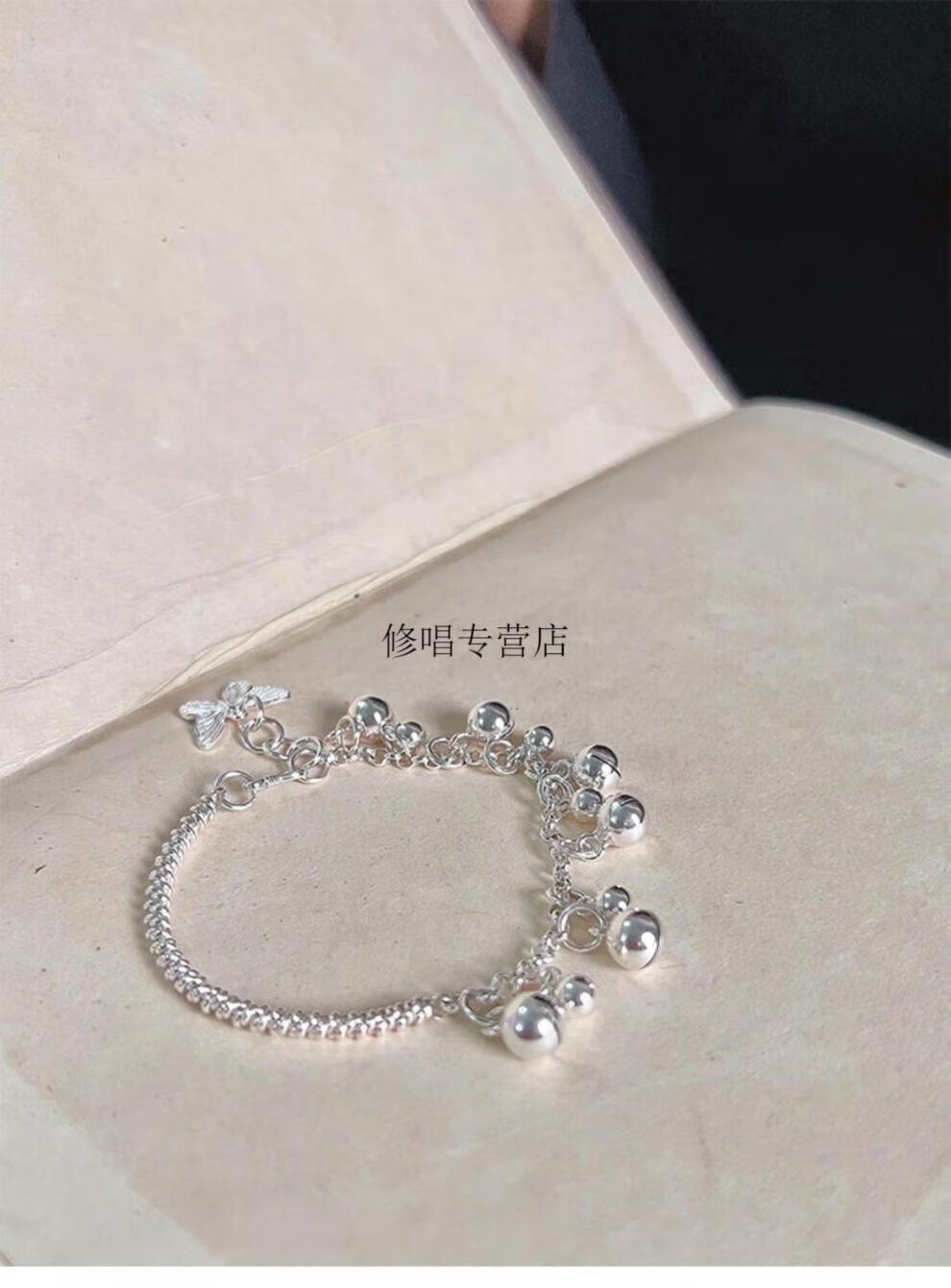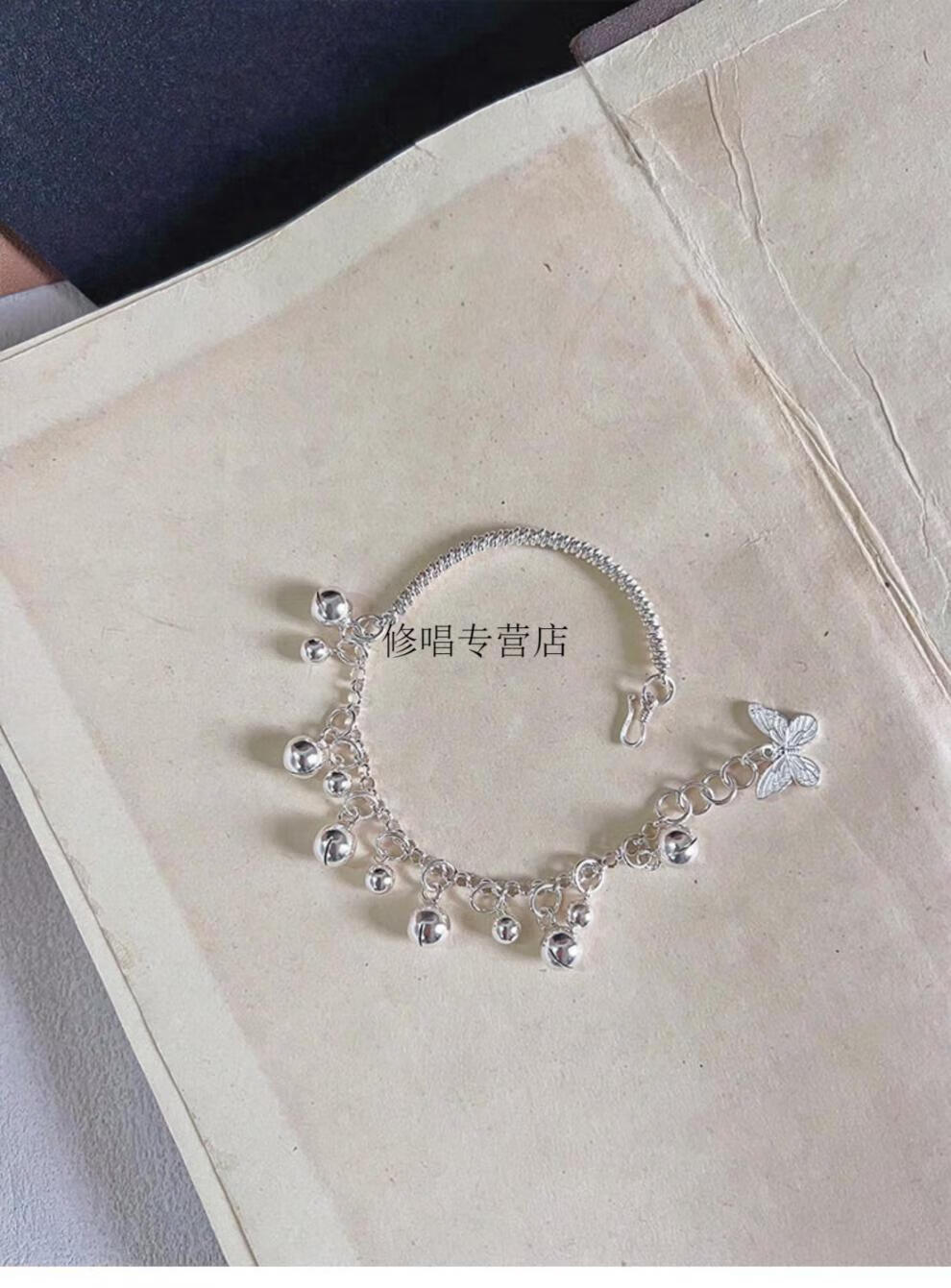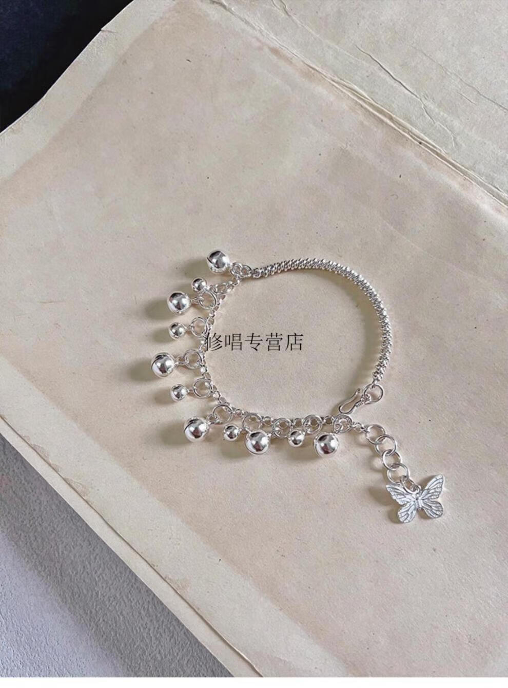 He Jiagong Lao Phoenix 999 pure silver new half bracelet half bracelet original niche bell butterfly sterling silver anklet jewelry anklet long style same style