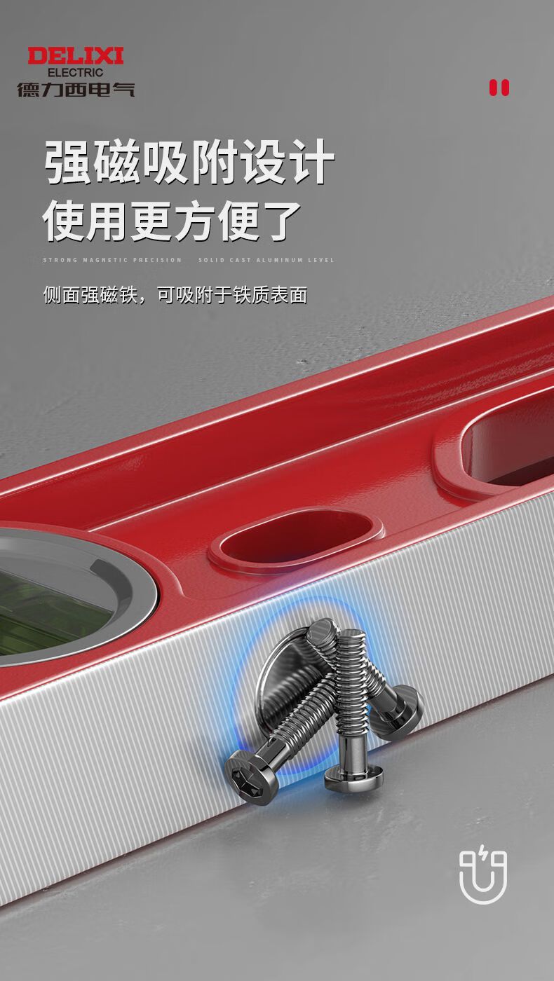 Delixi spirit level high-precision household leveling instrument tool fan small strong magnetic ruler solid anti-fall multi-functional 800mm solid cast aluminum non-magnetic industrial grade high