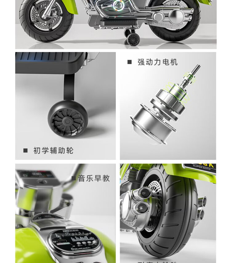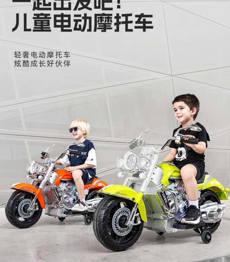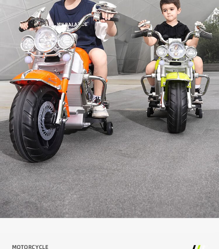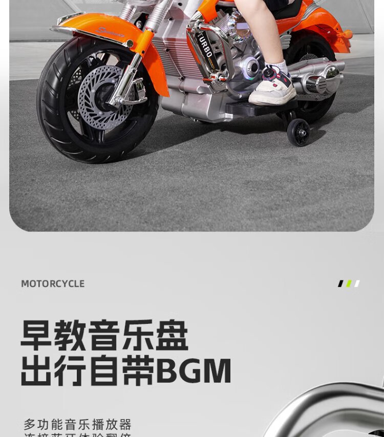 Bedron Children's Gift Children's Electric Car Motorcycle Two-Wheel Baby Battery Car Men's and Women's Charging Rider Toy Car Painted Orange 12v9+Hand-Turn Throttle+Leather Soft Wheel