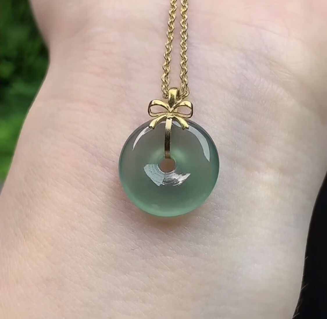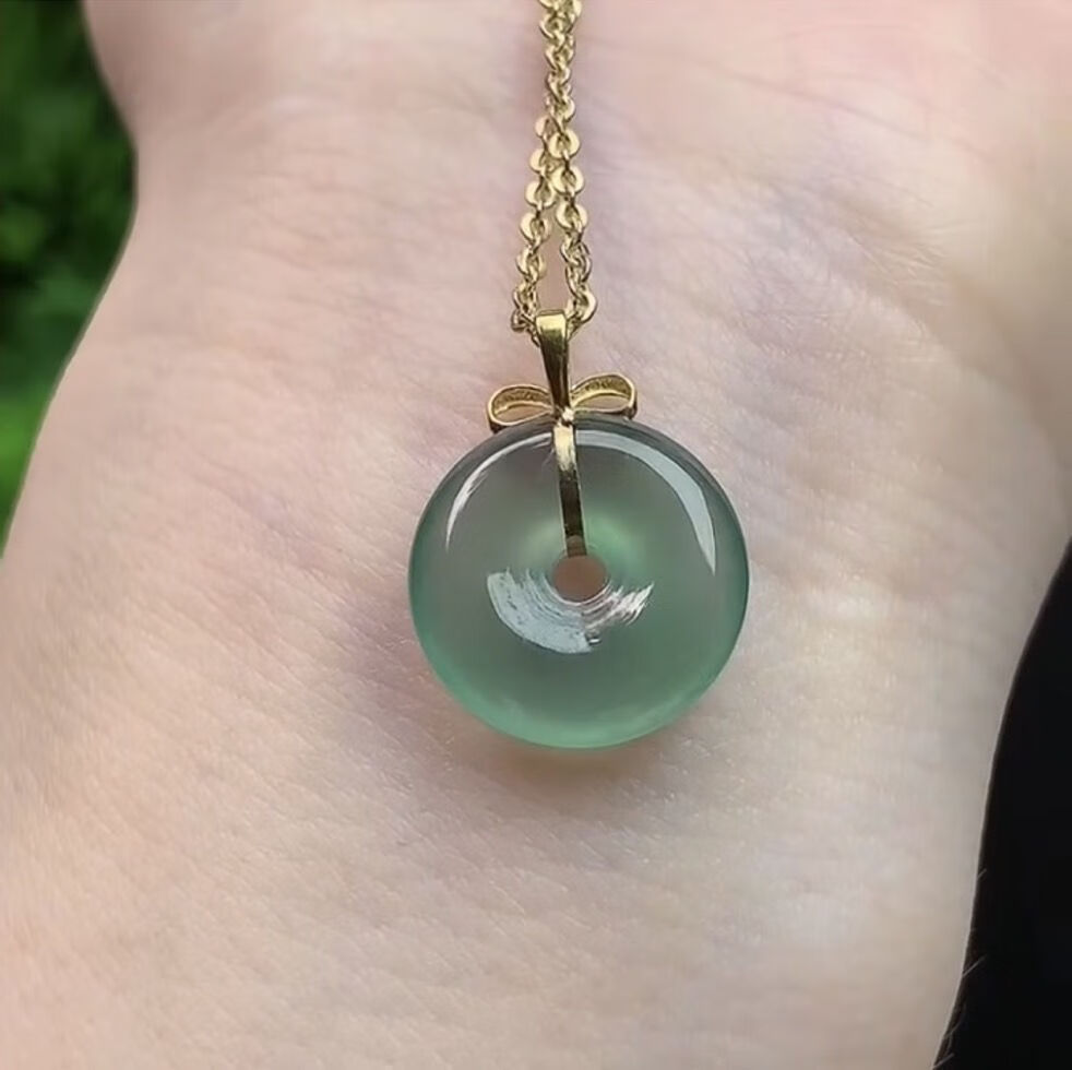 Lie Rui safe buckle pendant A goods Burmese stone button pendant plated with 18k gold inlaid with male and female baby style bow