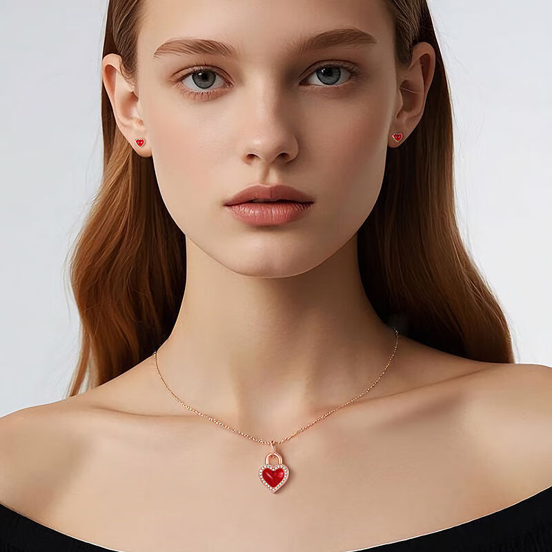 Lie Rui Jewelry 18K Gold Diamond Inlaid Pendant Beloved Heart Burnt Blue 3D Hard Gold Valentine's Day Gift Love Pendant 18K Gold Diamond Pendant