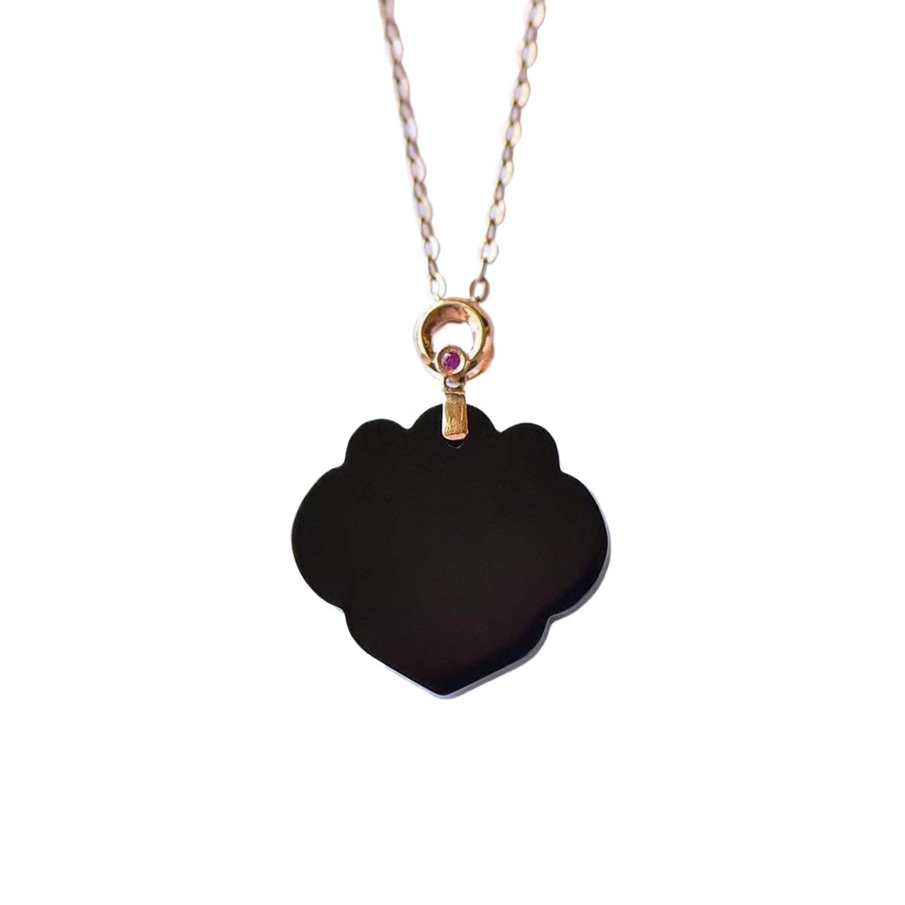 Lierui Natural Xinjiang Hotan Mo Jade Ping An Ruyi Lock Pendant Clavicle Chain 18k Gold Inlaid Women's Necklace Pendant