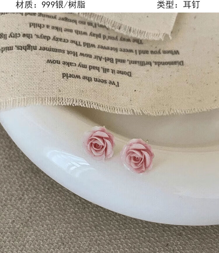 Mansheng gentle rose flower S999 sterling silver earrings for women 2025 new high-end earrings light luxury niche temperament earrings 999 silver pink rose pair