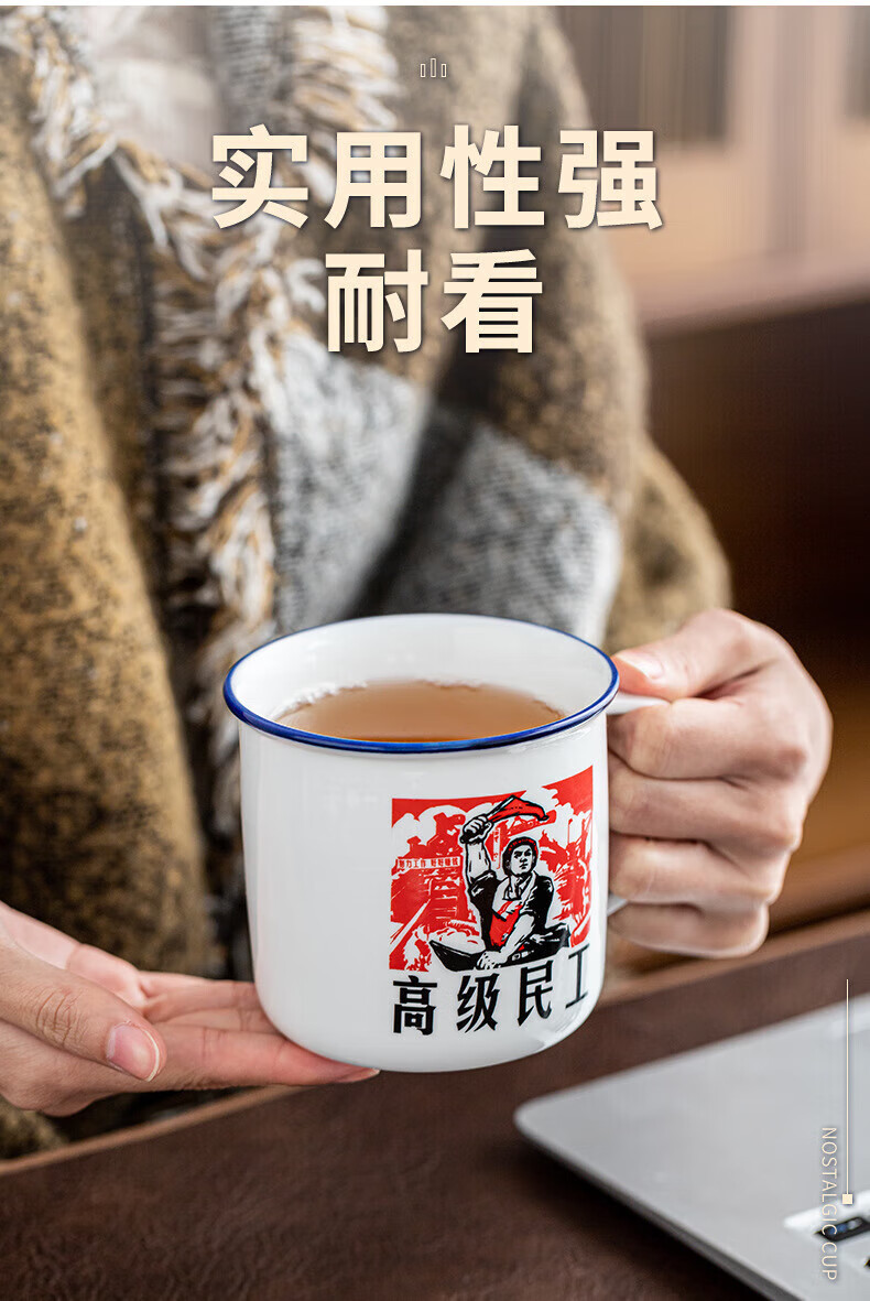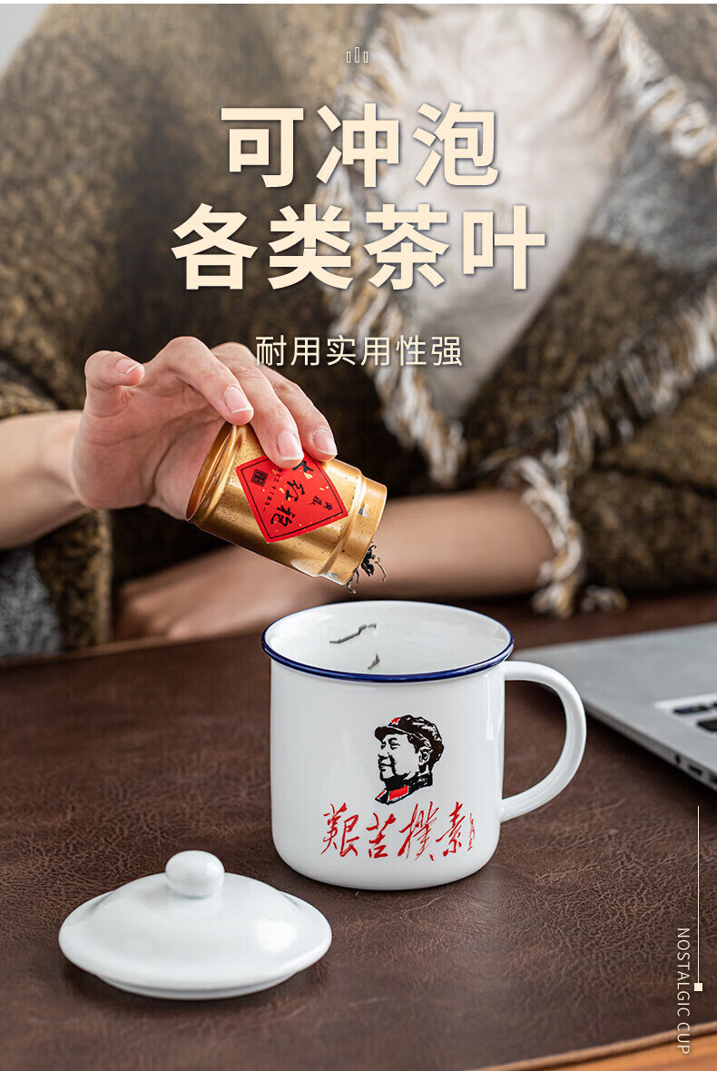 Jidaocook ceramic retro nostalgic mug with lid large capacity water cup boys old-fashioned tea jar classic old cadre tea cup serving the people 450ml 401-500ml