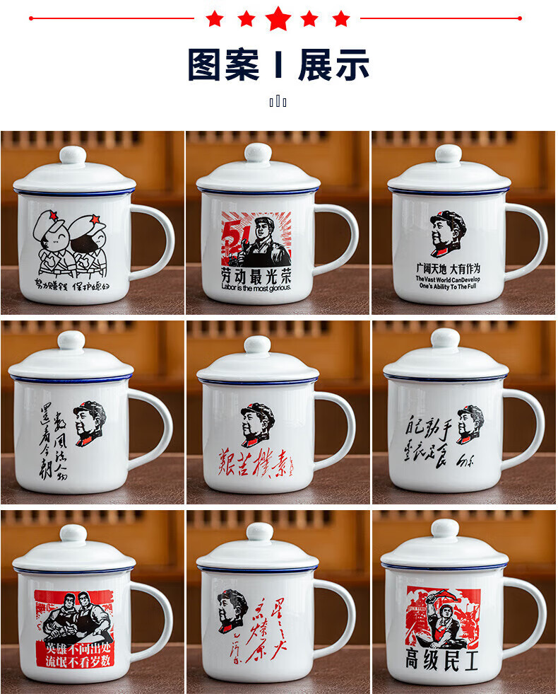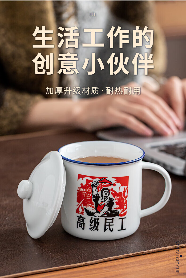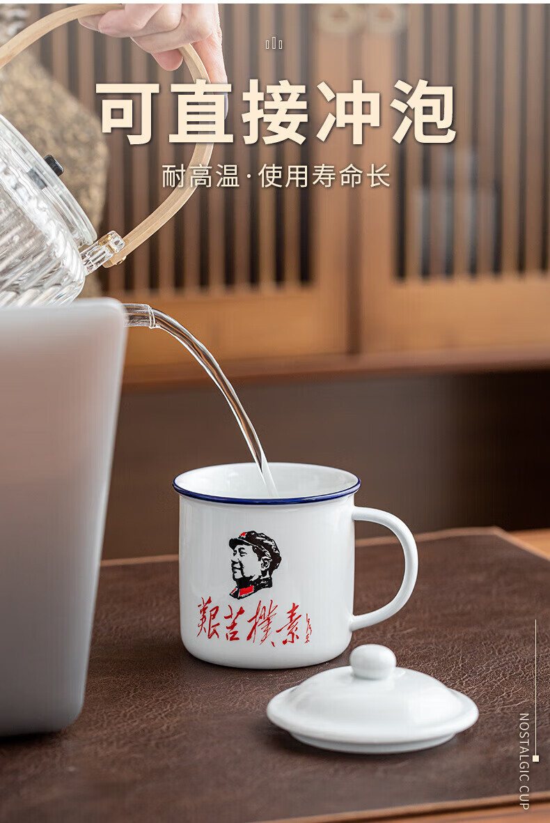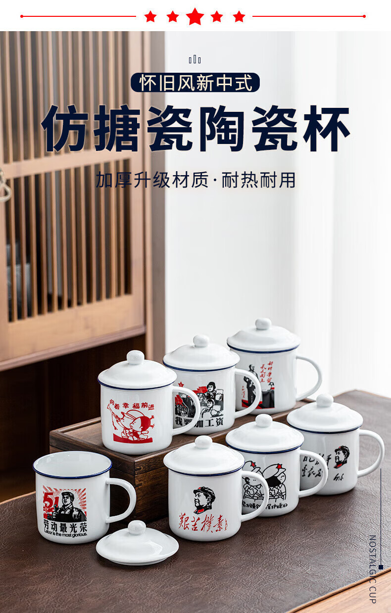 Shuimi ceramic retro nostalgic mug with lid large capacity water cup boys old-fashioned tea jar classic old cadre tea cup serving the people 450ml 401-500ml