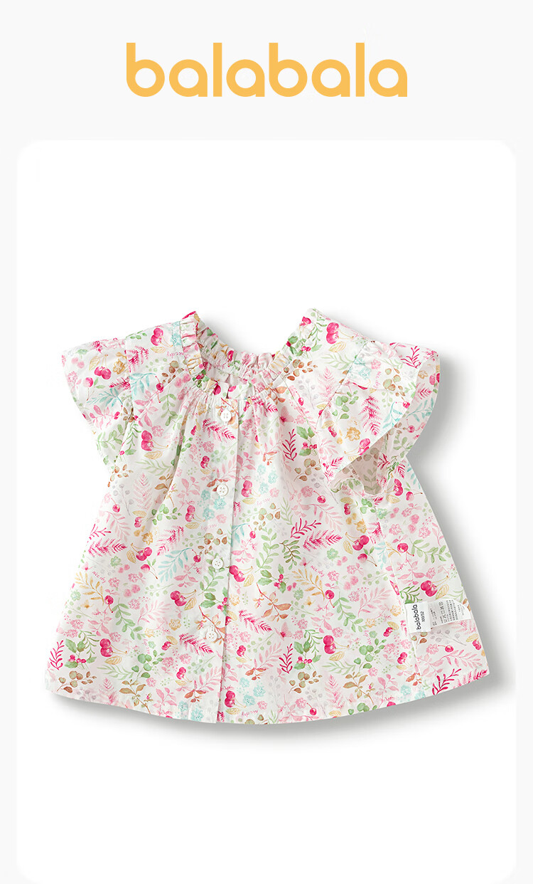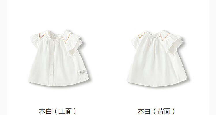 Balabala children's clothing girls short-sleeved shirt 2025 summer new sweet ruffle top original white 10101 120