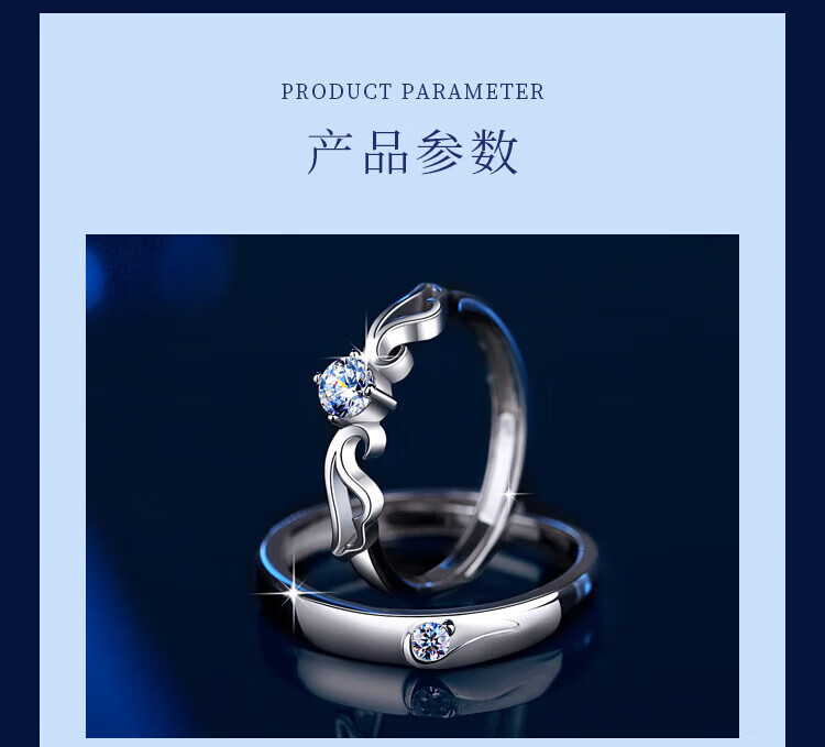VCIXYOUPT950 platinum moissanite and diamond couple ring for girls, a pair of rings, anniversary birthday gift for girlfriend, engraved greeting card, angel wings ring for women