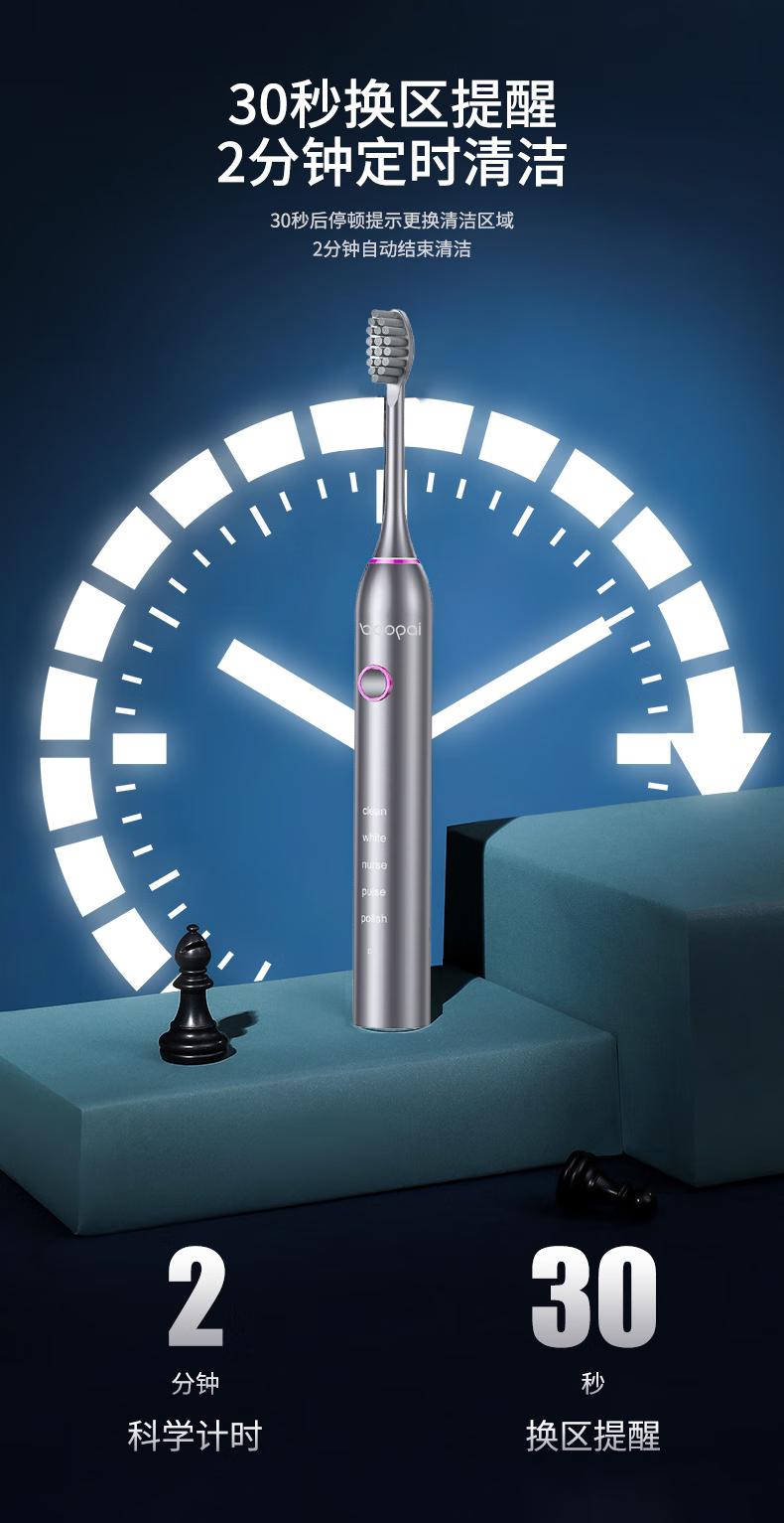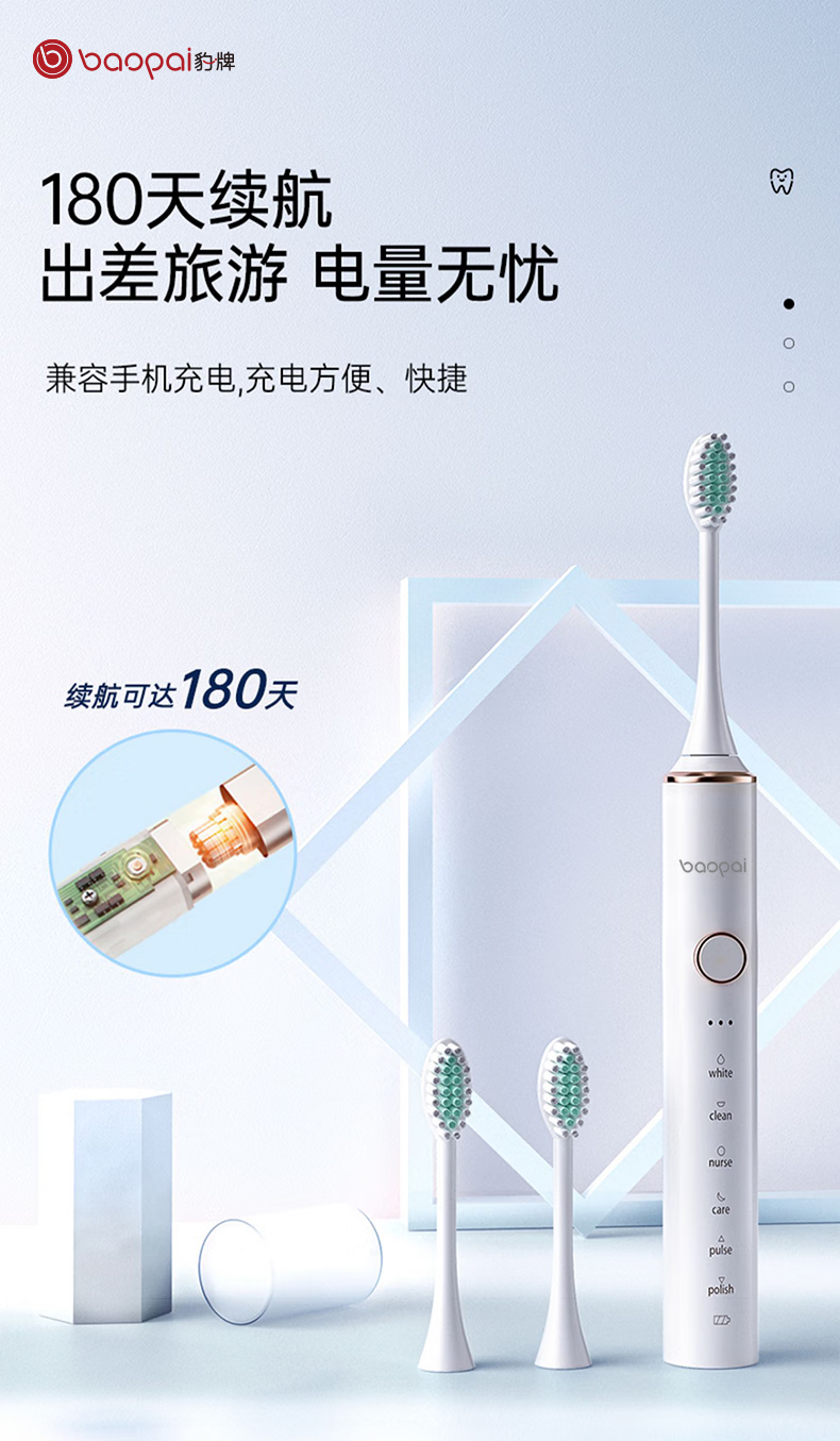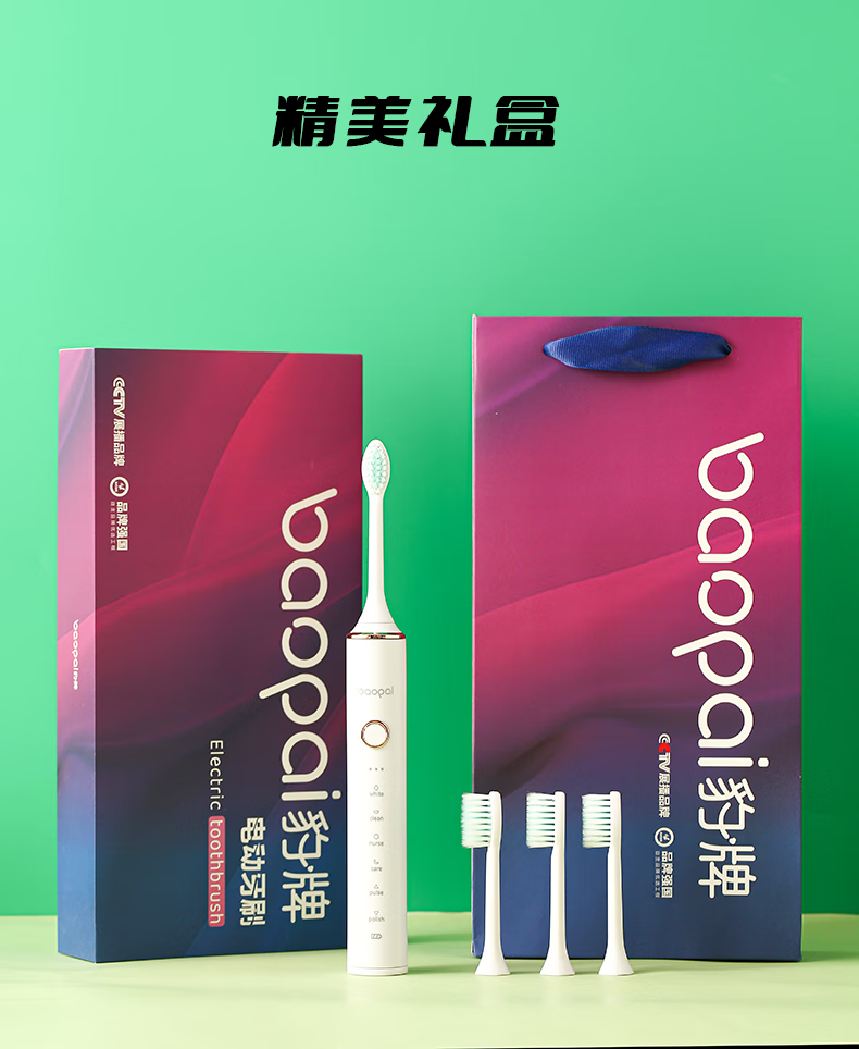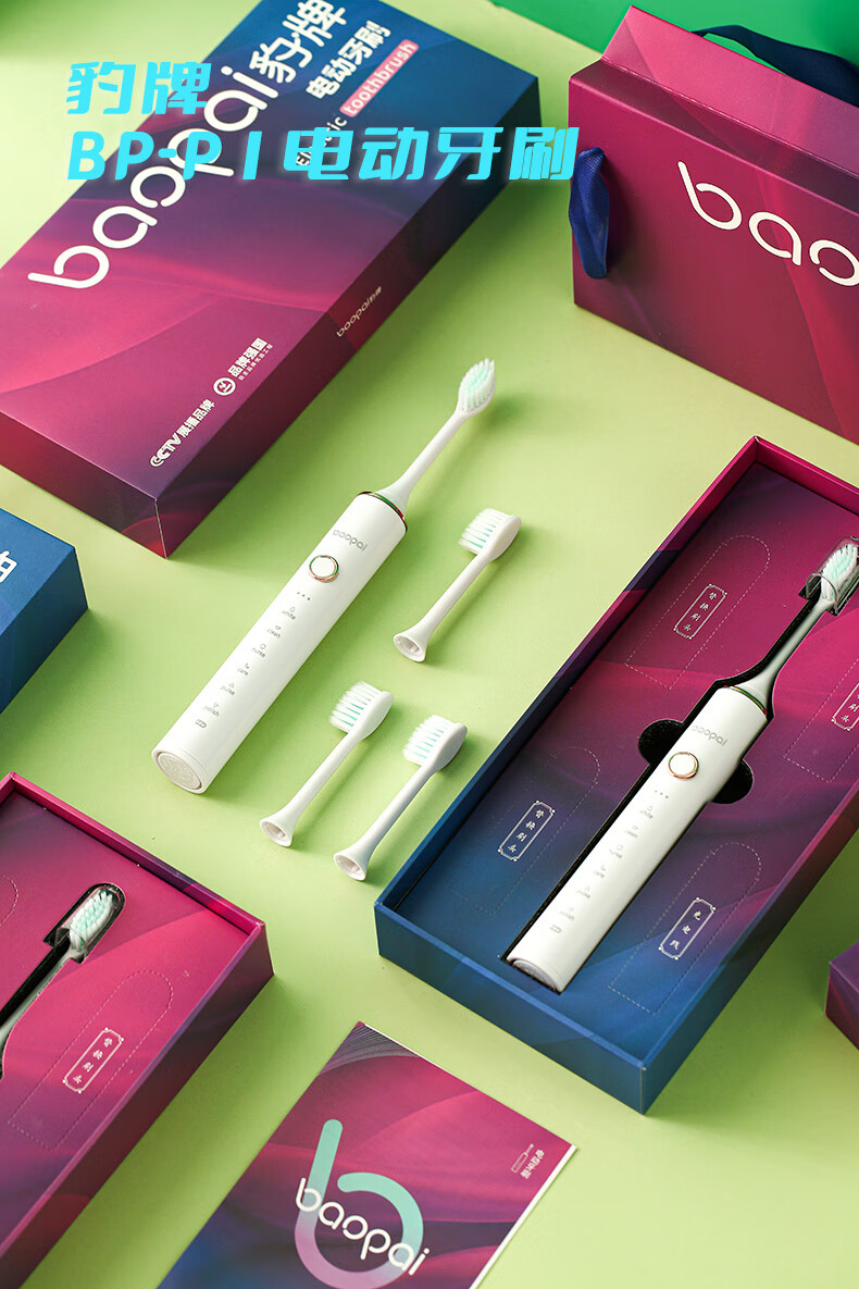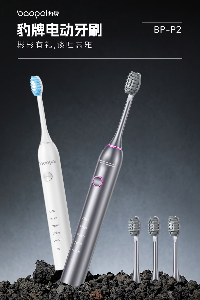 Leopard brand electric toothbrush with 4 brush heads, sonic, multiple modes, long battery life, exquisite gift box, holiday gift for parents, boyfriend, friends and wife BP-P2 magnetic levitation electric toothbrush white