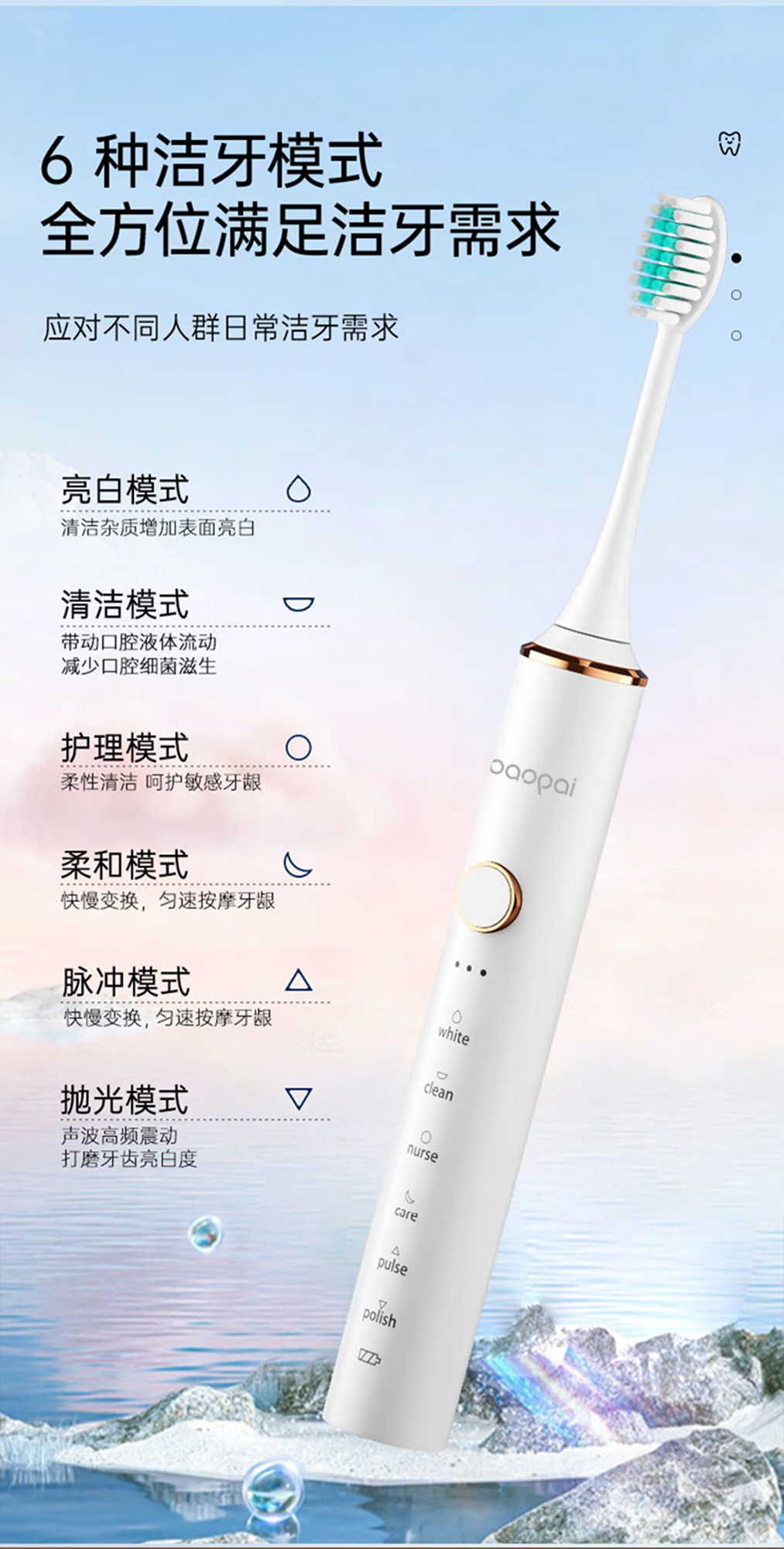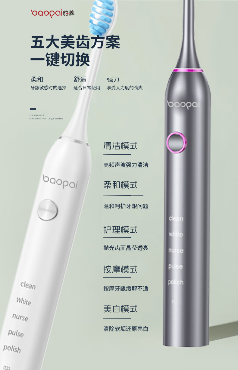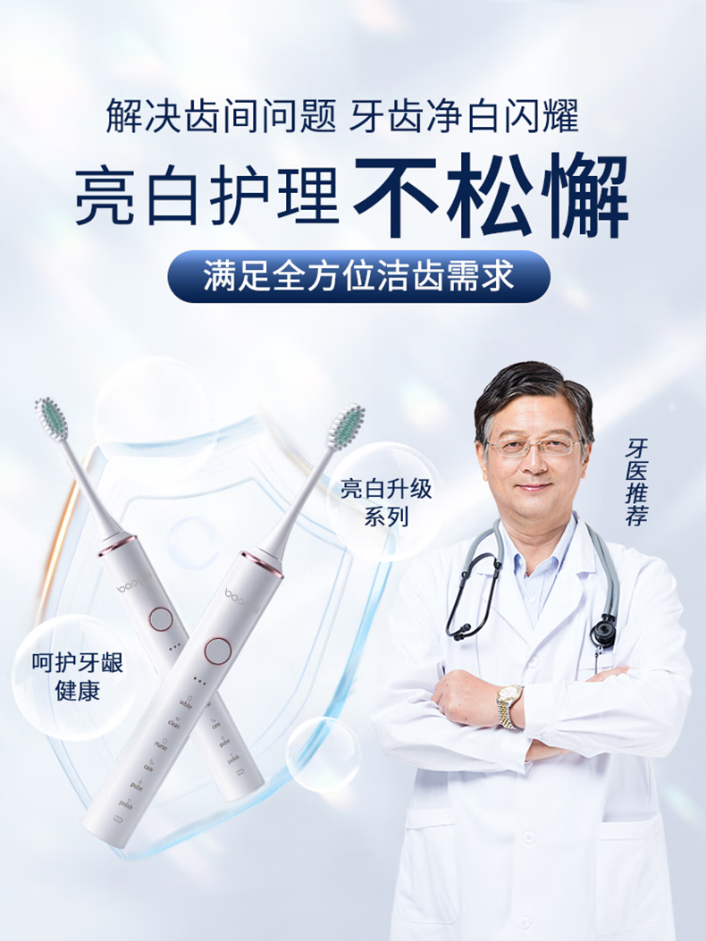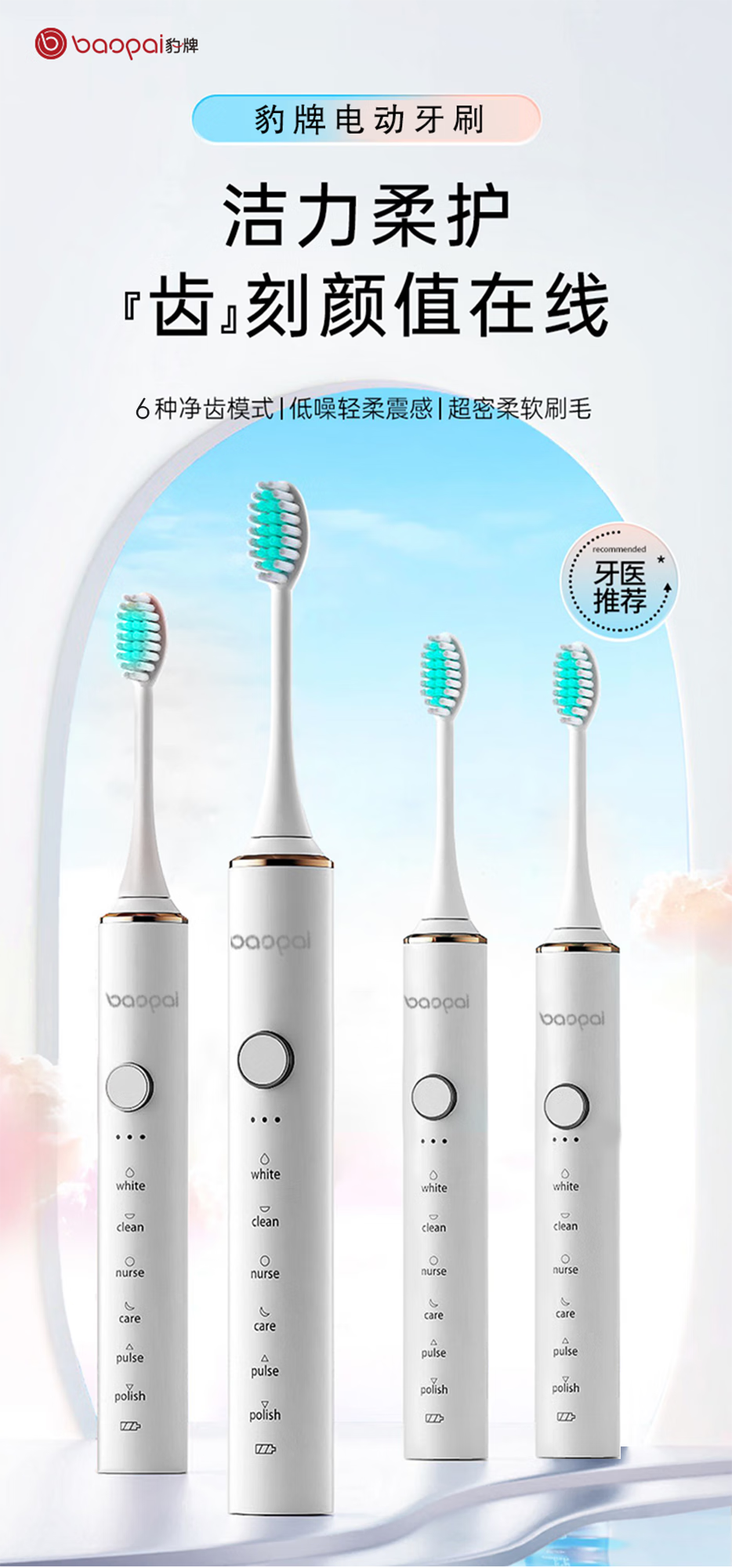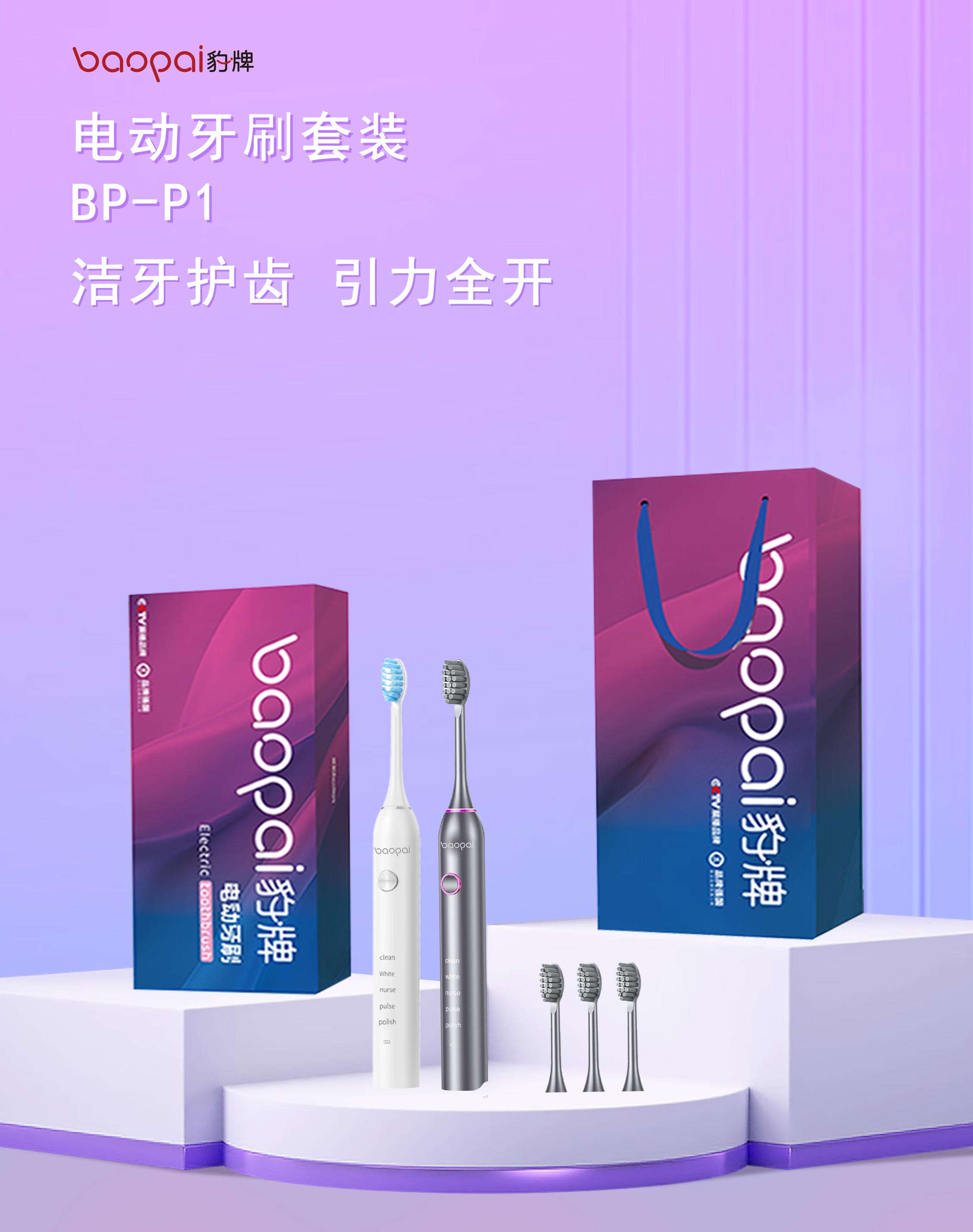 Leopard brand electric toothbrush with 4 brush heads, sonic, multiple modes, long battery life, exquisite gift box, holiday gift for parents, boyfriend, friends and wife BP-P2 magnetic levitation electric toothbrush white