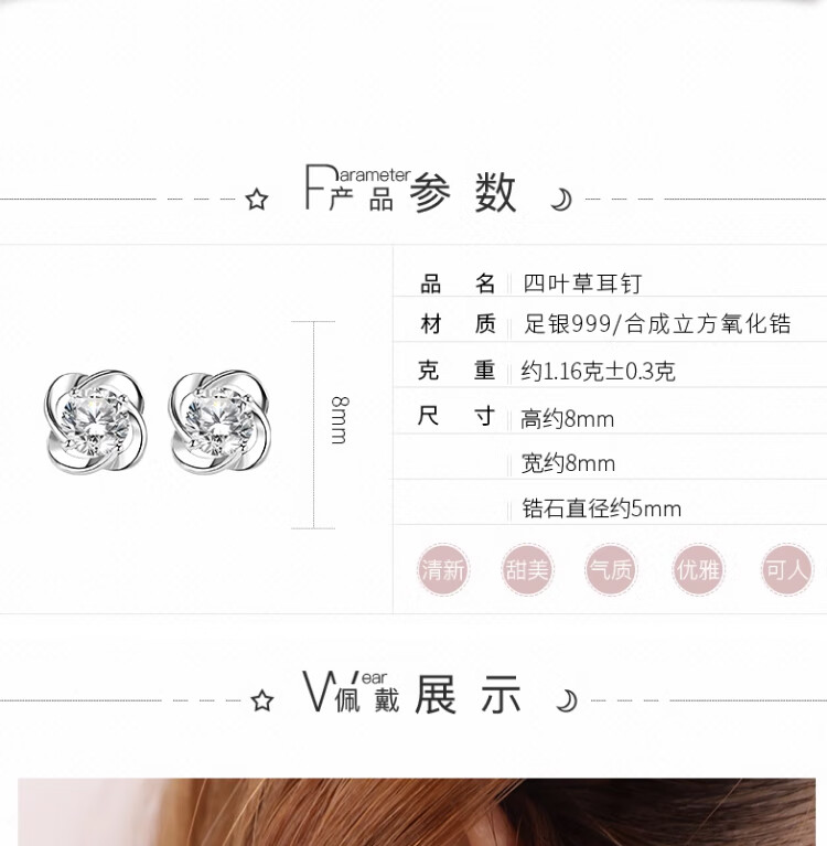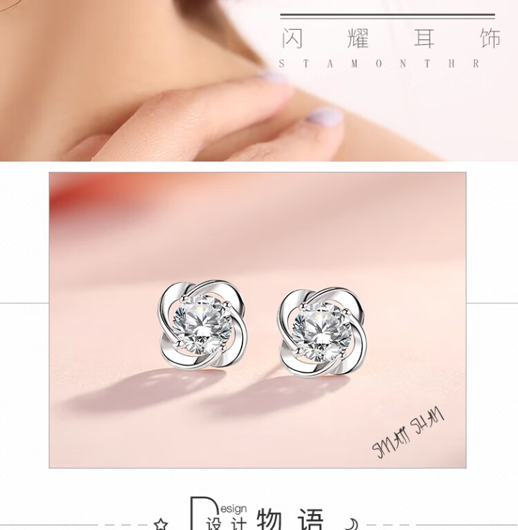 Xinshe 999 sterling silver four-leaf clover earrings for women 2025 new popular light luxury niche design earrings birthday gift 999 pure silver four-leaf clover earrings