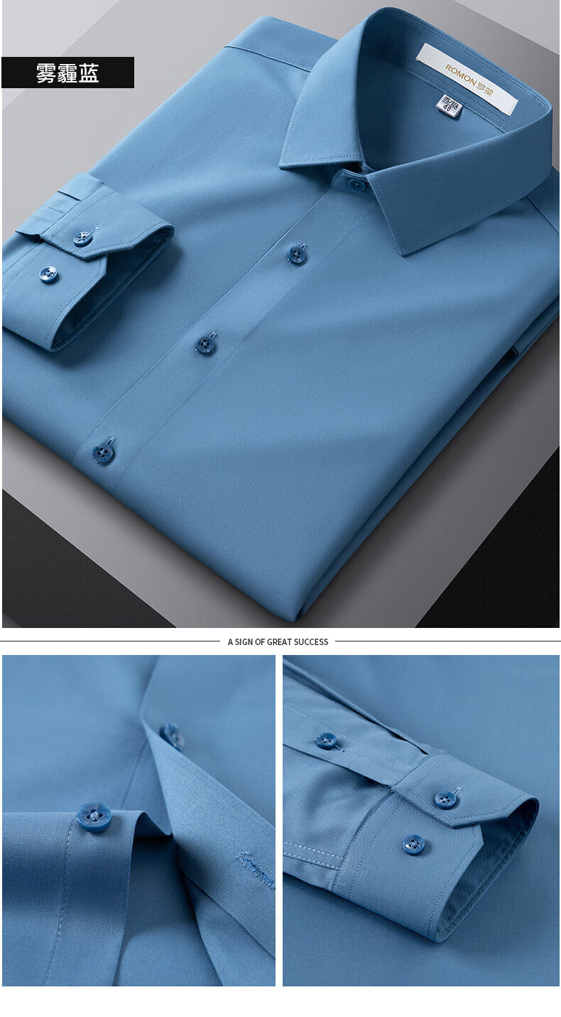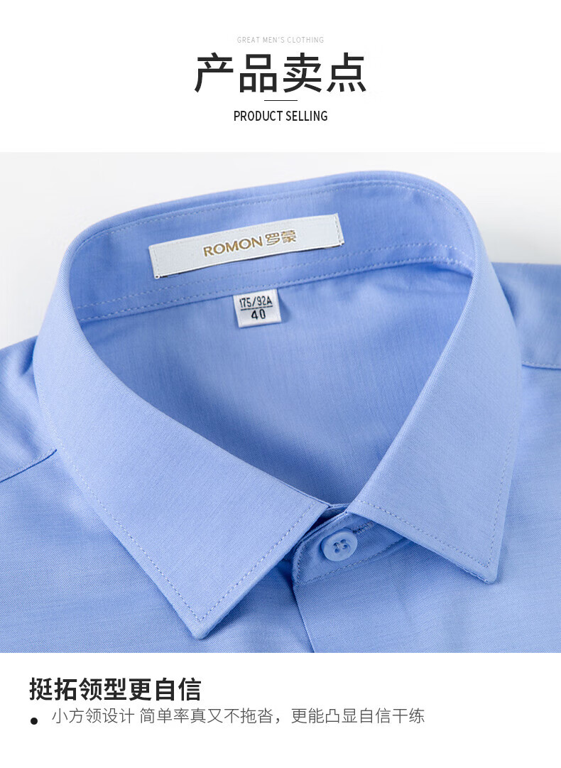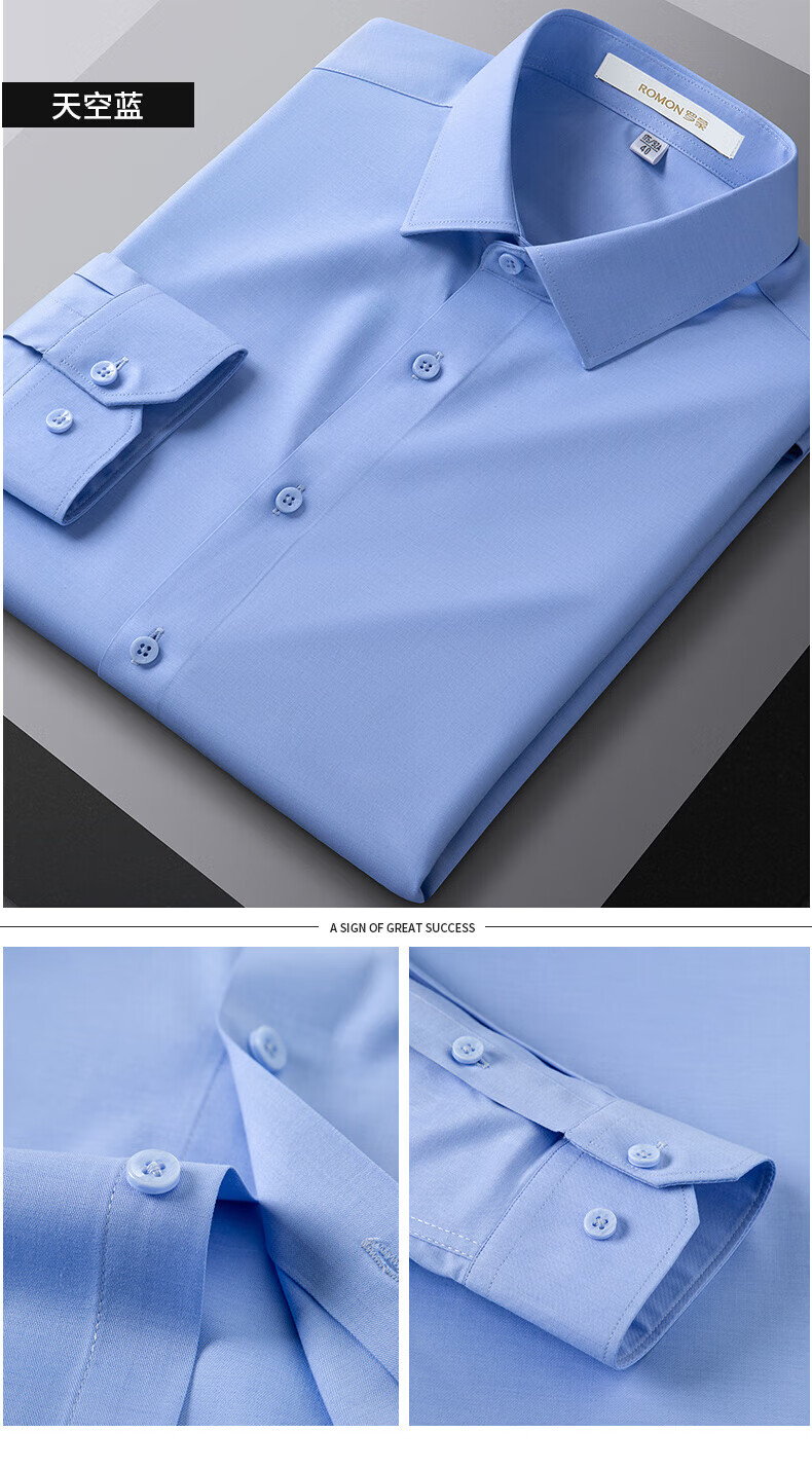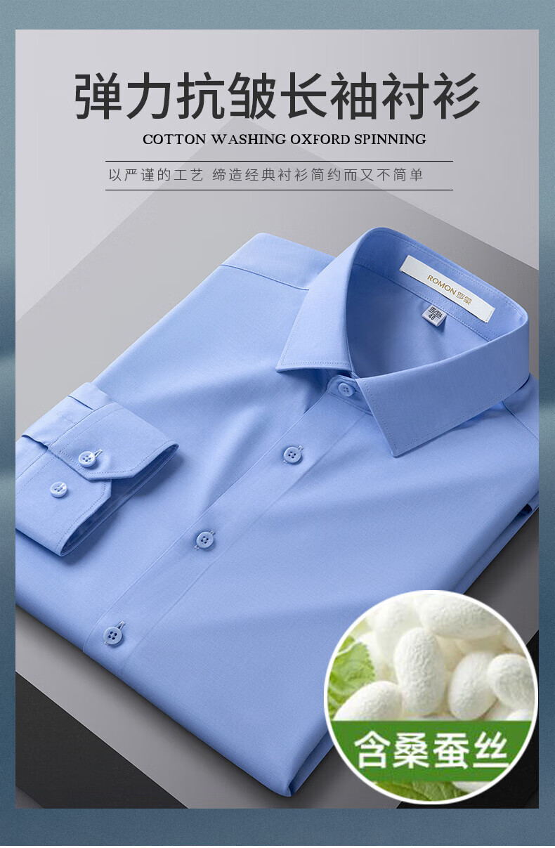 ROMON True Zero Sensation Containing Mulberry Silk No-Iron Shirt Men's Business Casual Professional Workwear Stretch Anti-Wrinkle No-Iron Shirt Size Long Grapefruit-Sky Blue (Zero Sensation Containing Mulberry Silk) 41 Sizes 150-165 Jin Jin is equal to 0.5 kg
