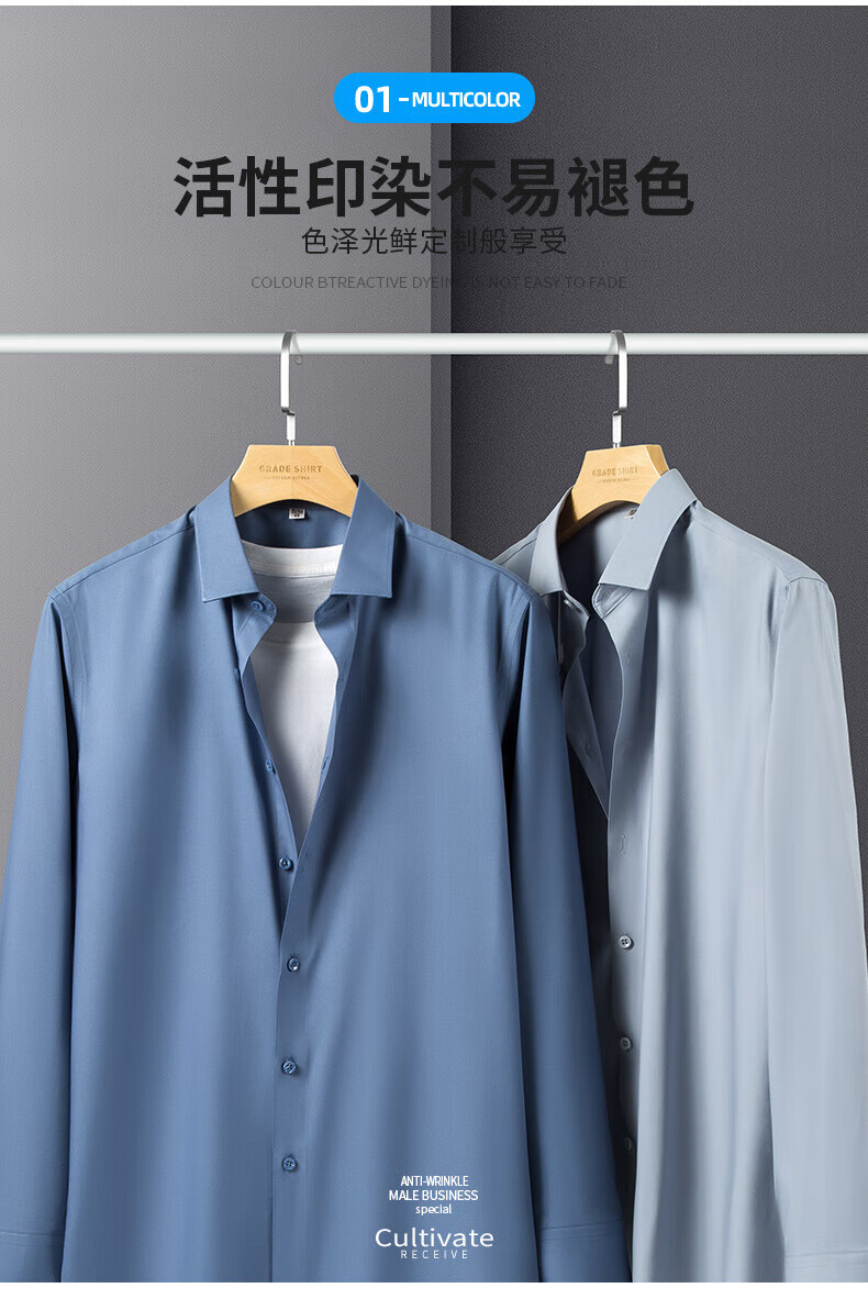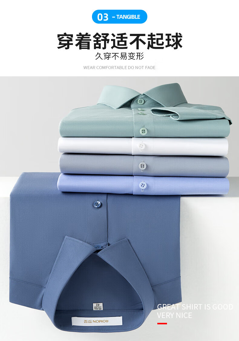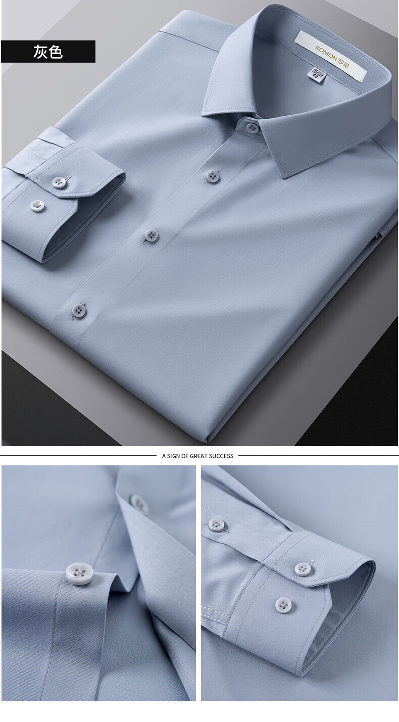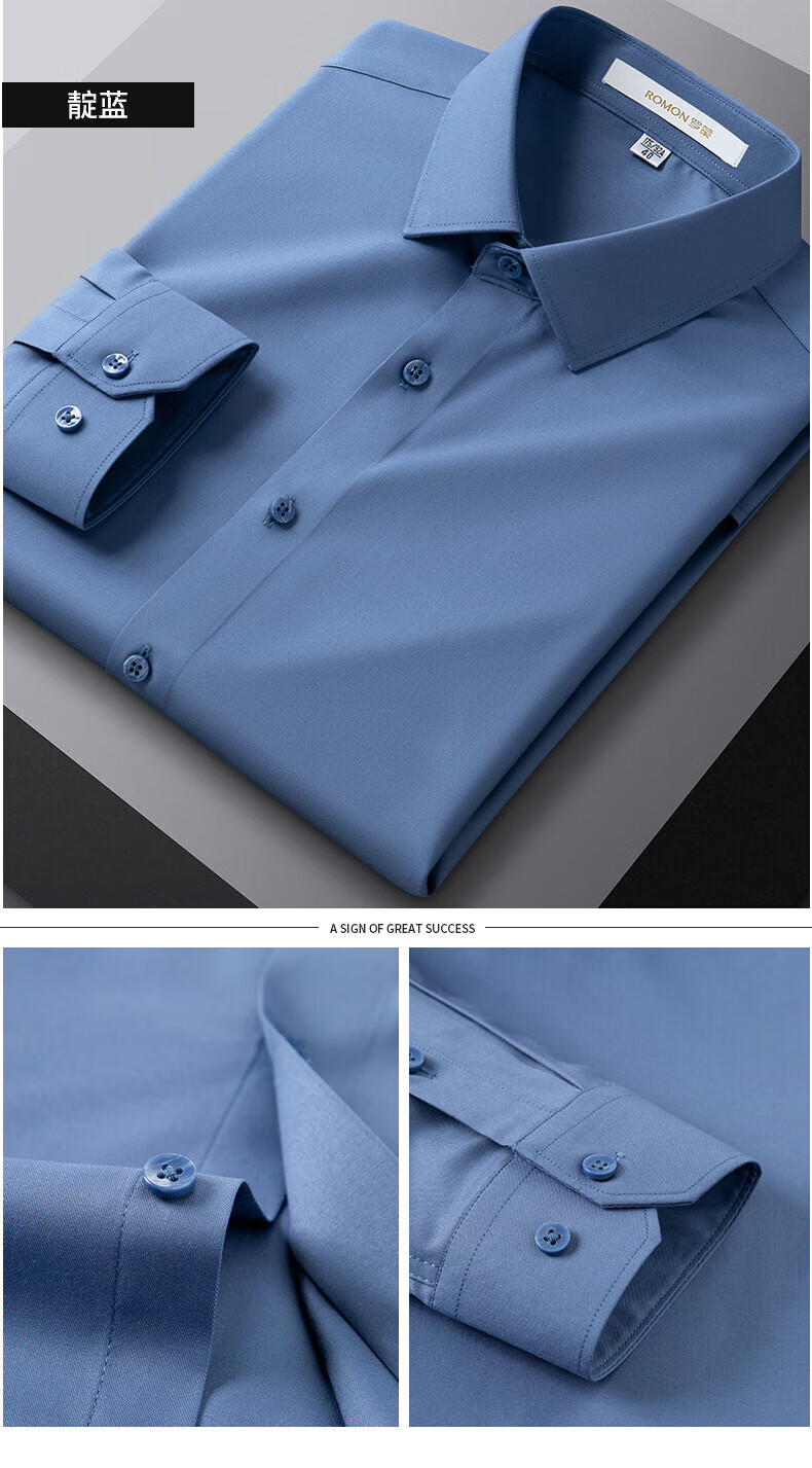 ROMON True Zero Sensation Containing Mulberry Silk No-Iron Shirt Men's Business Casual Professional Workwear Stretch Anti-Wrinkle No-Iron Shirt Size Long Grapefruit-Sky Blue (Zero Sensation Containing Mulberry Silk) 41 Sizes 150-165 Jin Jin is equal to 0.5 kg