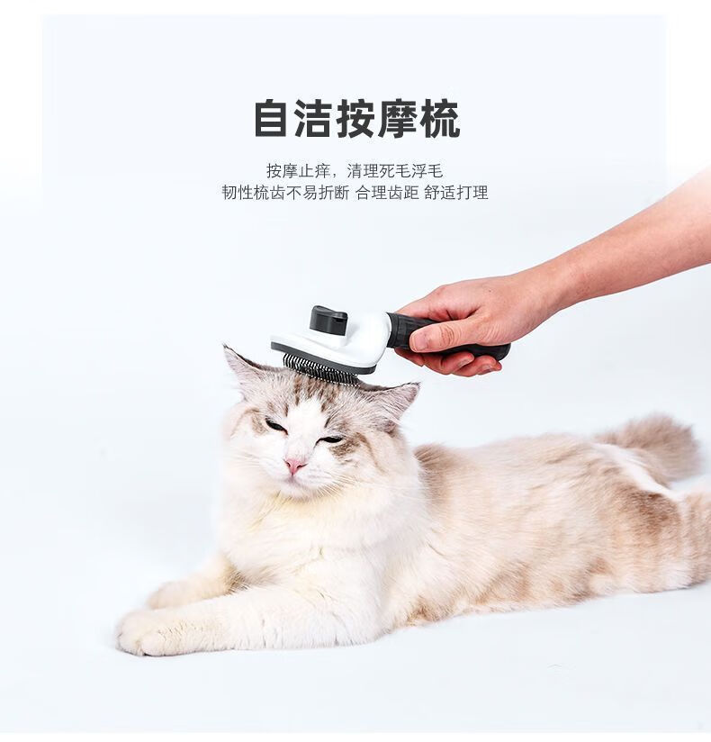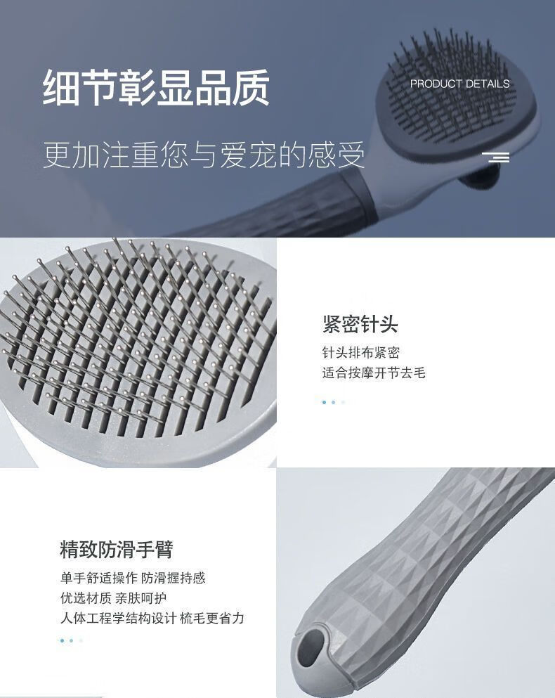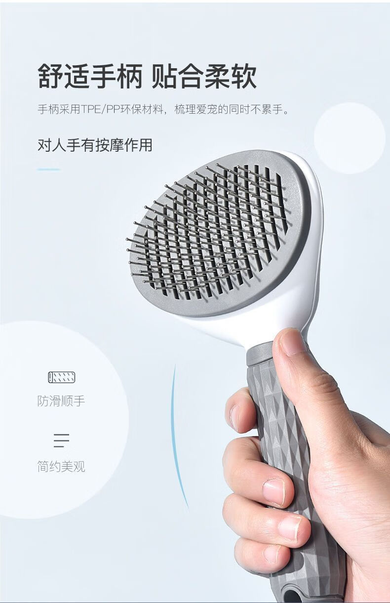 Japanese MUJIE cat comb to remove floating hair, combing brush, cat and dog hair removal artifact, cleaning long-haired pet hair removal supplies, round gray comb + row comb