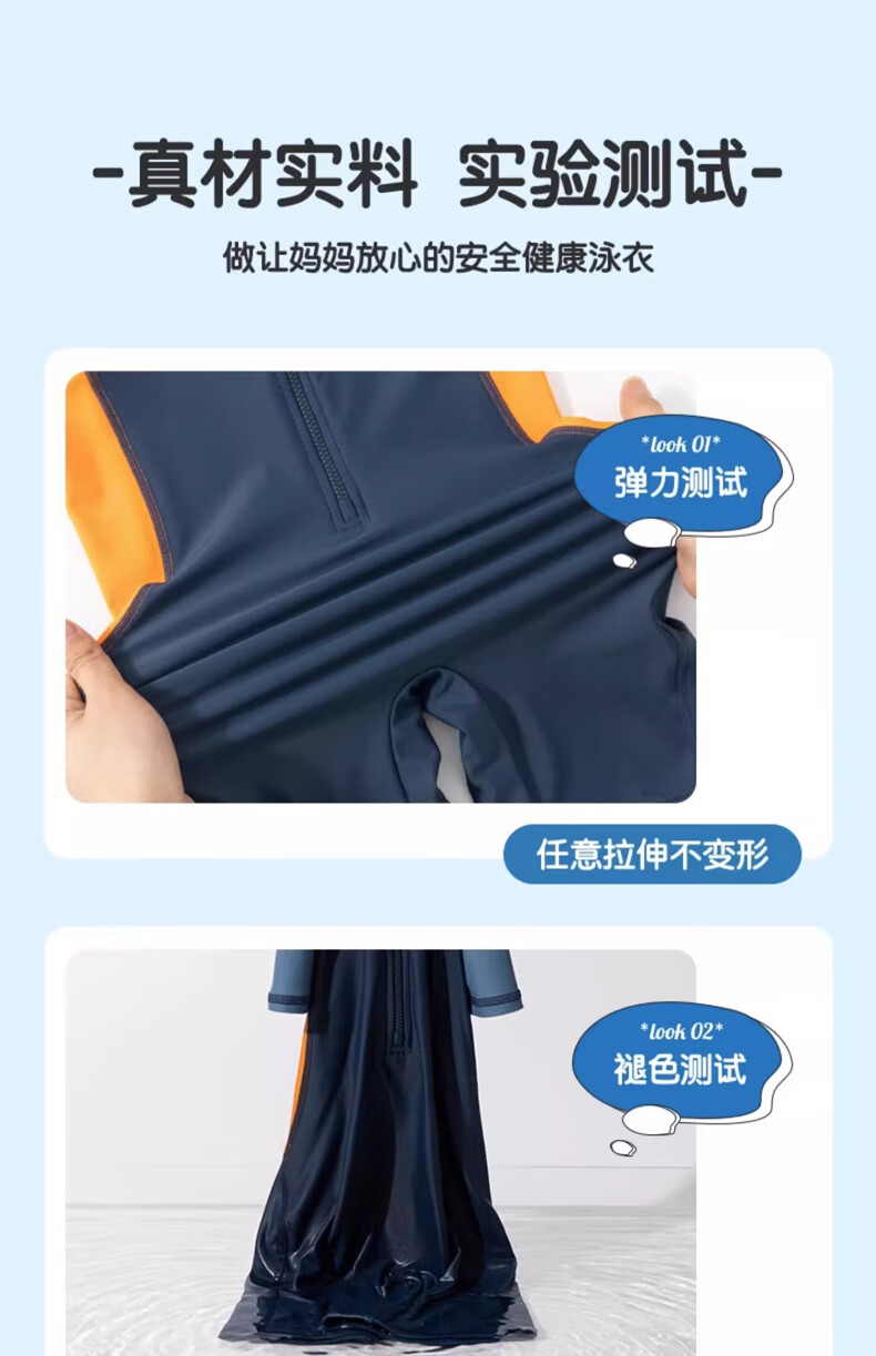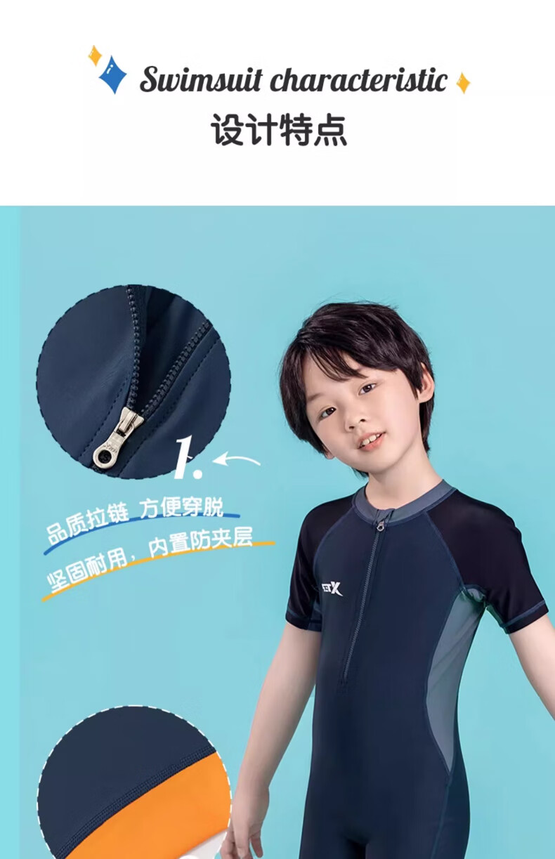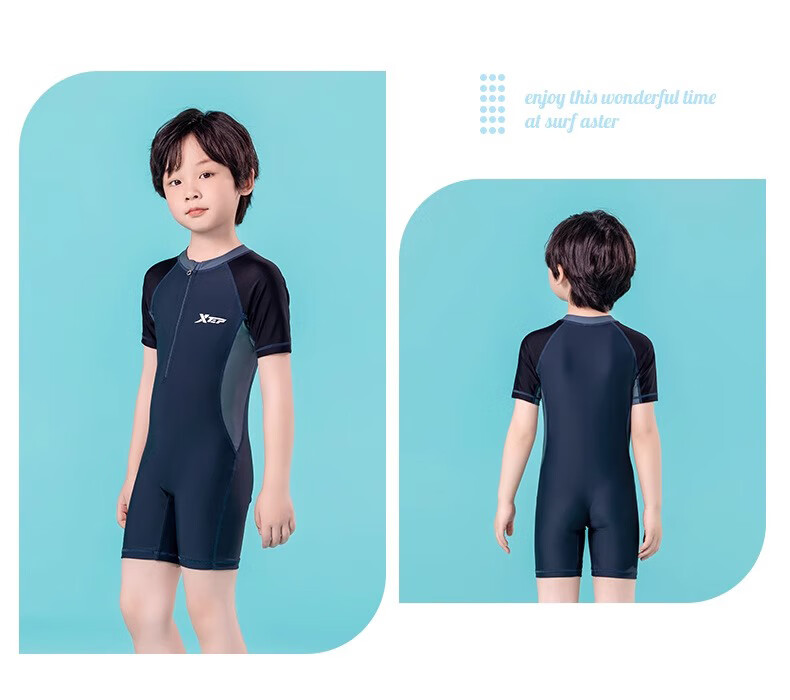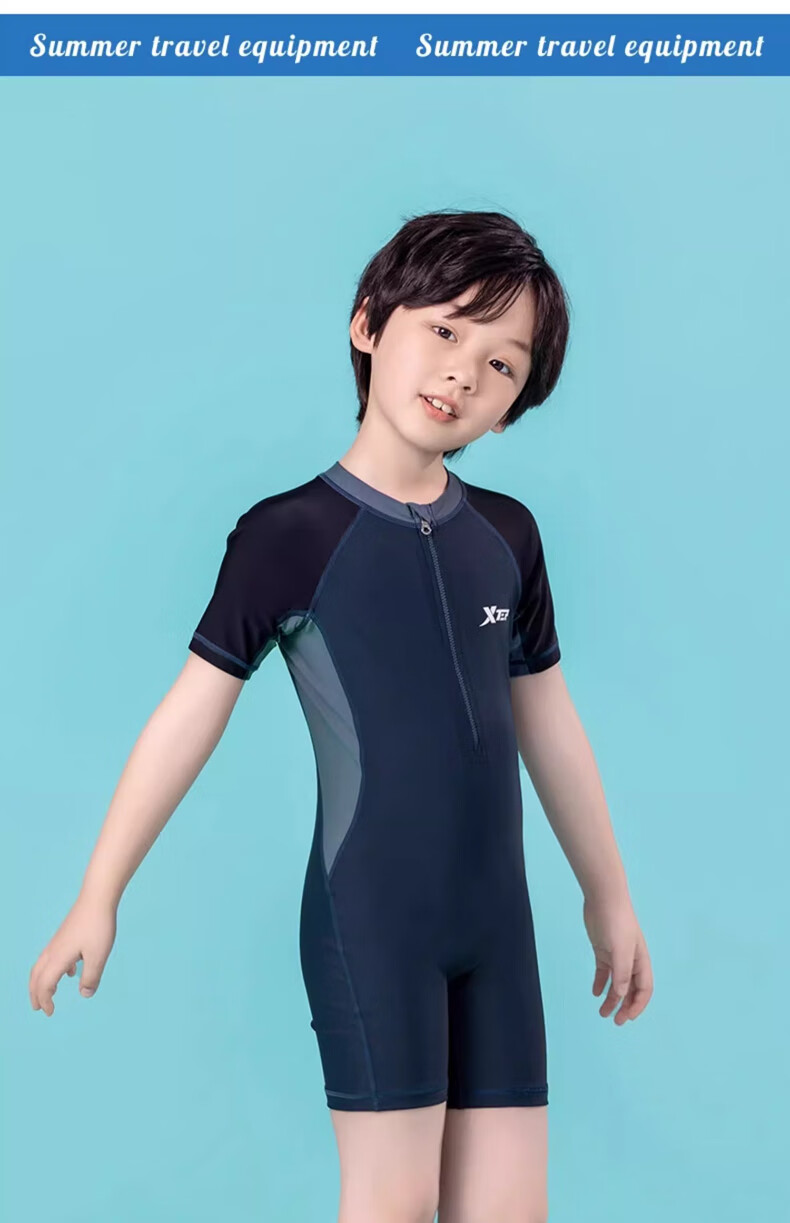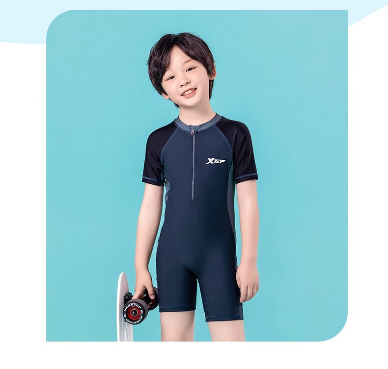 Xtep Children's Swimsuit Boys 2025 New One-piece Sunscreen Baby Swimming Pants Professional Swimming Training Boys Swimwear Gray Blue One-piece Size 125/14 (recommended height 125-135cm)
