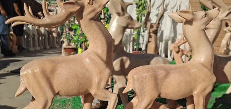 Chaosihui stone animal deer park garden lawn deer marble animal sculpture outdoor sika deer mother and child deer decoration 50 high deer baby