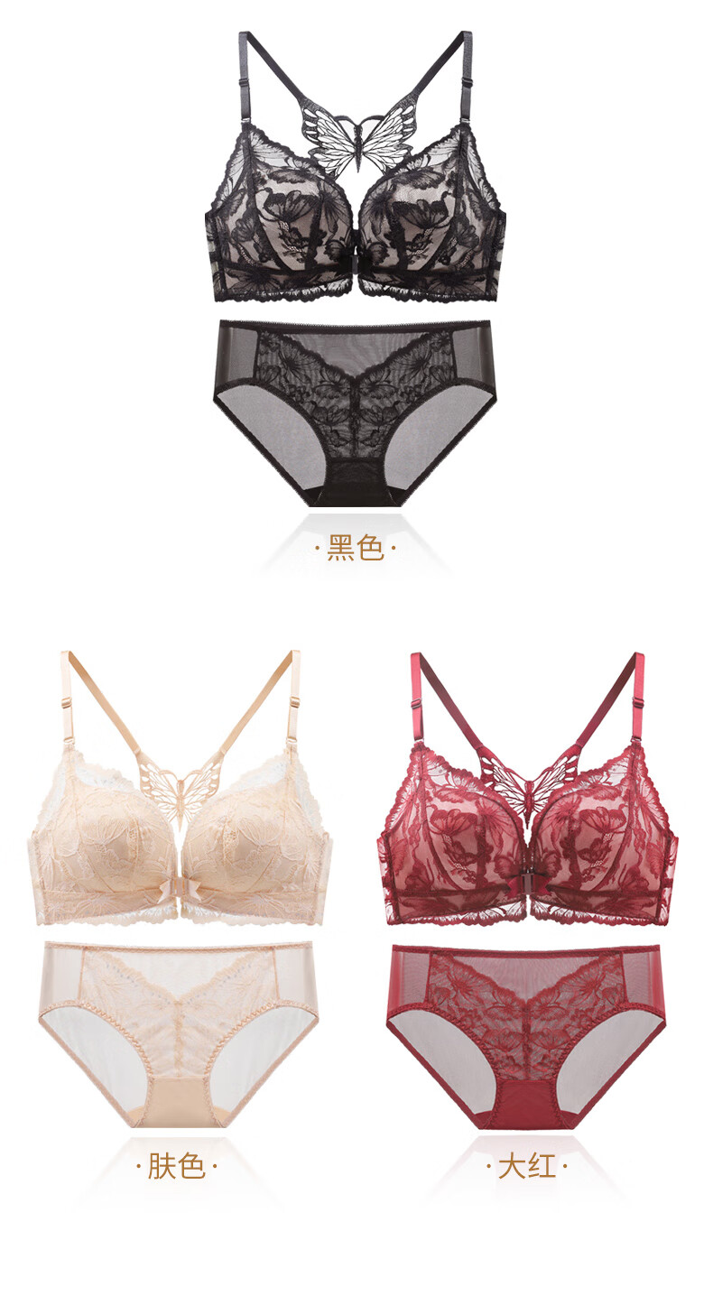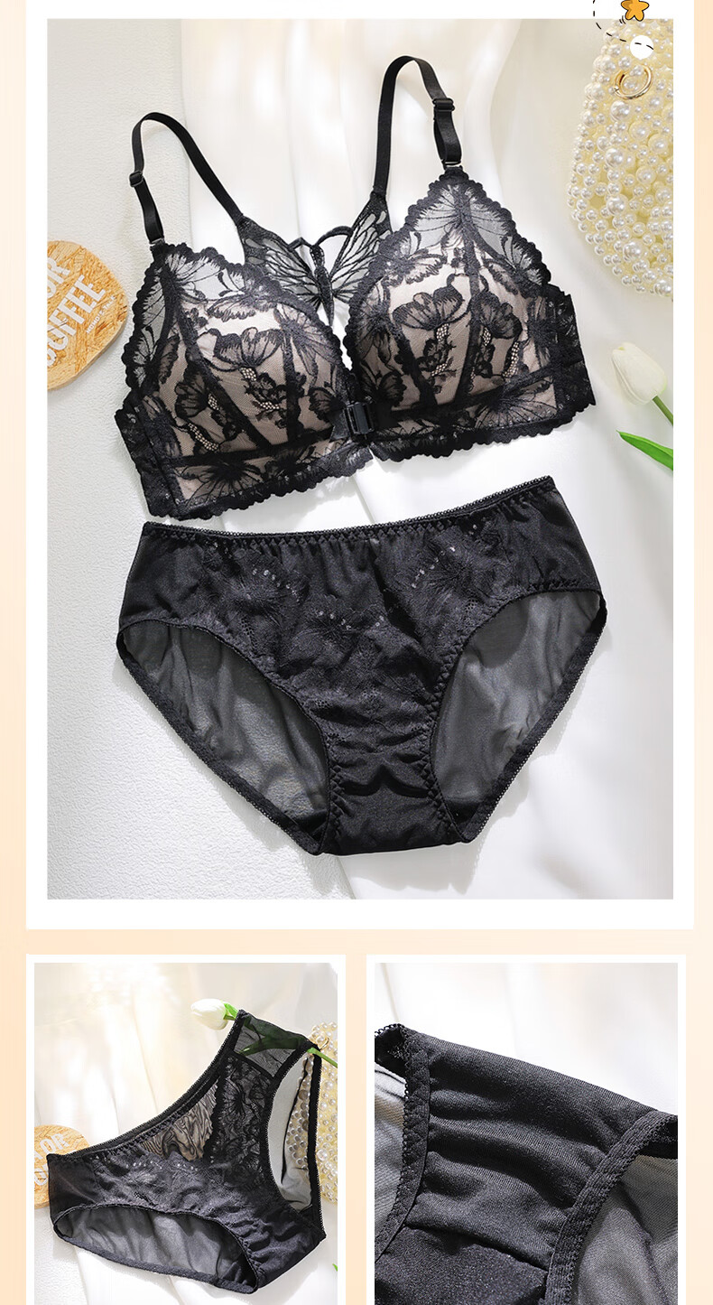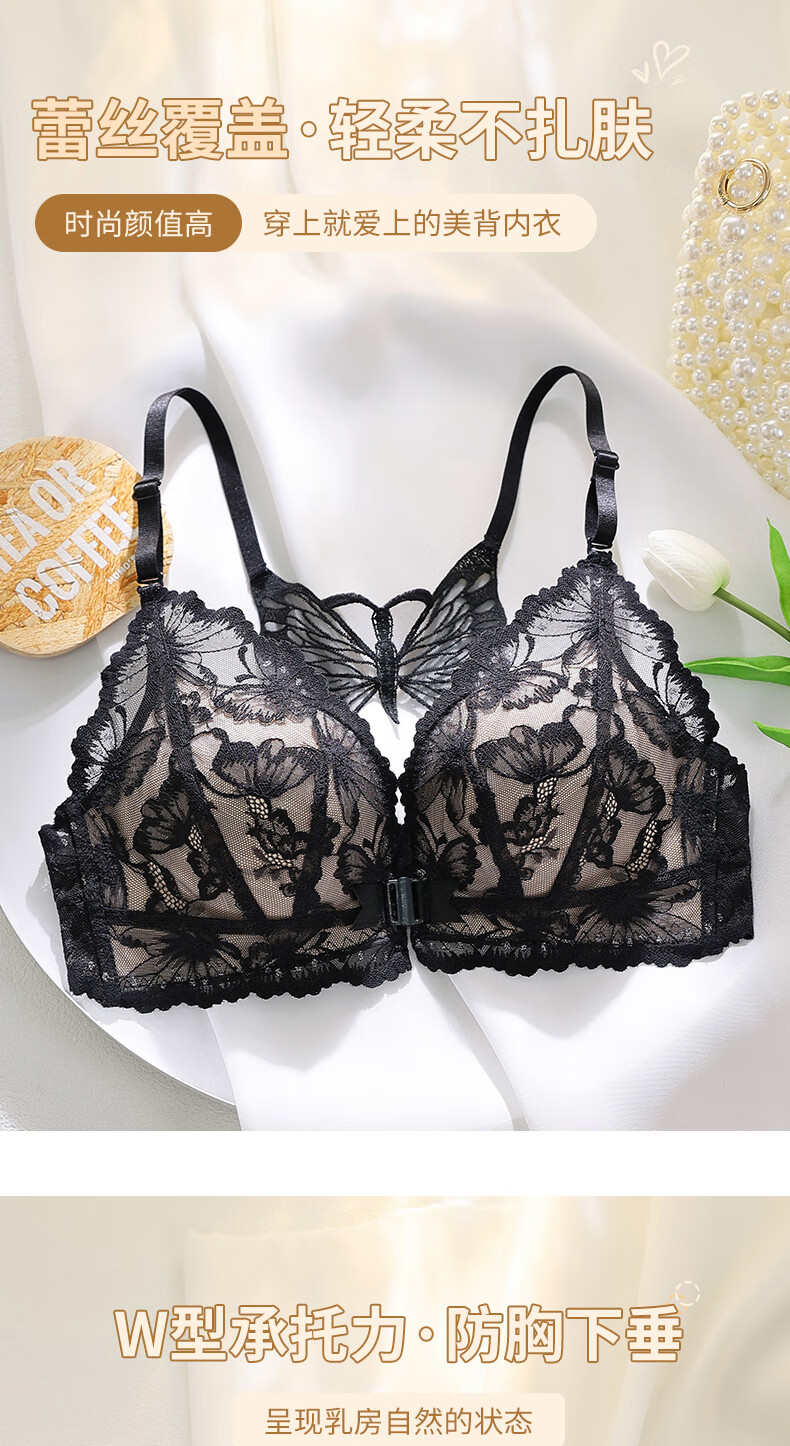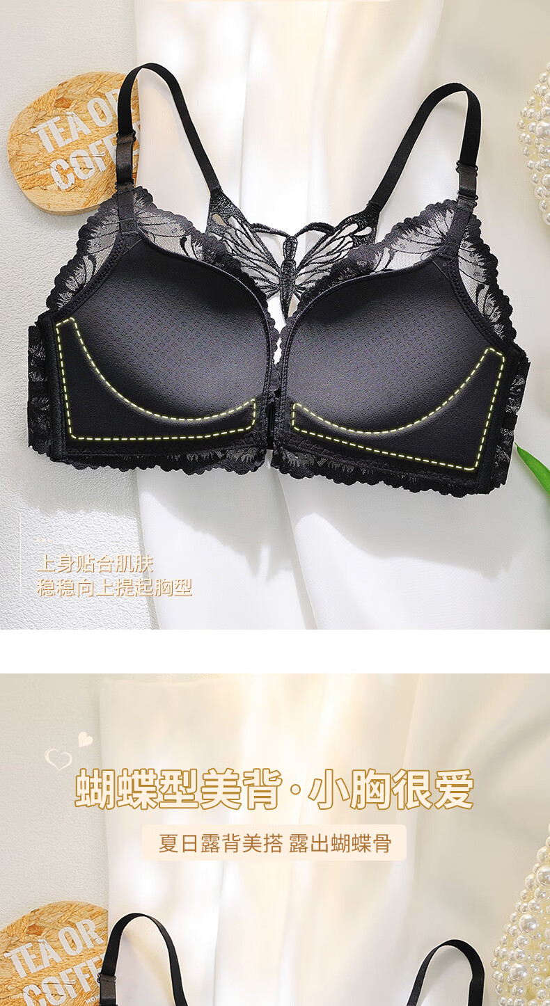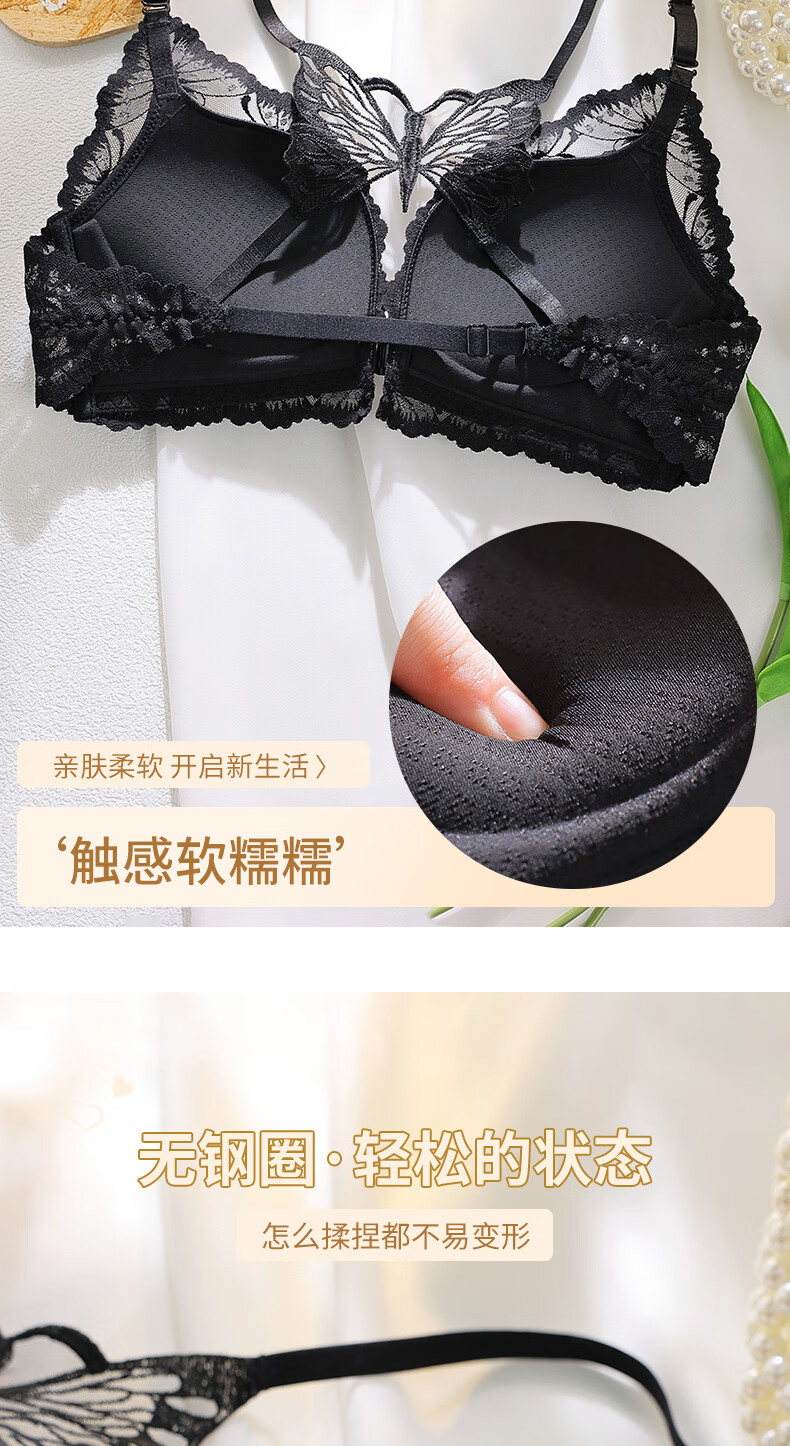 Victoria's Secret Butterfly New Beautiful Back Front Button Underwear Women's Small Breast Push Up Anti-Sagging Lace Wireless Bra Sexy Set Skin Color Single Piece 34/75B