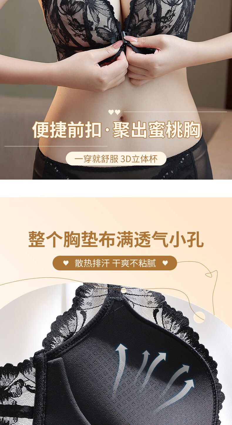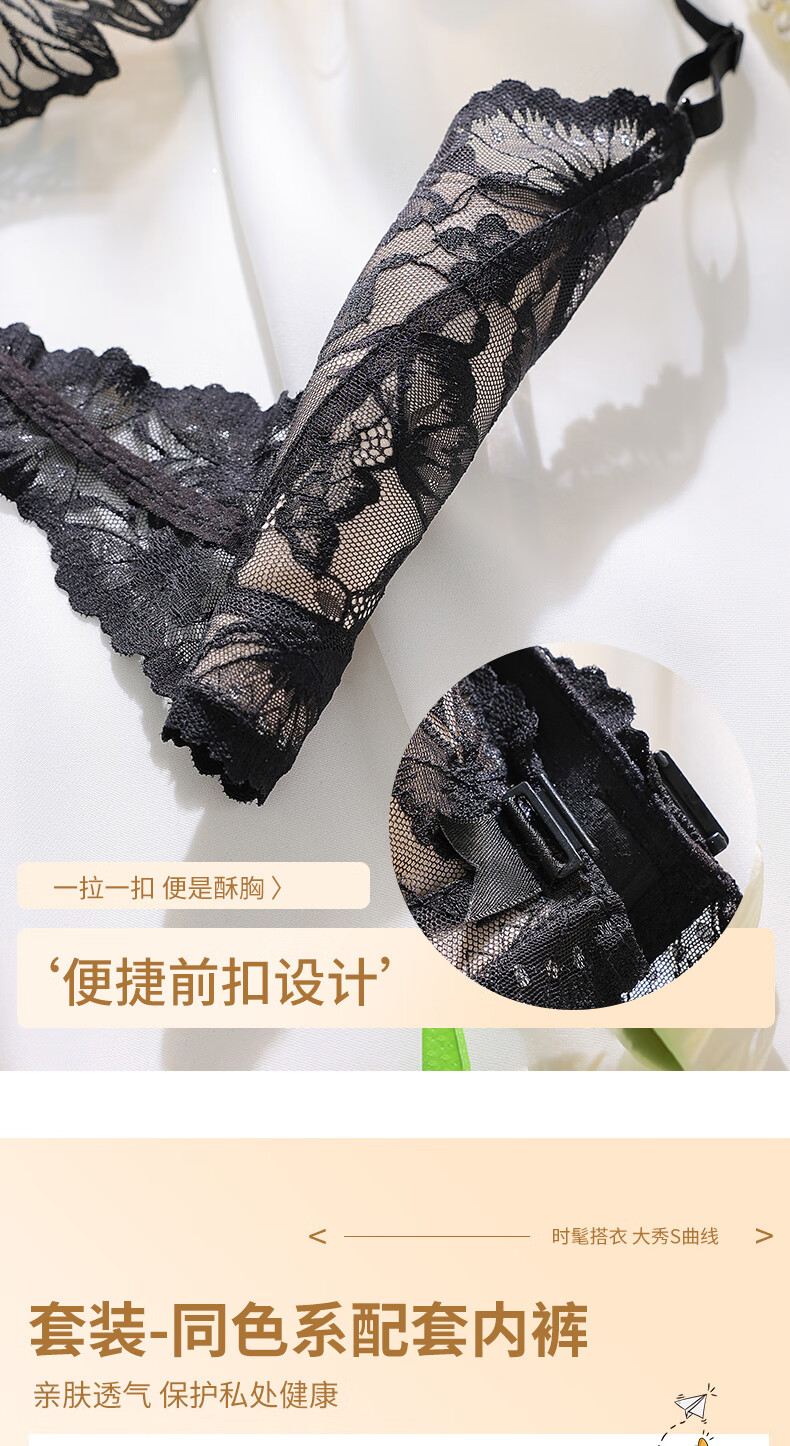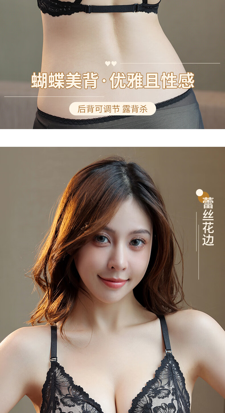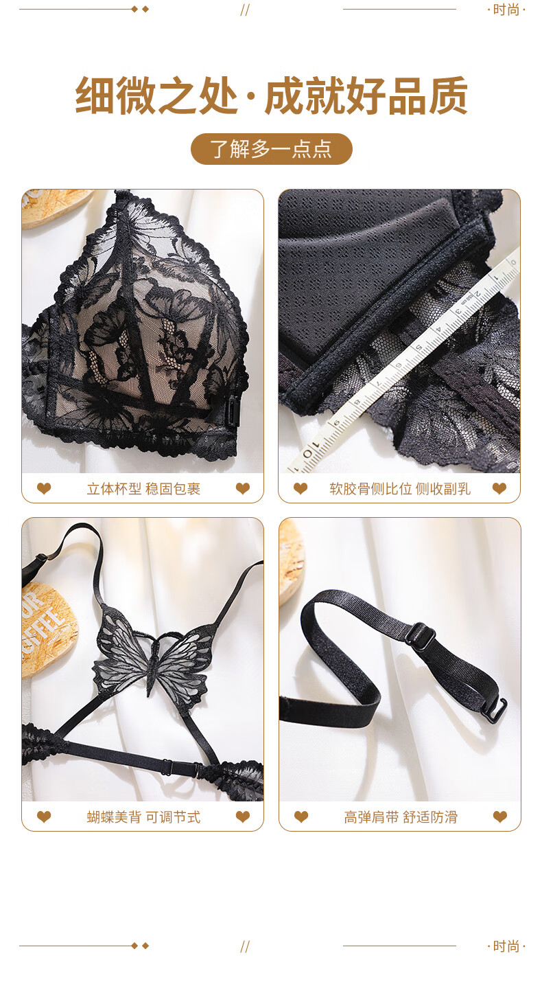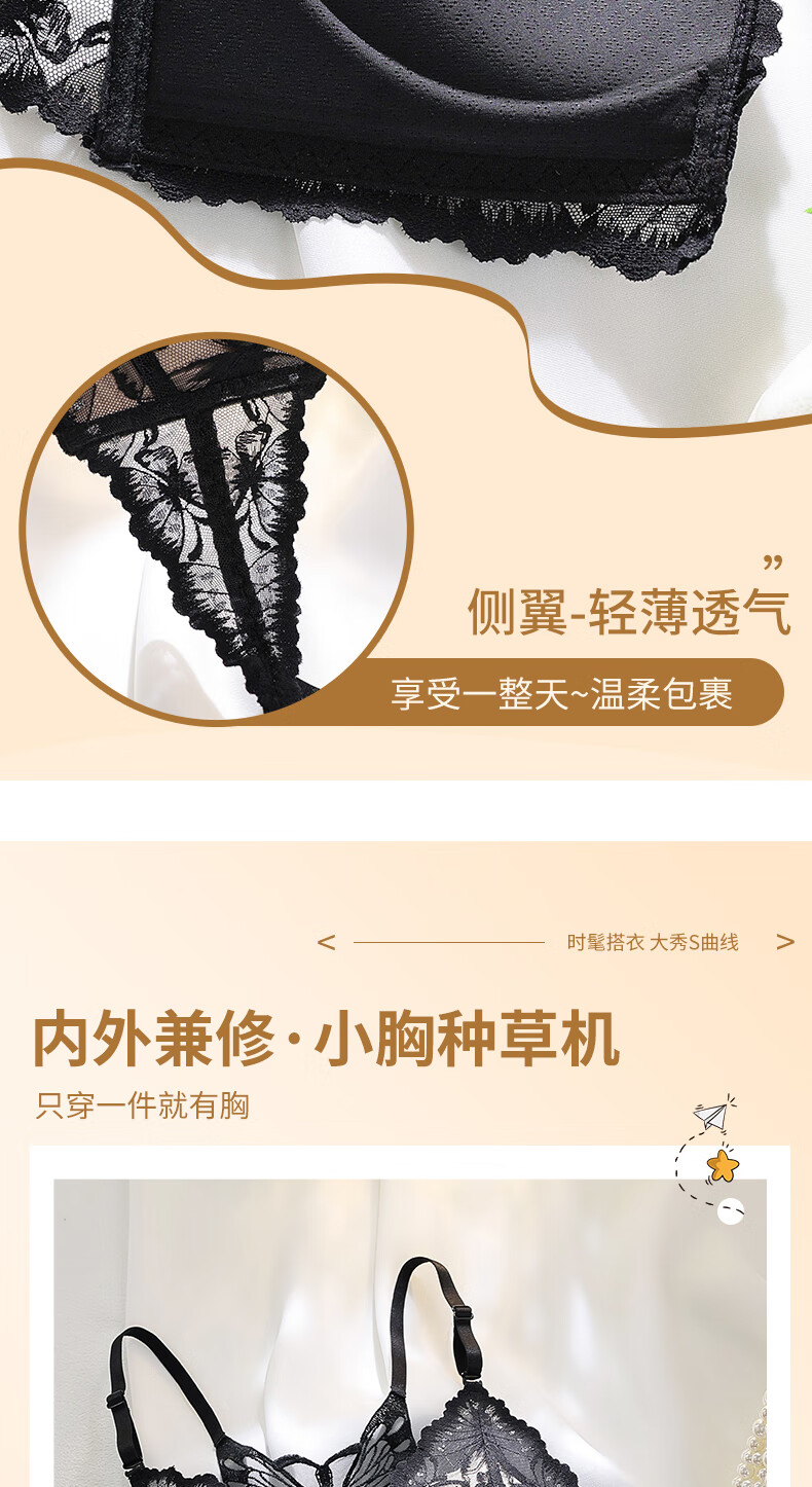 Victoria's Secret Butterfly New Beautiful Back Front Button Underwear Women's Small Breast Push Up Anti-Sagging Lace Wireless Bra Sexy Set Skin Color Single Piece 34/75B