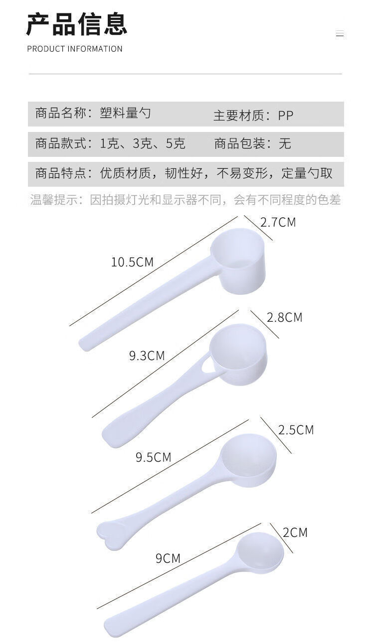 Zi Sha creative plastic measuring spoon notoginseng powder medicine powder spoon 1g2g3g5g10g15g/g milk powder spoon plastic spoon 1g 2 pieces