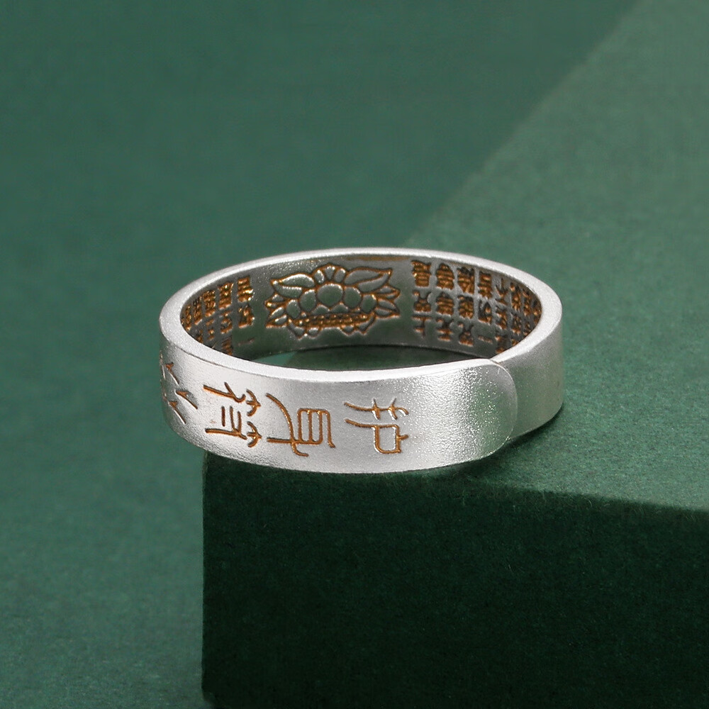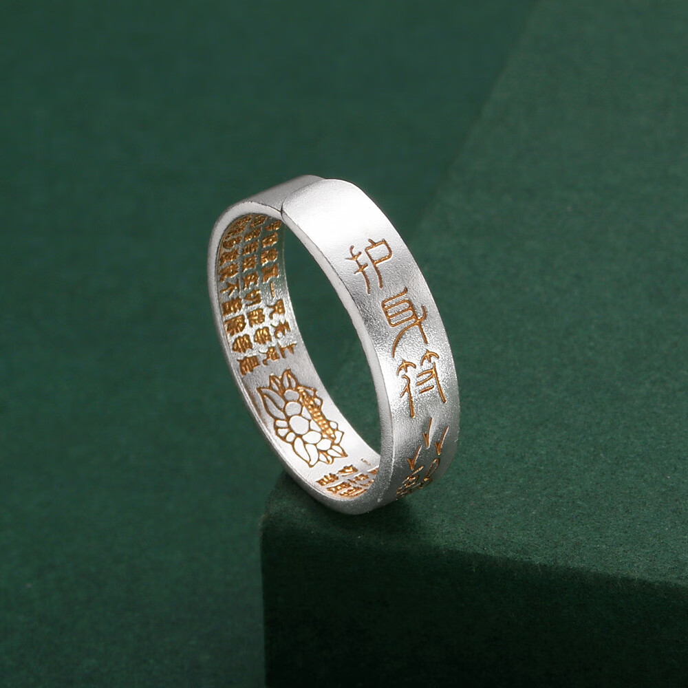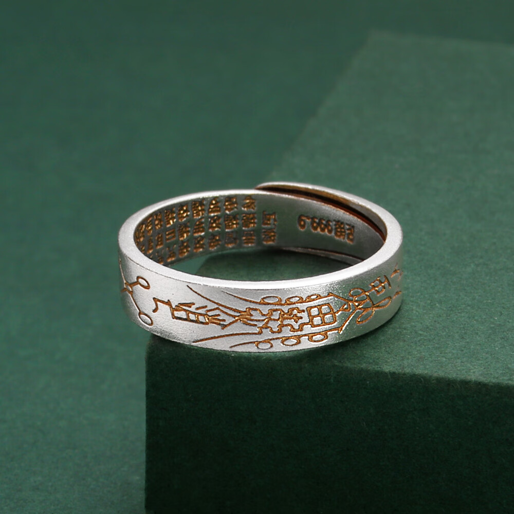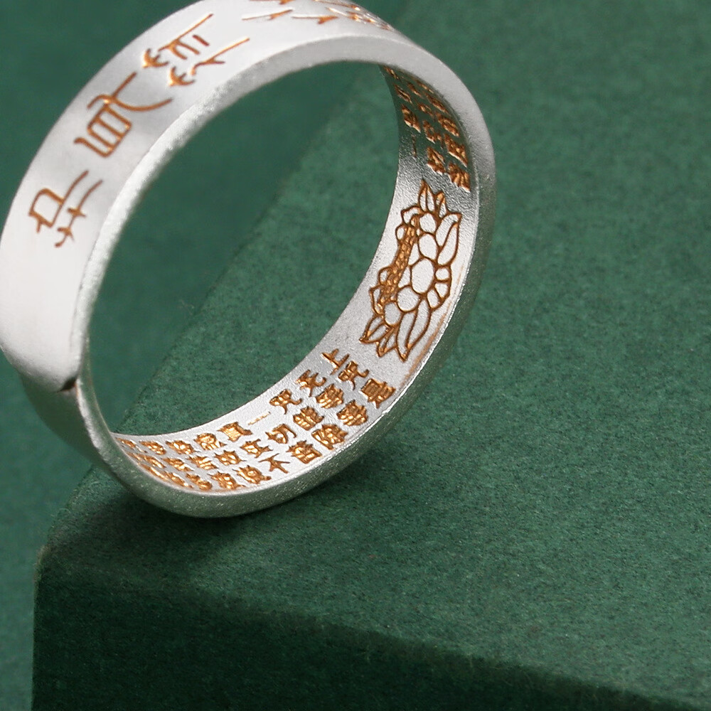 Zhixun 9999 pure silver Bagua amulet painted gold ring for men and women pure silver index finger ring birthday gift 9999 pure silver weighs about 3.6g