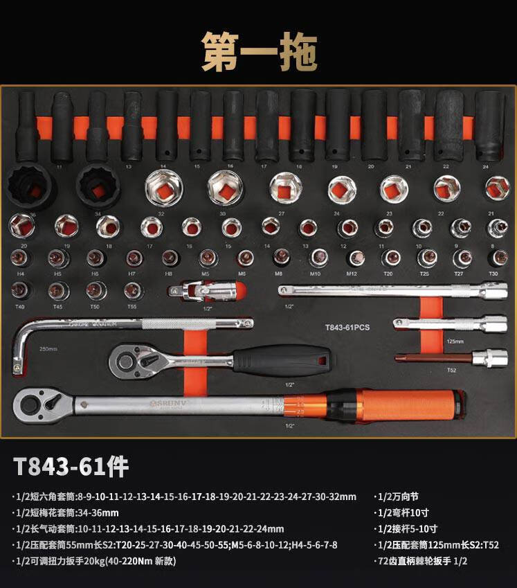 Ni Zhier customized auto repair tool set combination industrial-grade multi-layer mobile drawer-type toolbox Xinrui Heavy Industry New Energy 68 pieces + 4 layers gray tools