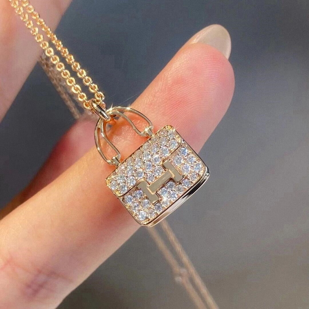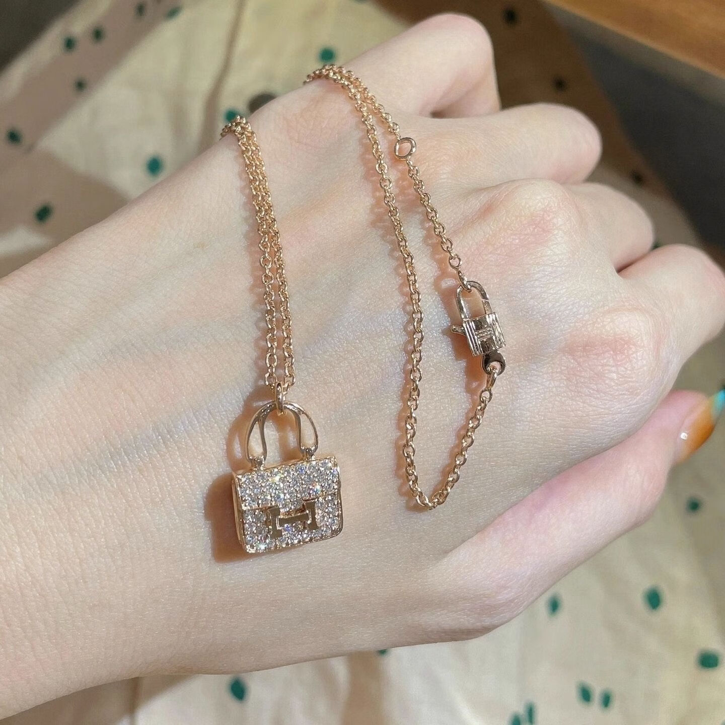 Sen uses 18K rose gold H Kang Kang bag necklace for women, diamond color gold pendant, clavicle chain, Valentine's Day gift for girls, second generation H bag rose gold