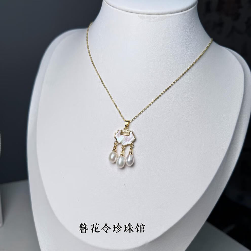 DRJEFUN Hairpin Pearl Museum Pearl Safety Lock Pendant Necklace Natural Freshwater Pearl Necklace 1 White Necklace