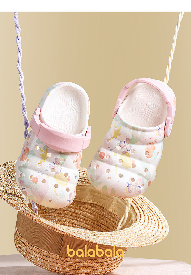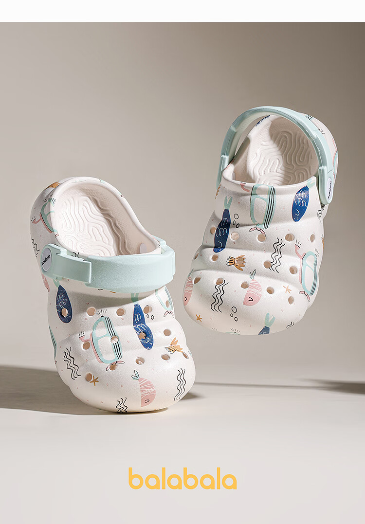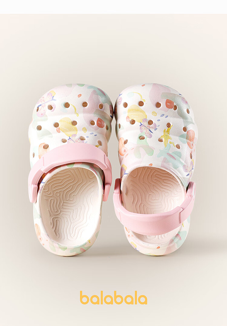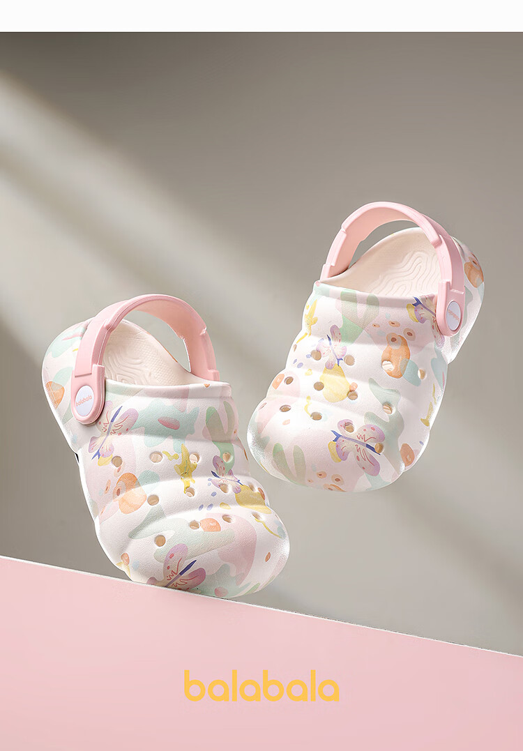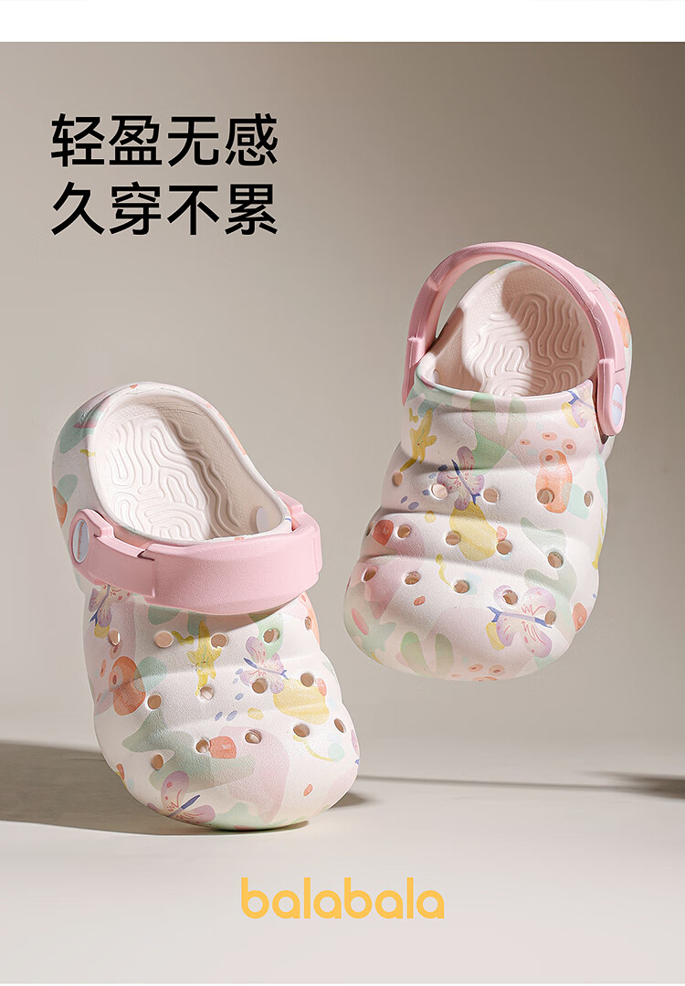 Balabala Children's Crocs Lightweight Anti-Slip Sandals Boys and Girls Shoes 2025 Summer New Trend White Flower Tone 26