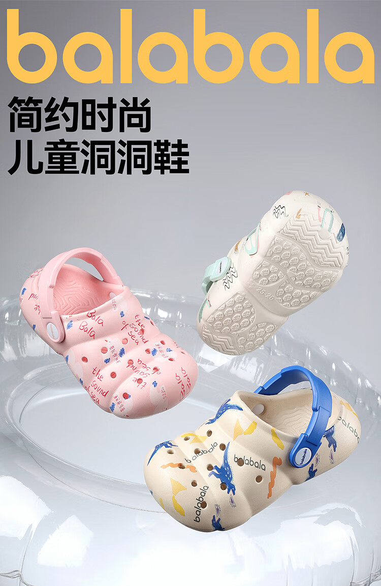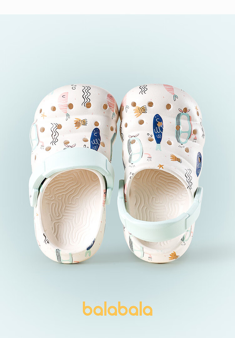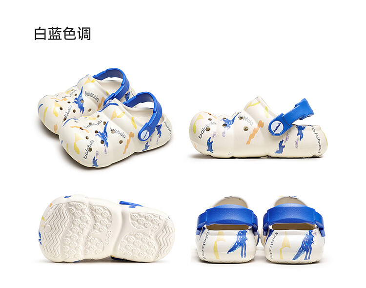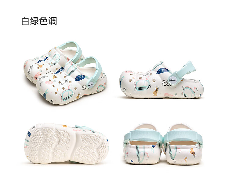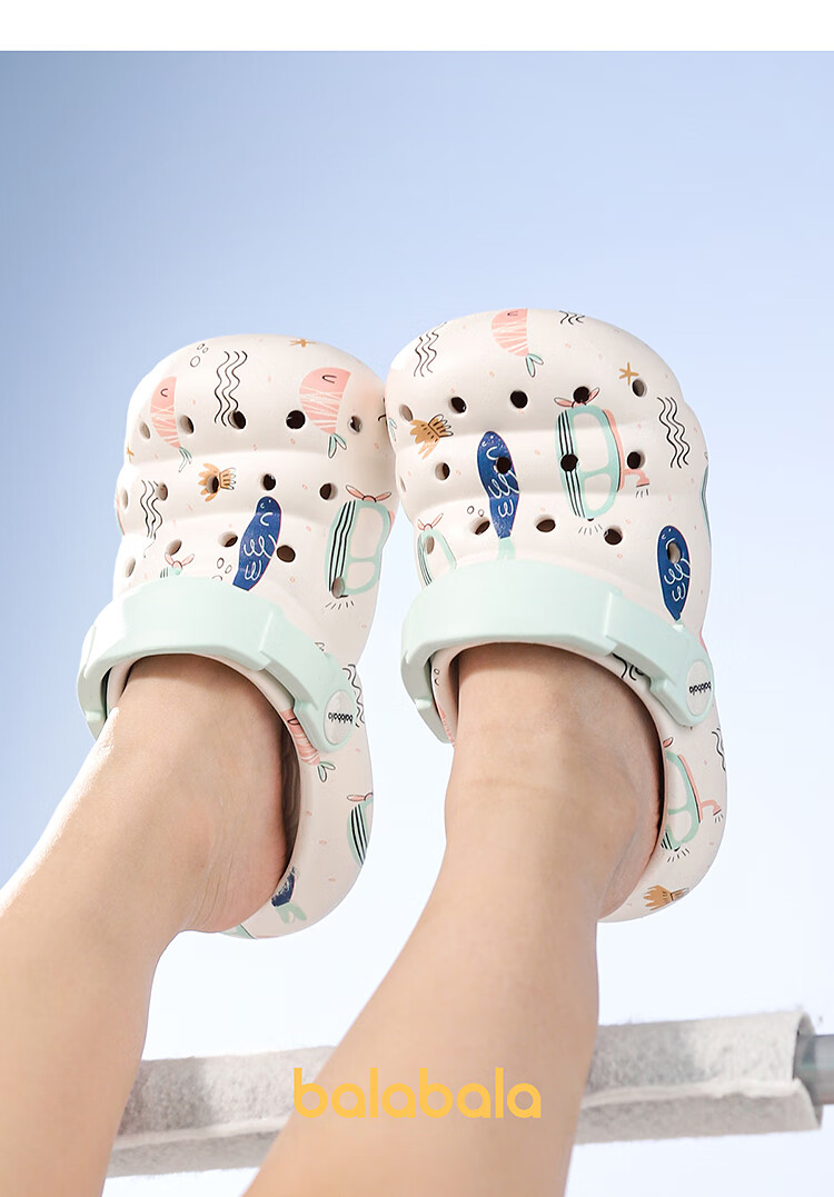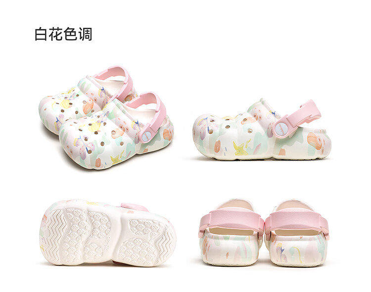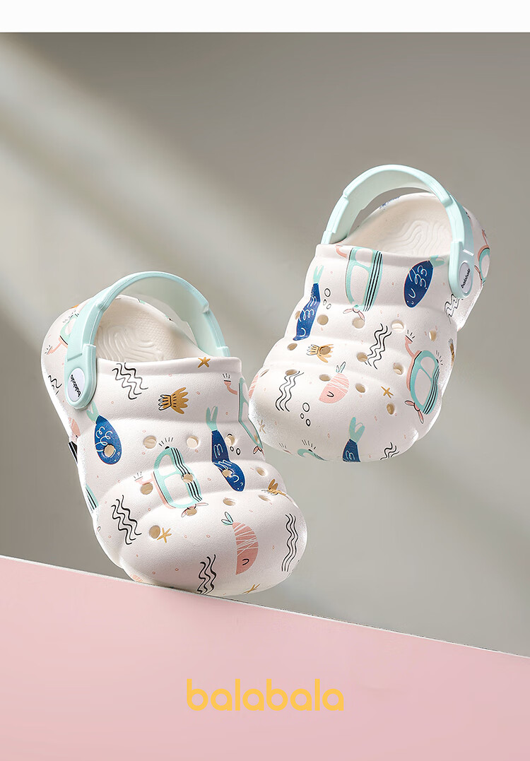 Balabala Children's Crocs Lightweight Anti-Slip Sandals Boys and Girls Shoes 2025 Summer New Trend White Flower Tone 26