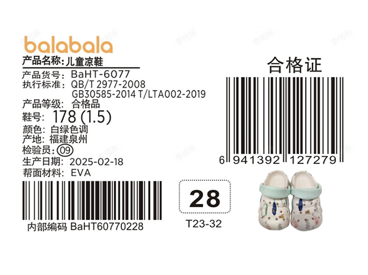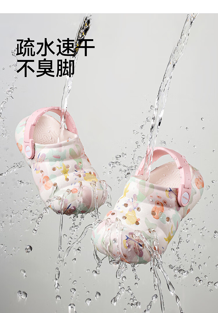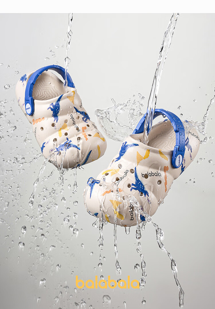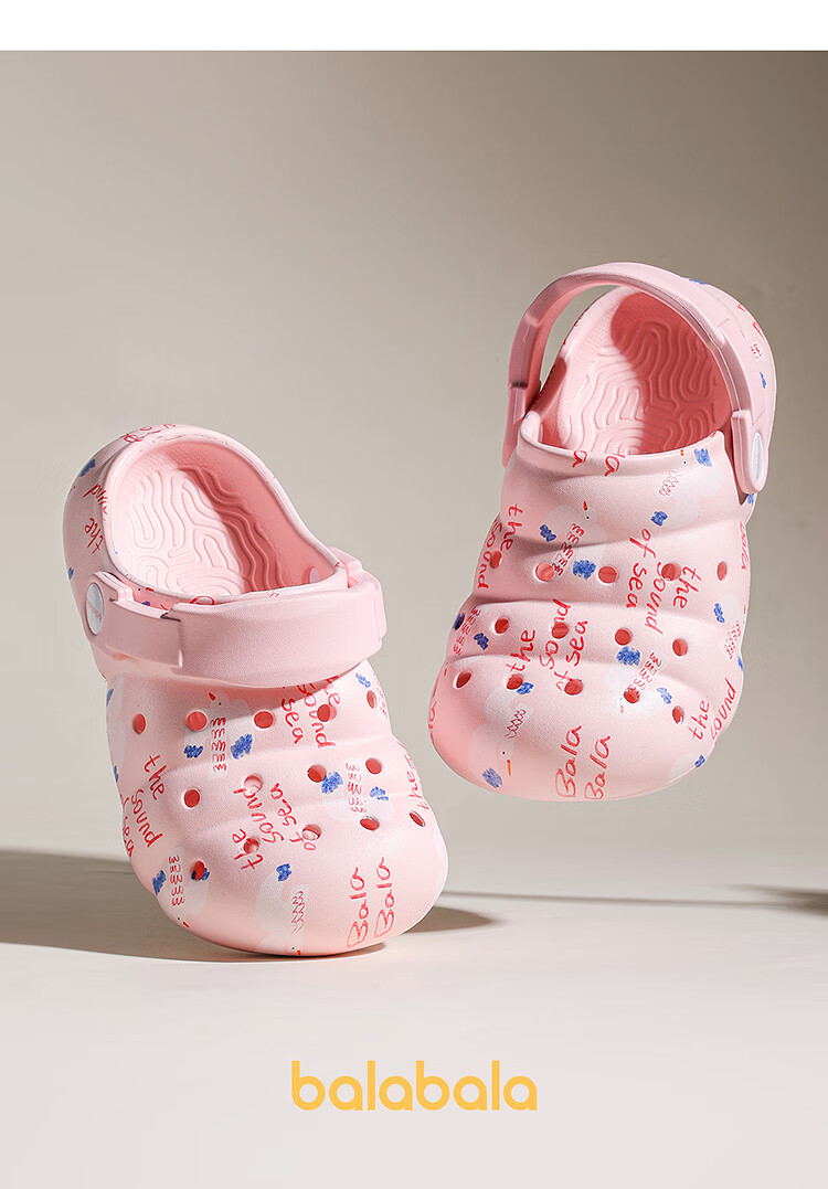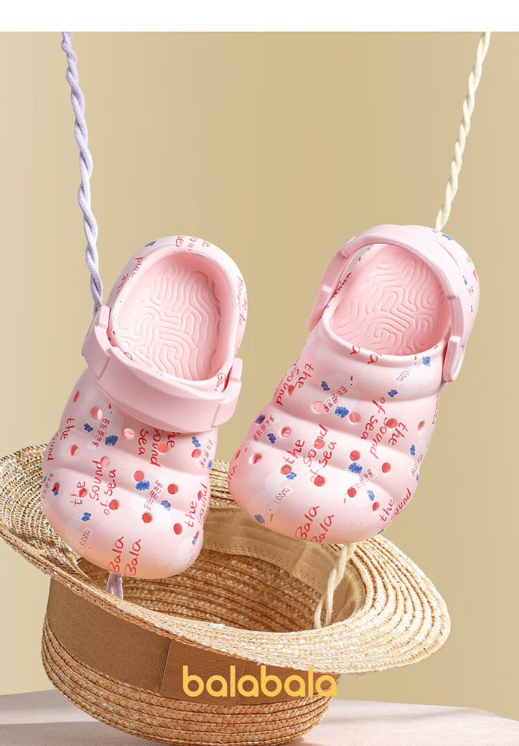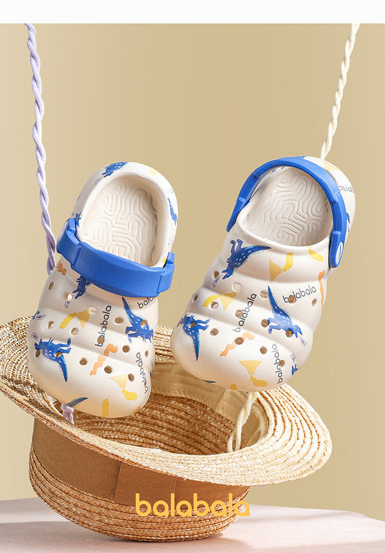 Balabala Children's Crocs Lightweight Anti-Slip Sandals Boys and Girls Shoes 2025 Summer New Trend White Flower Tone 26