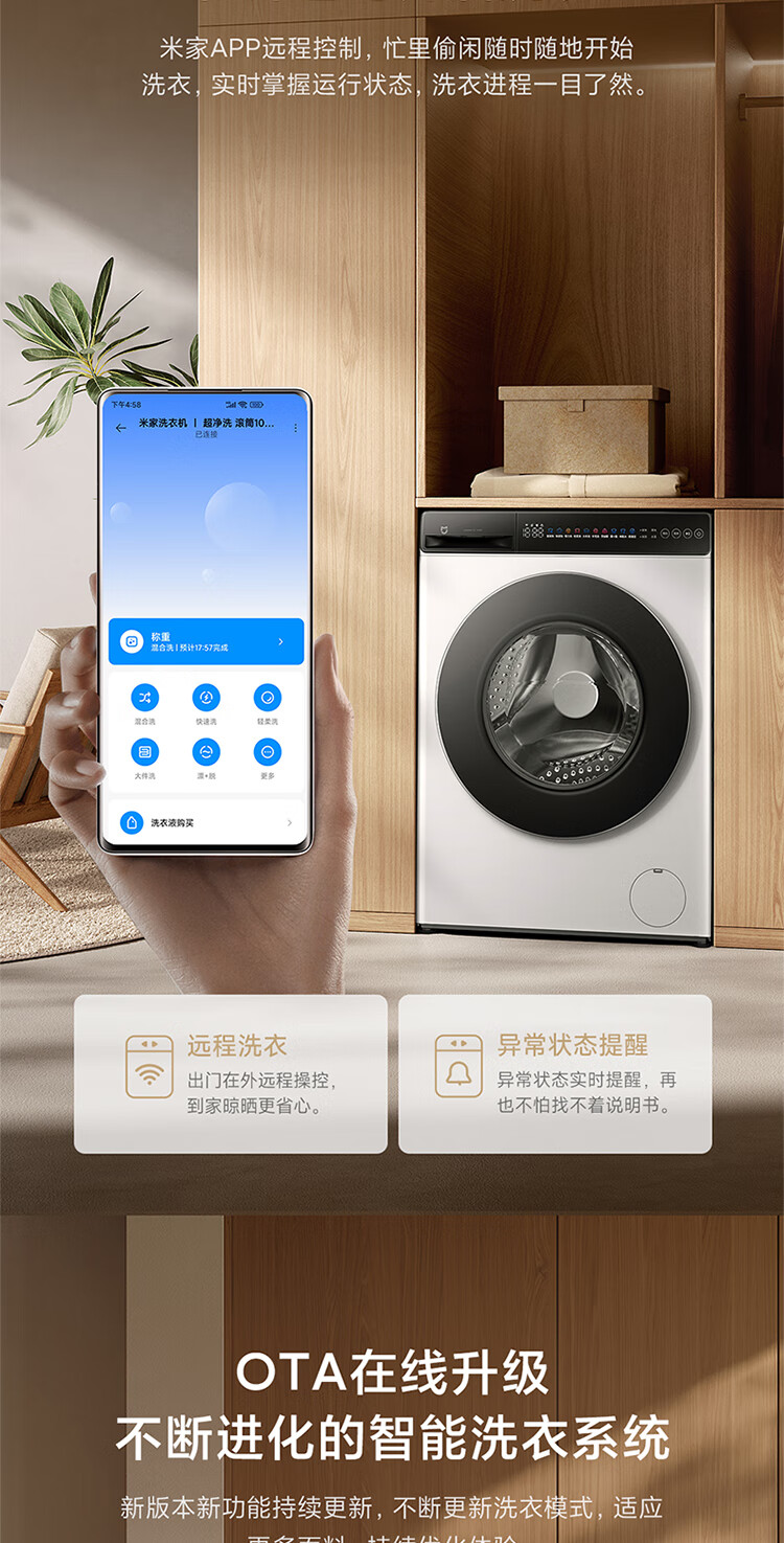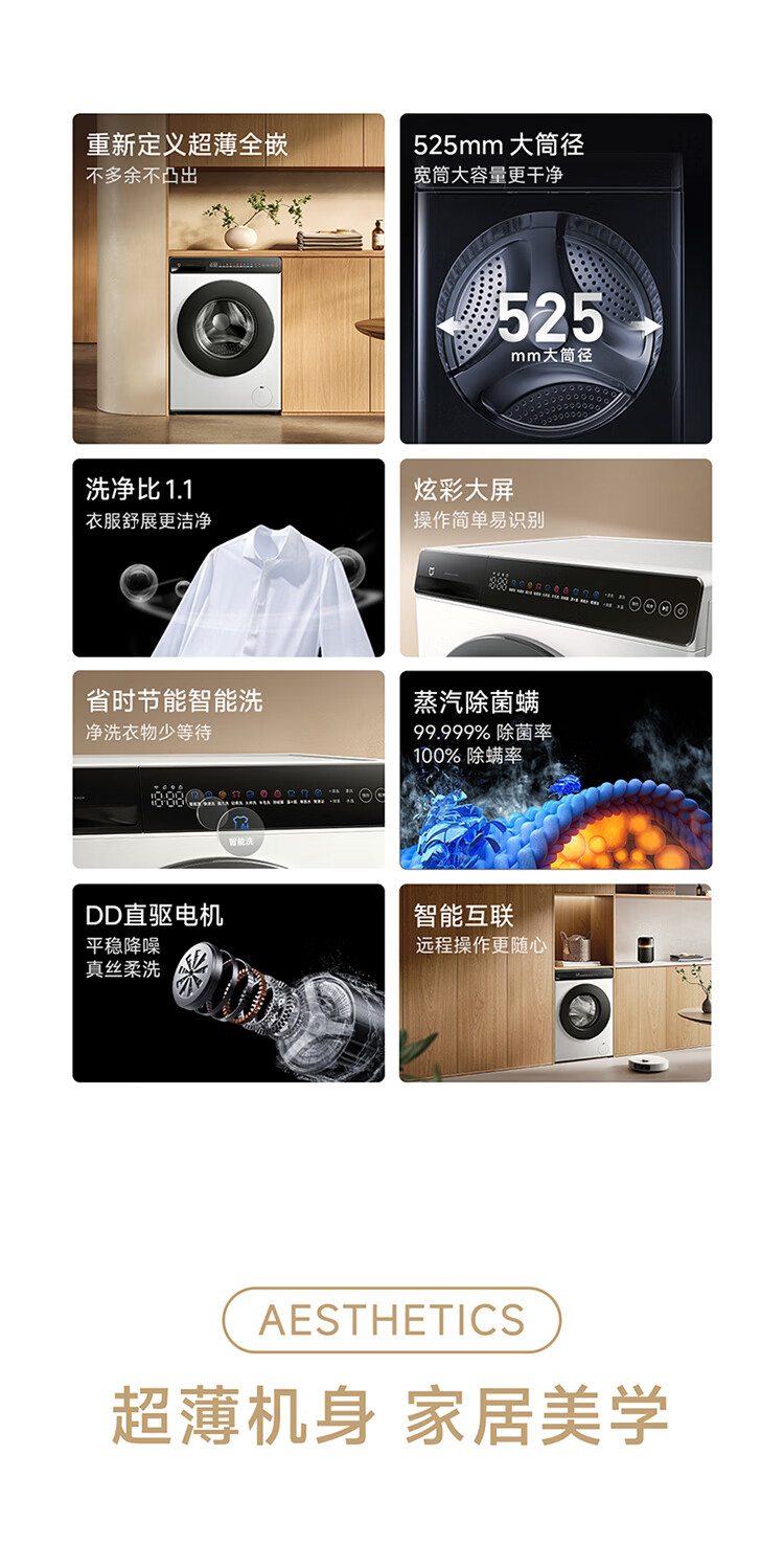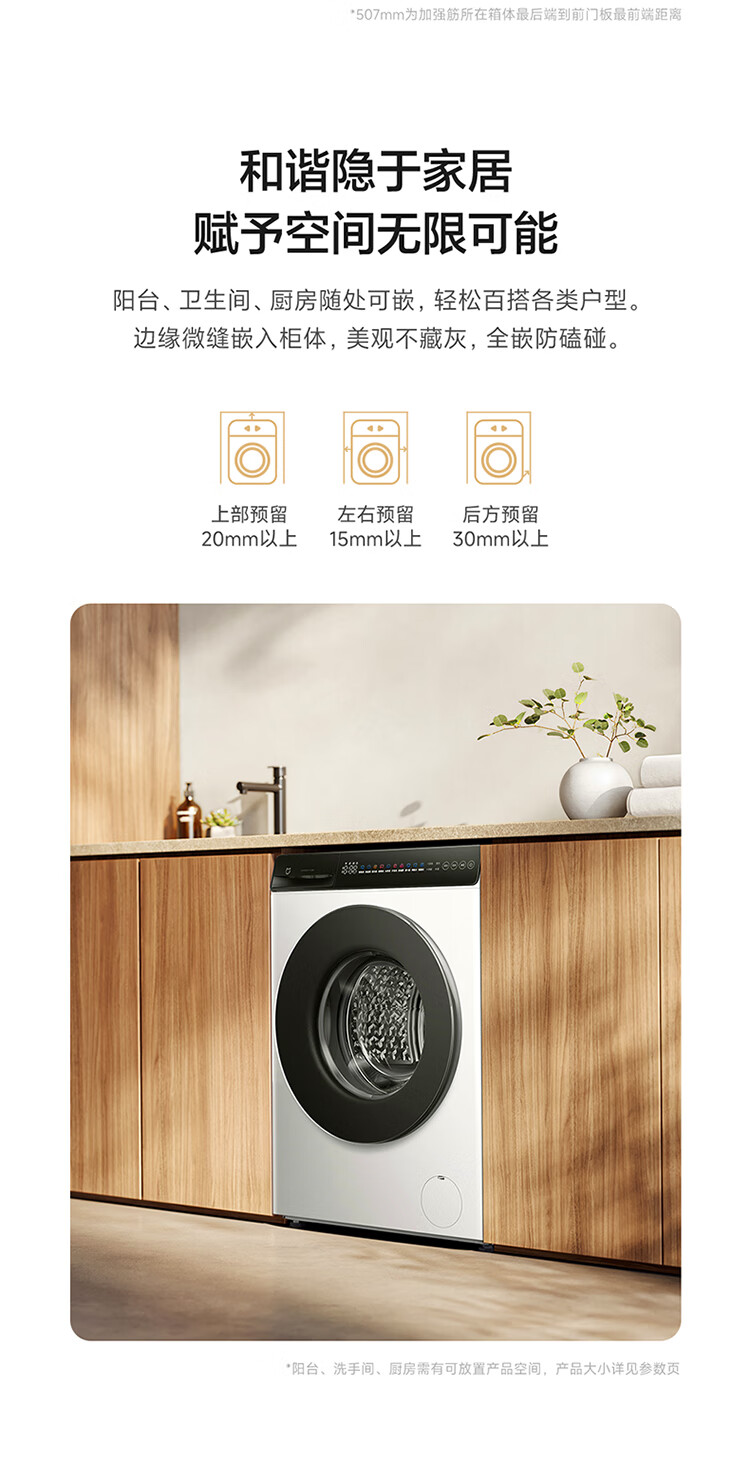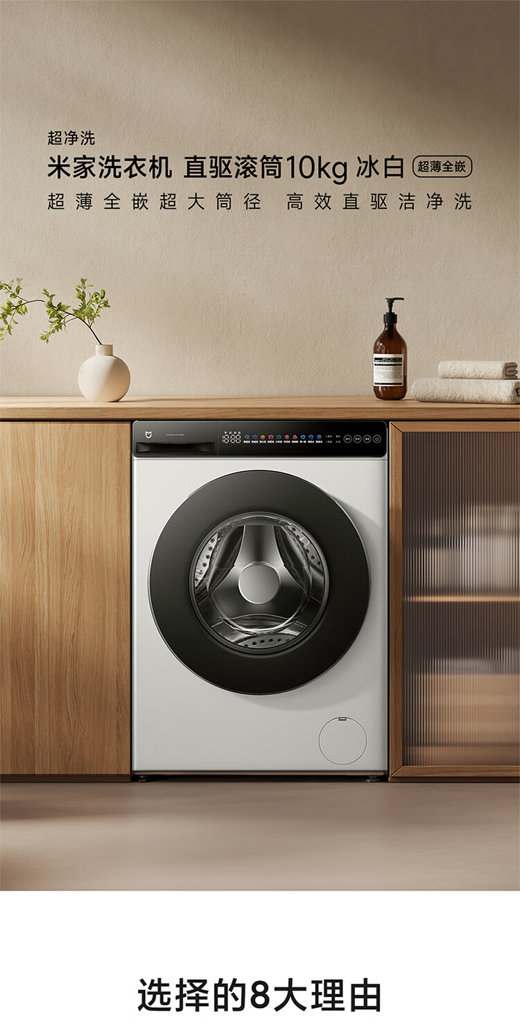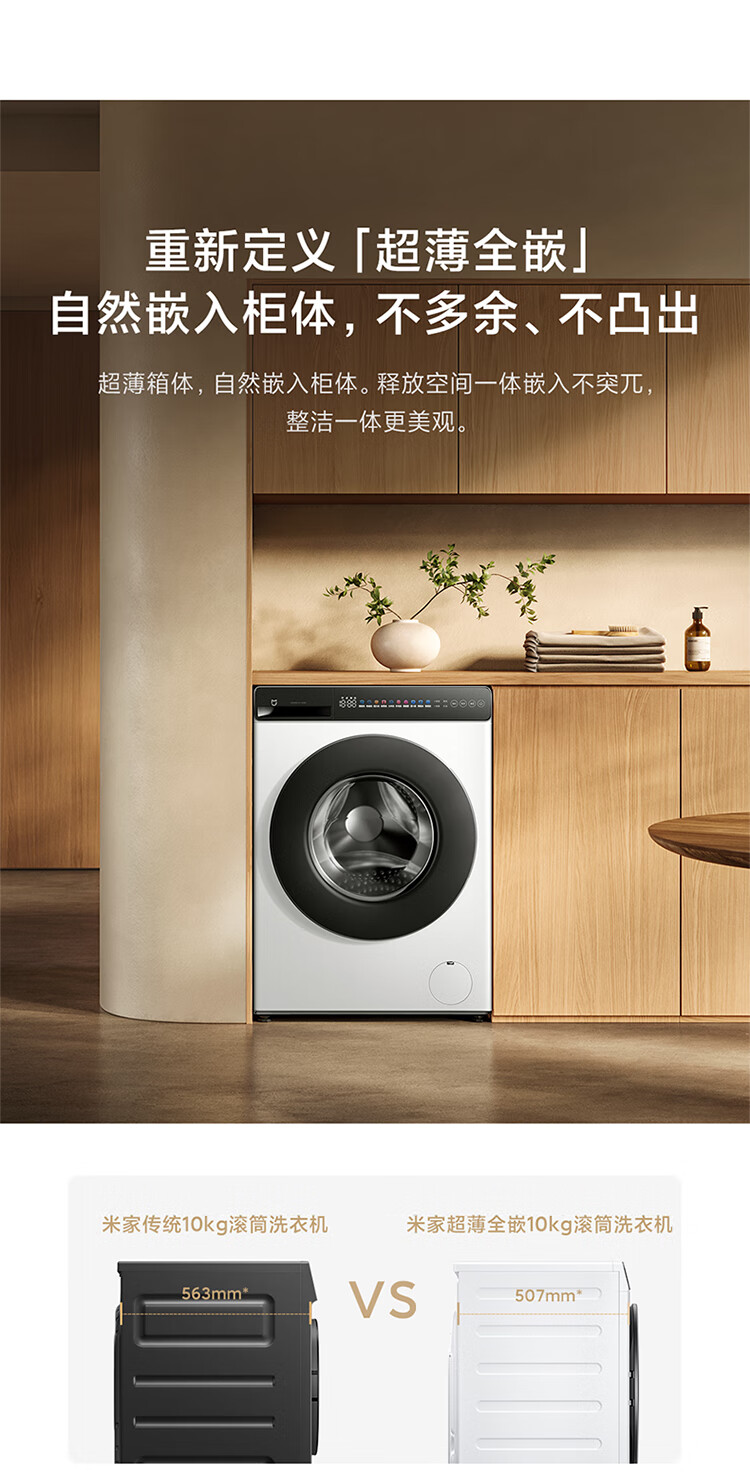 Mijia Xiaomi 10kg drum washing machine fully embedded body 525mm large drum diameter 1.1 high cleaning ratio direct drive motor to remove mites XQG100MJ106 507mm thin fully embedded cleaning 10kg drum