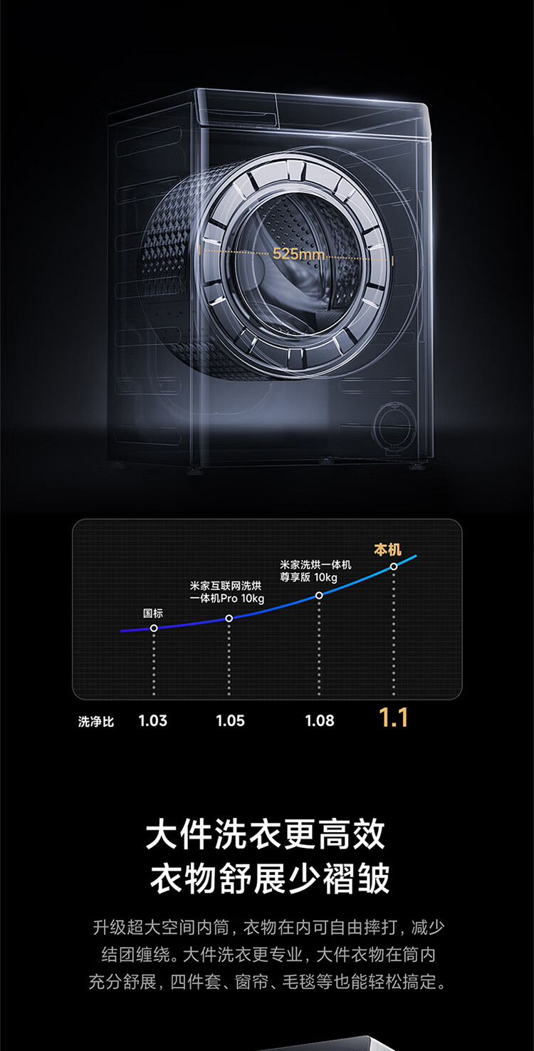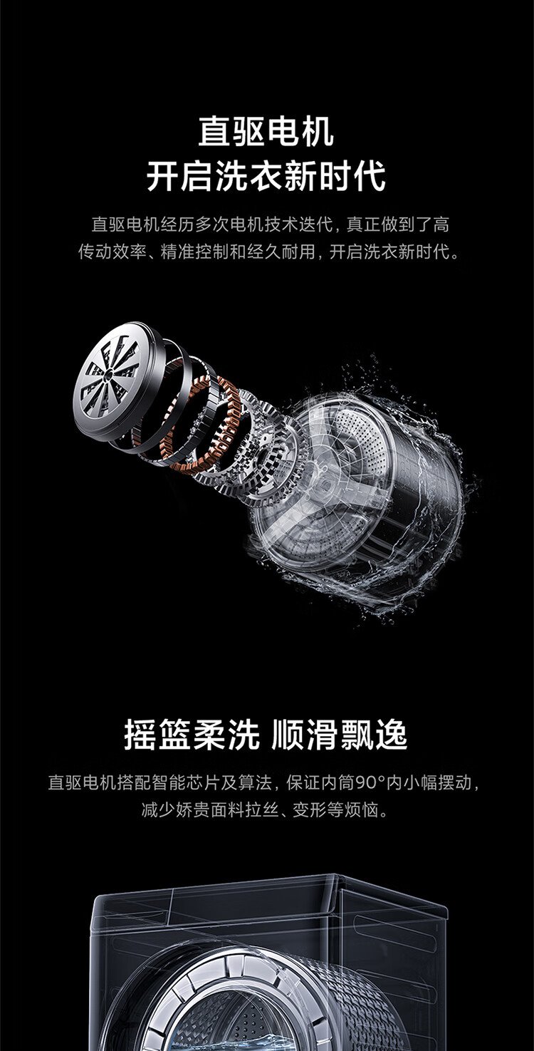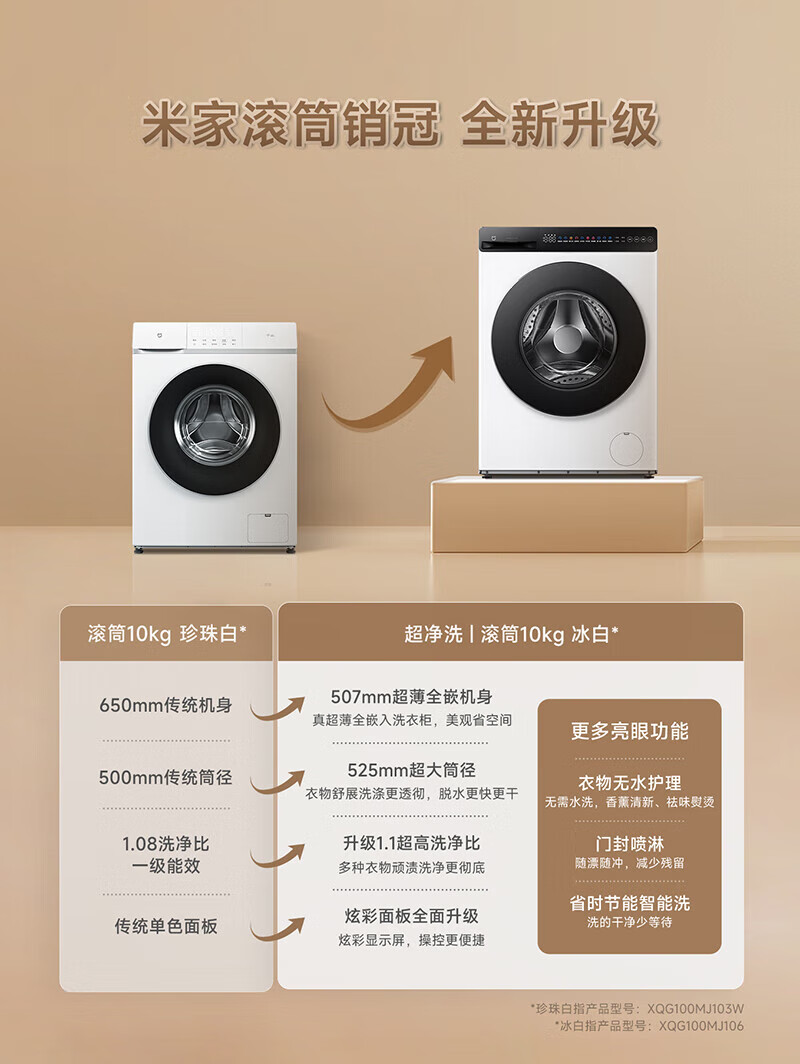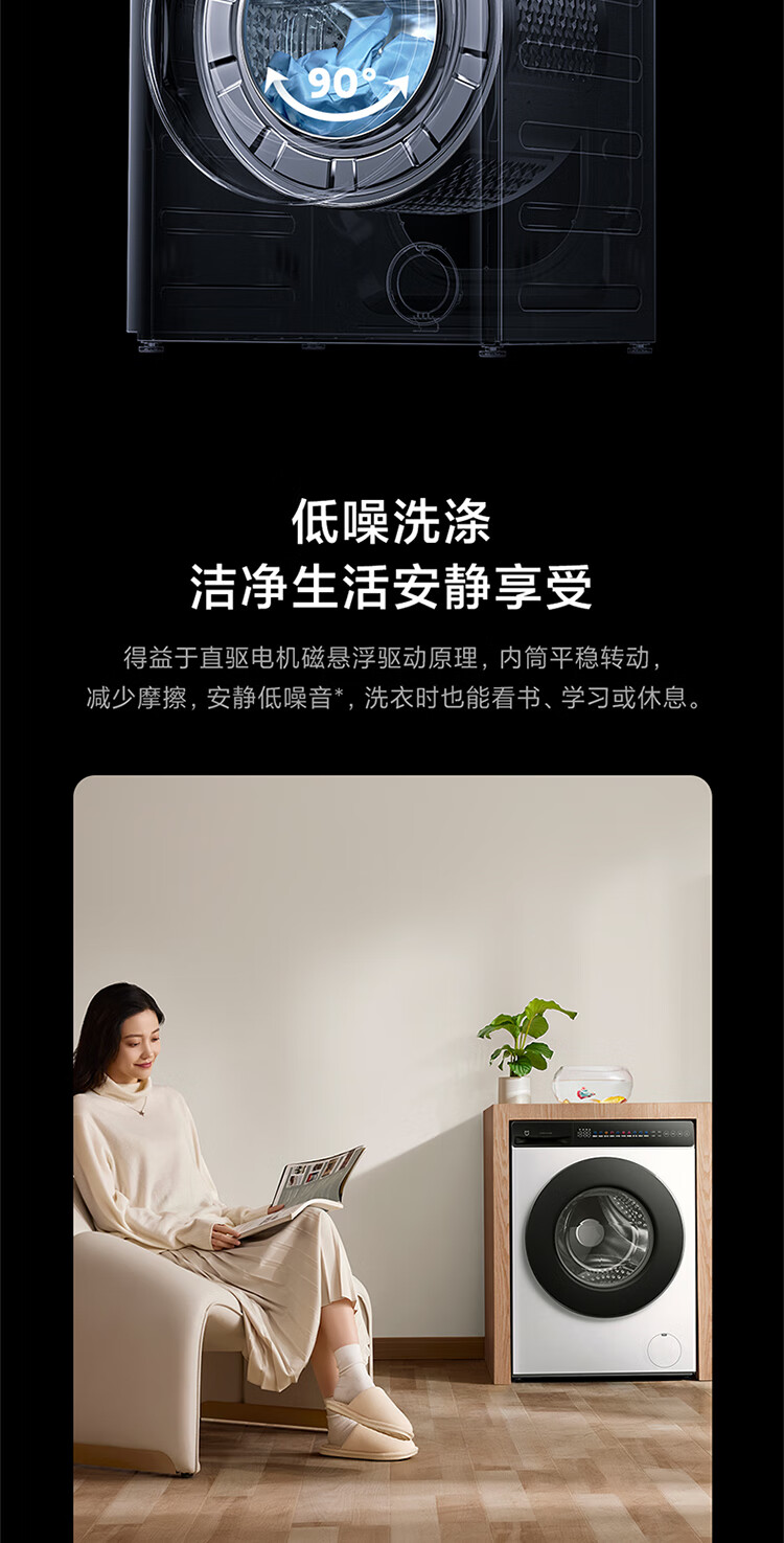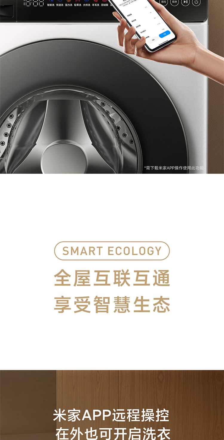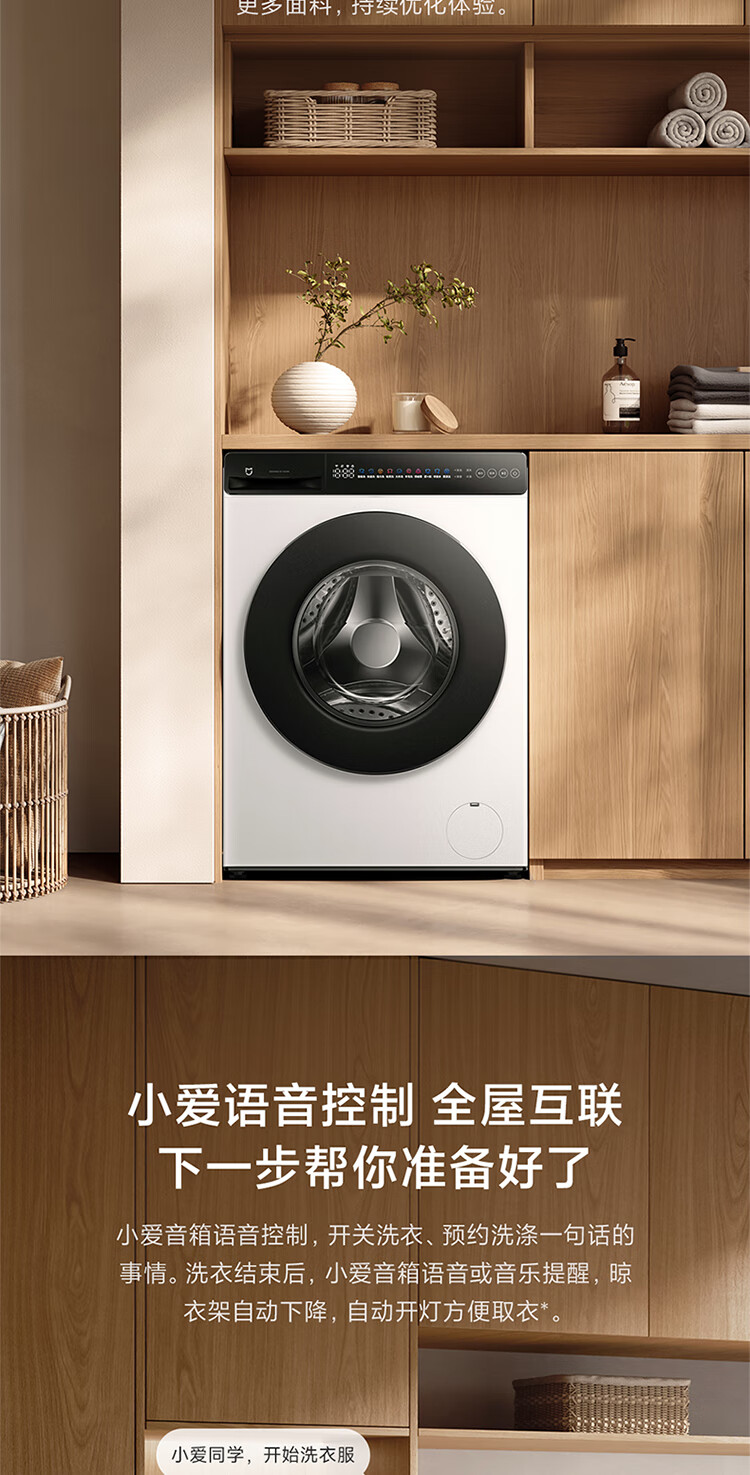 Mijia Xiaomi 10kg drum washing machine fully embedded body 525mm large drum diameter 1.1 high cleaning ratio direct drive motor to remove mites XQG100MJ106 507mm thin fully embedded cleaning 10kg drum