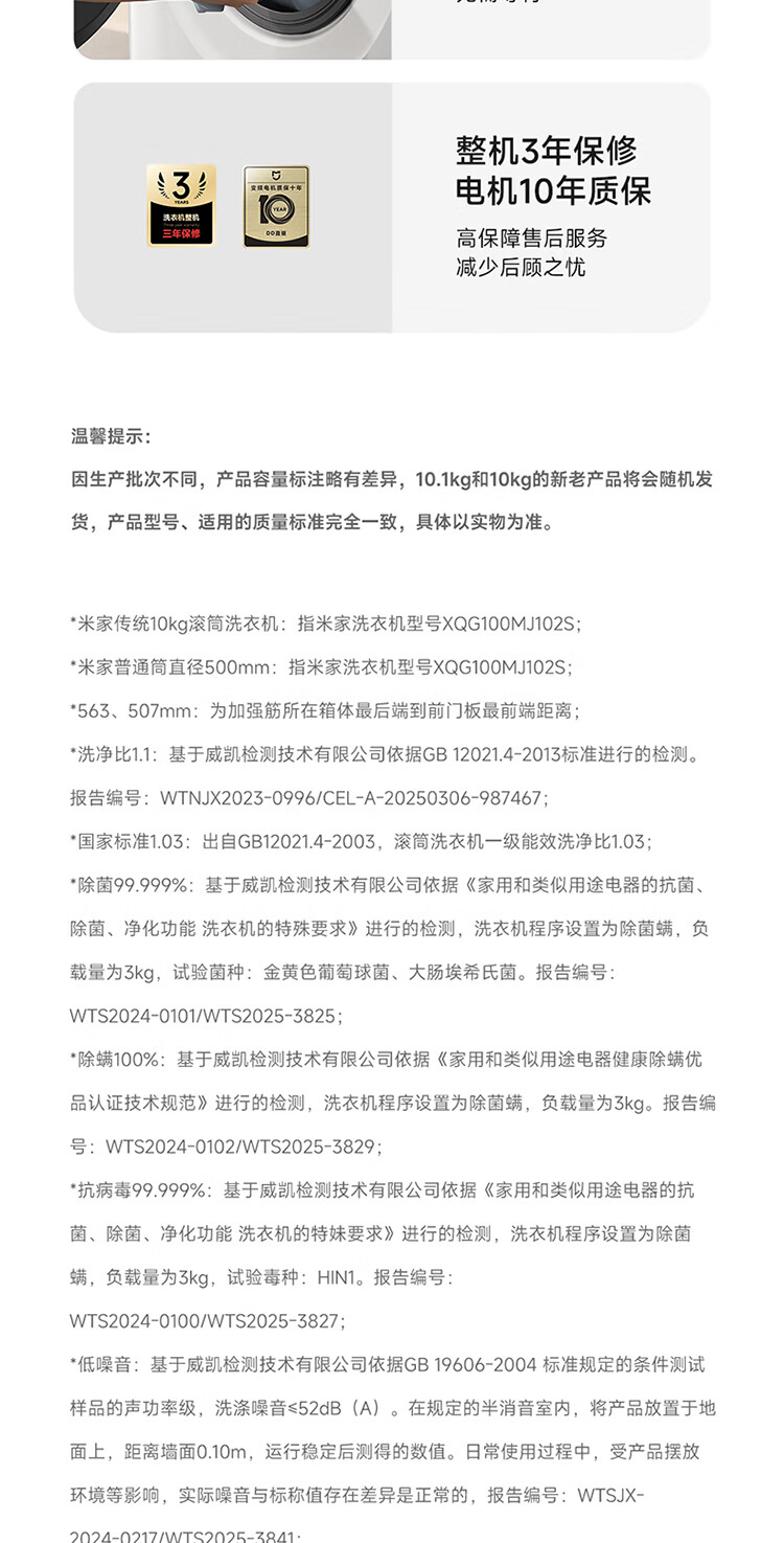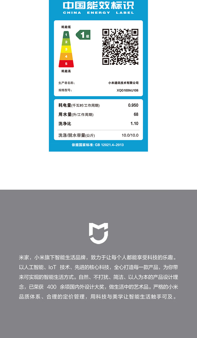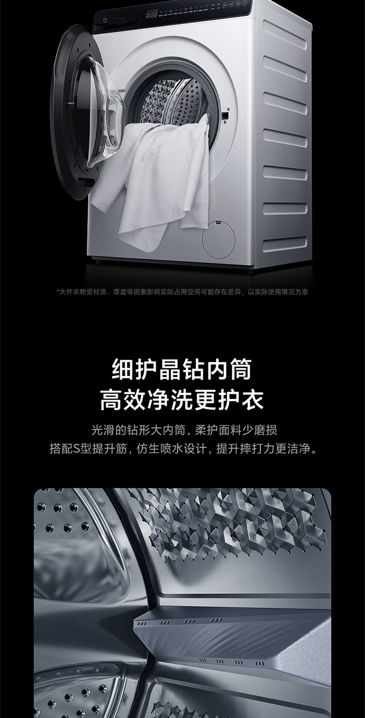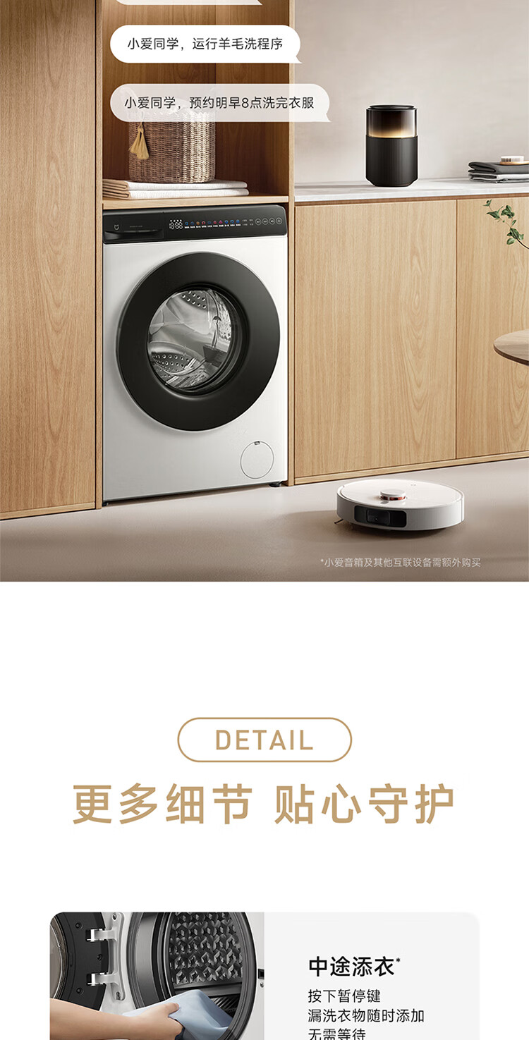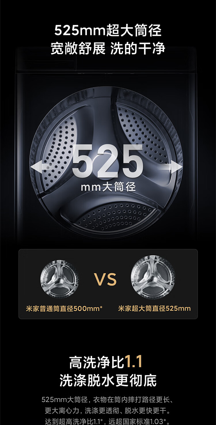 Mijia Xiaomi 10kg drum washing machine fully embedded body 525mm large drum diameter 1.1 high cleaning ratio direct drive motor to remove mites XQG100MJ106 507mm thin fully embedded cleaning 10kg drum